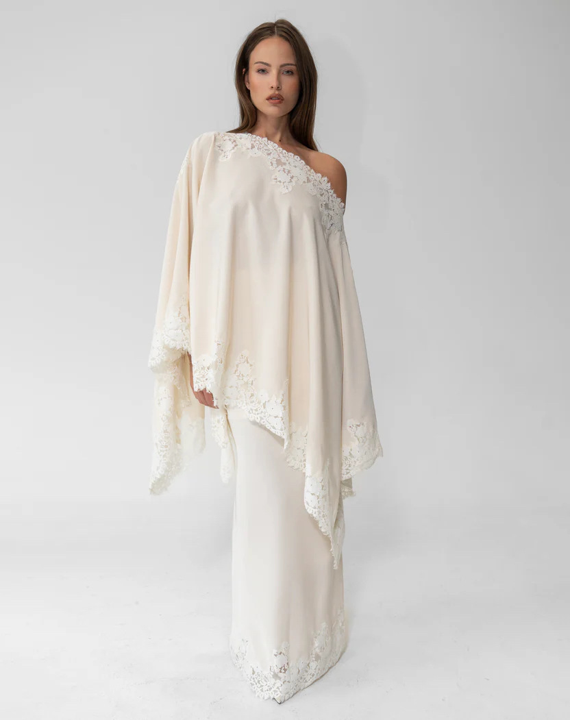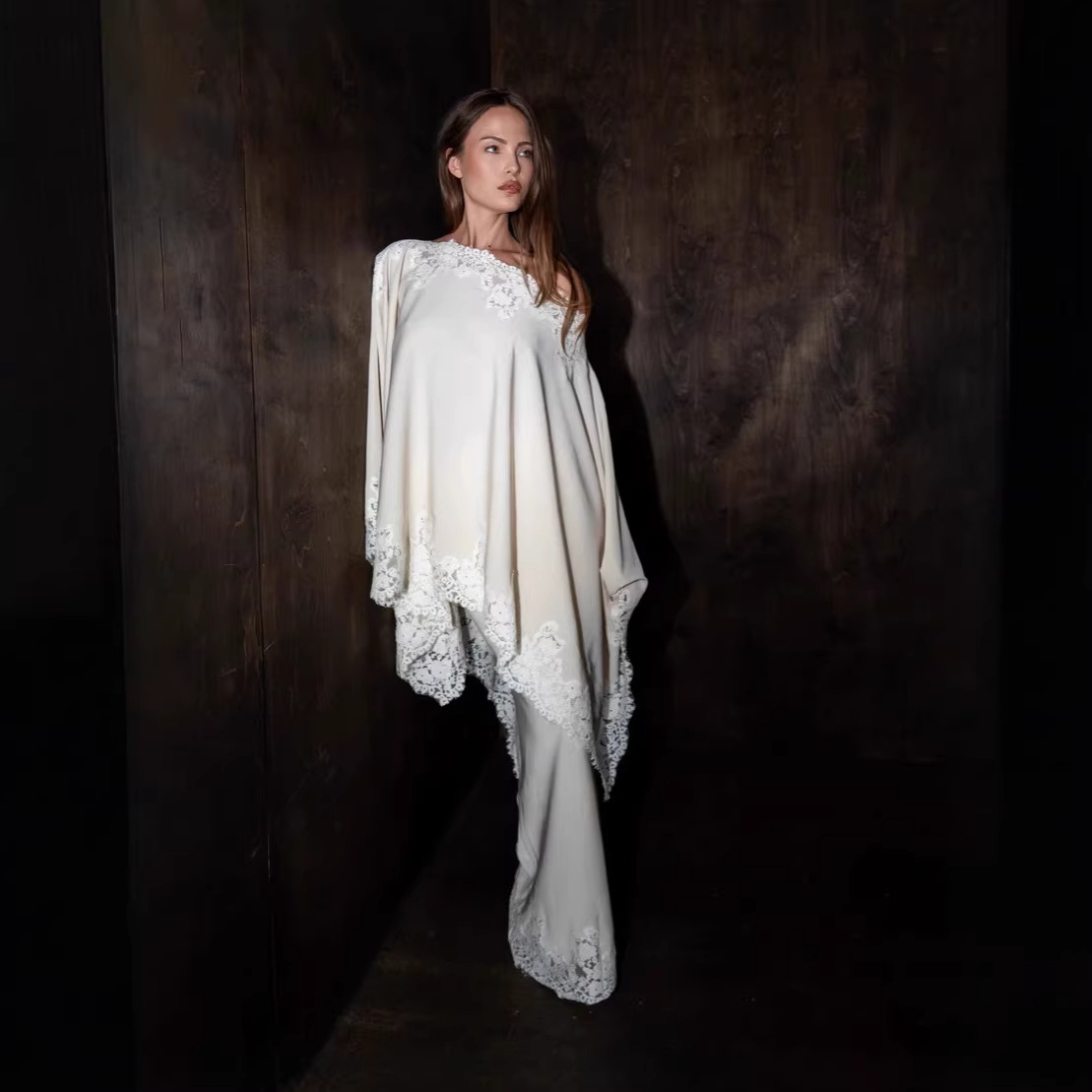 Satín & Poliéster Juego de vestidos de dos piezas, Cordón, blanco, Conjunto