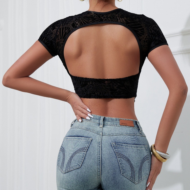 Spandex & Poliéster Mujeres Camisetas de manga corta, labor de retazos, Sólido, negro, trozo