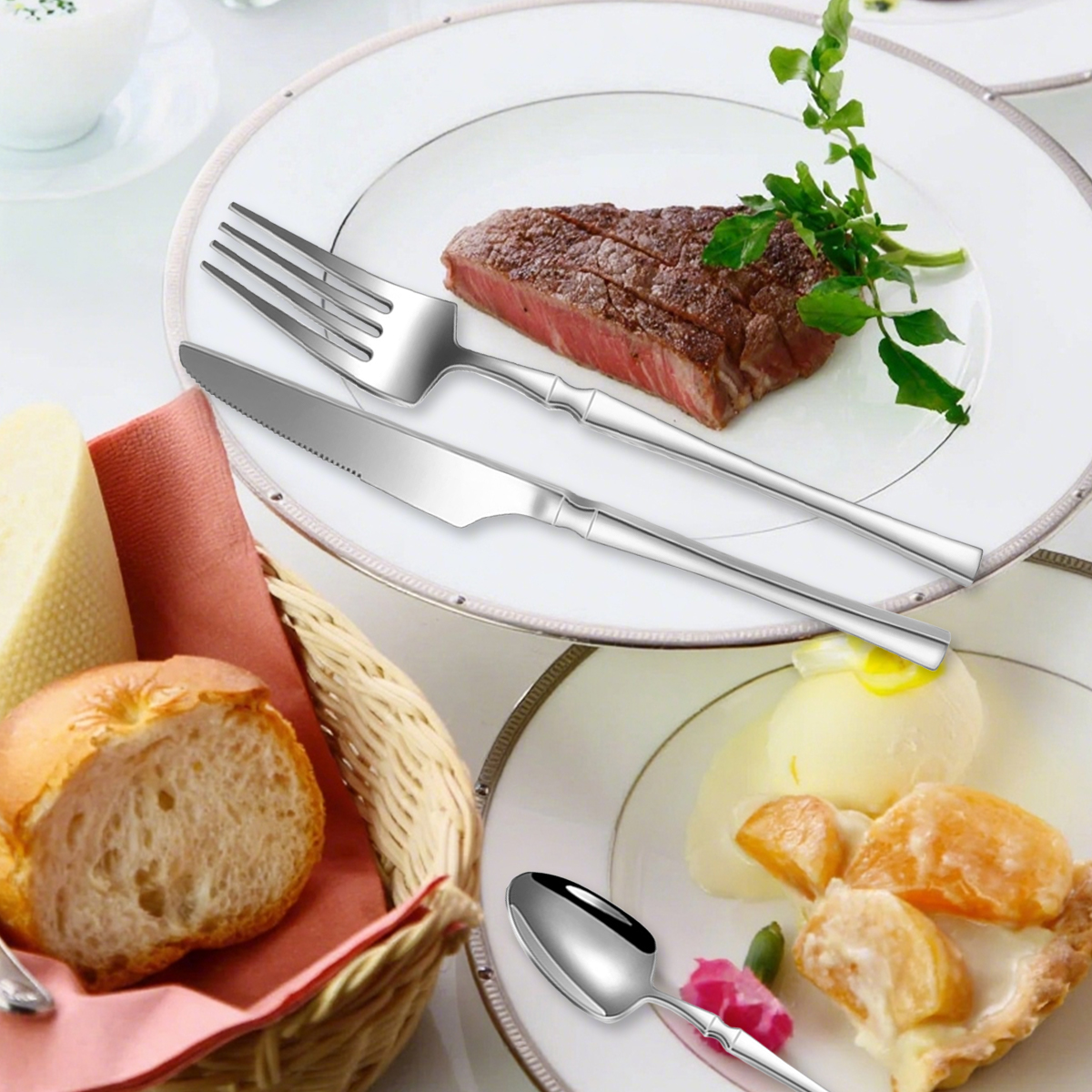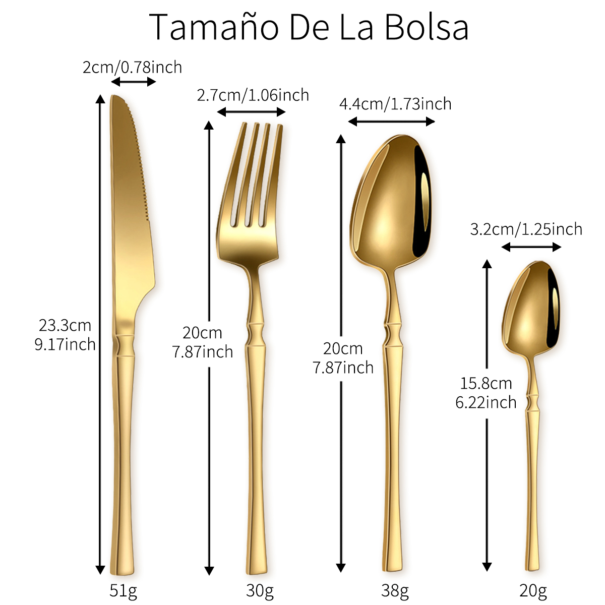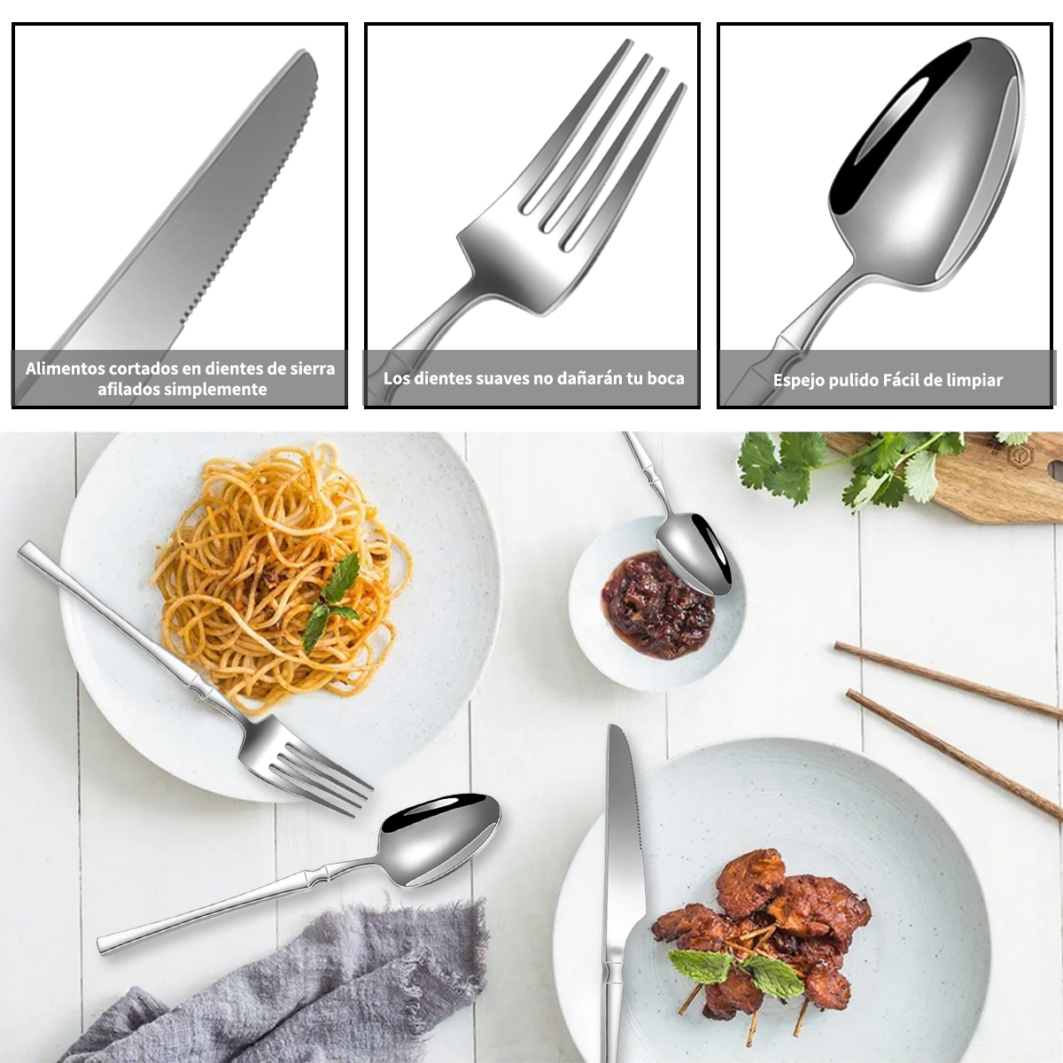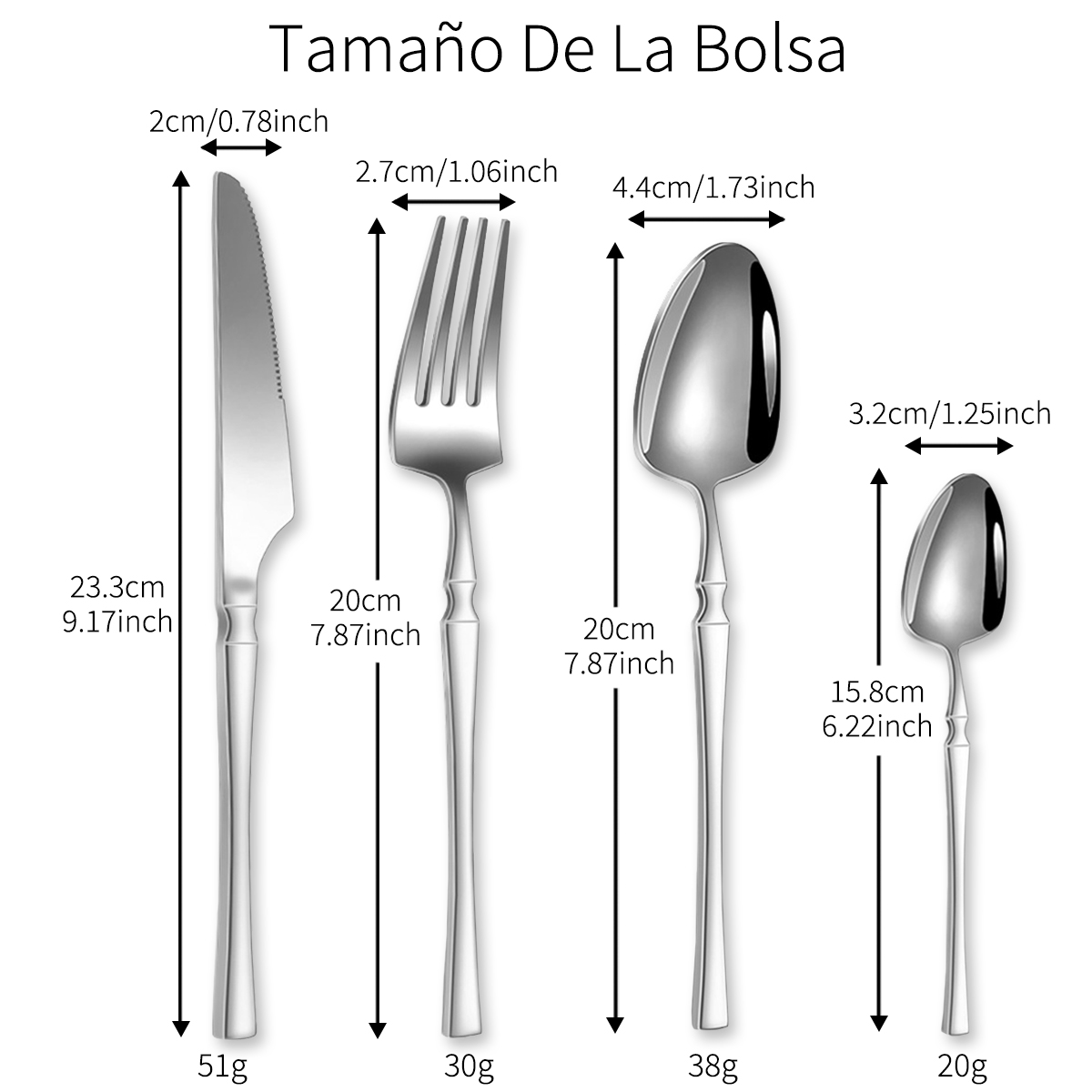 Vajilla de acero inoxidable de cintura pequeña, juego de 24 piezas, cuchillo para carne, tenedor y cuchara.