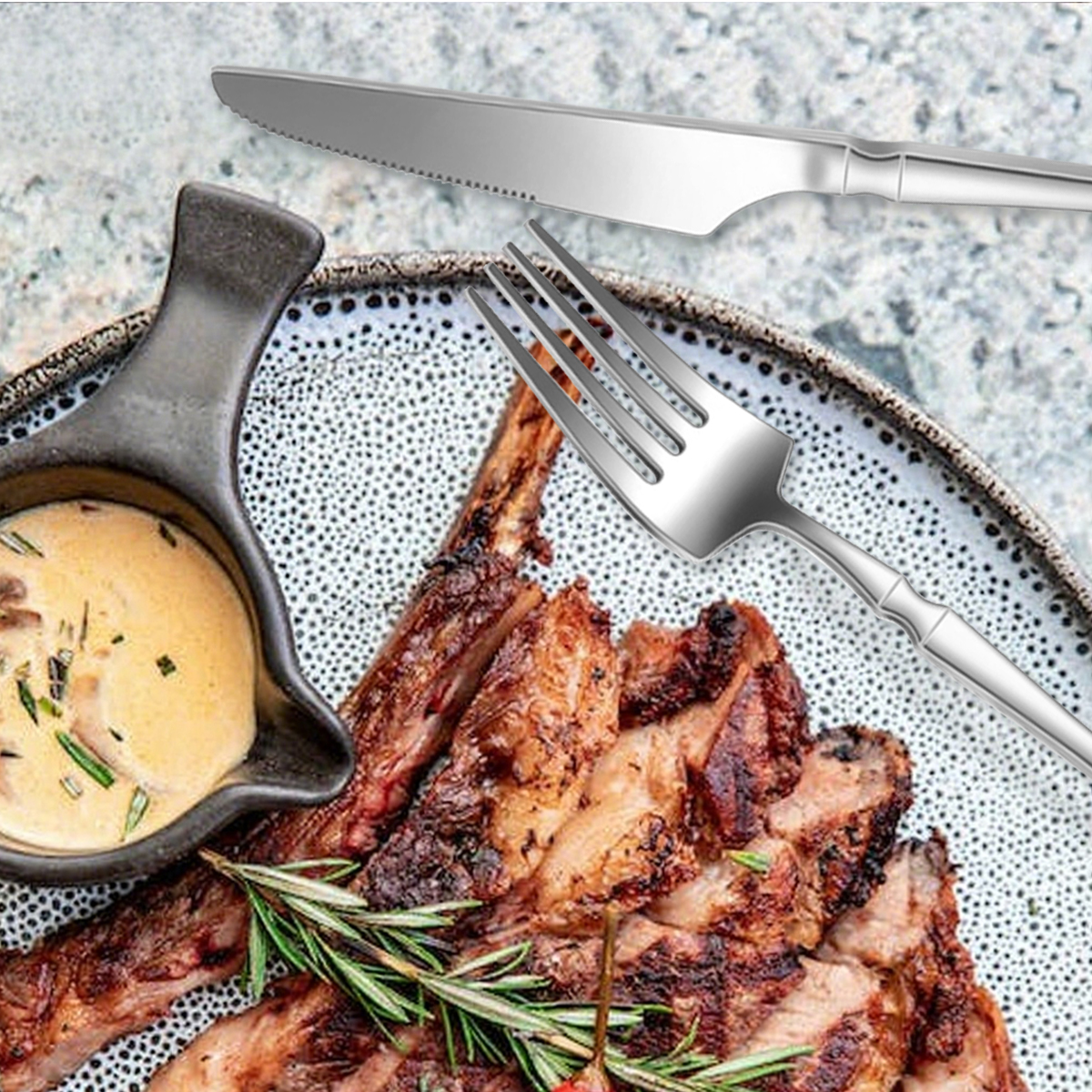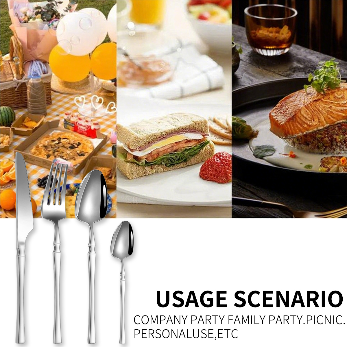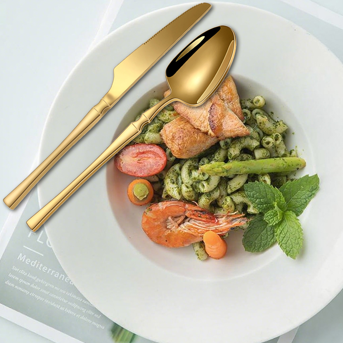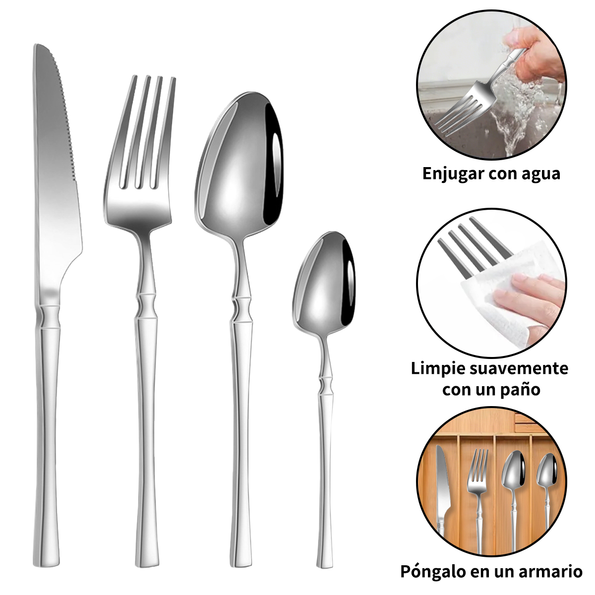 Vajilla de acero inoxidable de cintura pequeña, juego de 24 piezas, cuchillo para carne, tenedor y cuchara.
