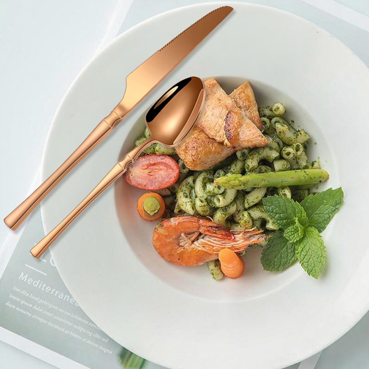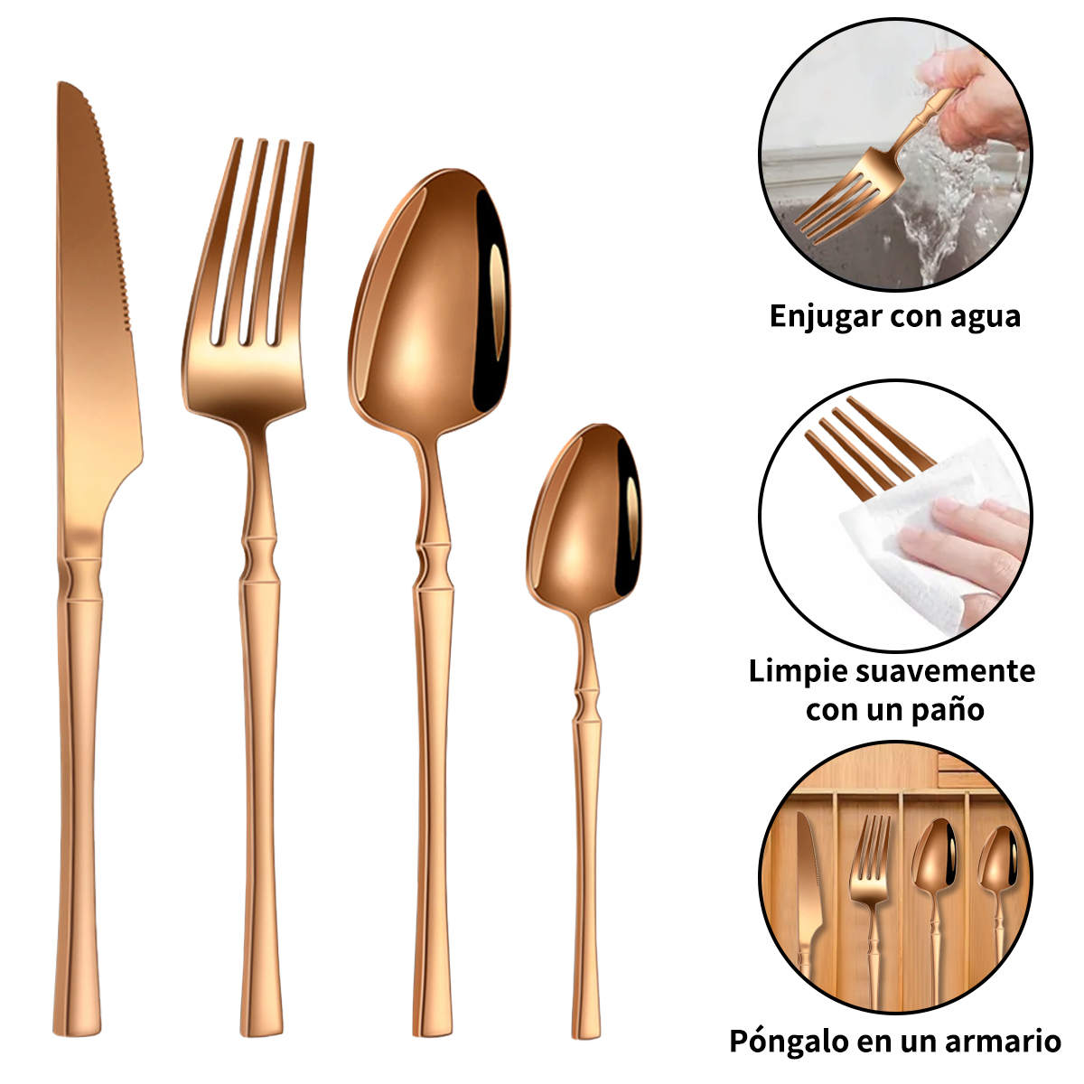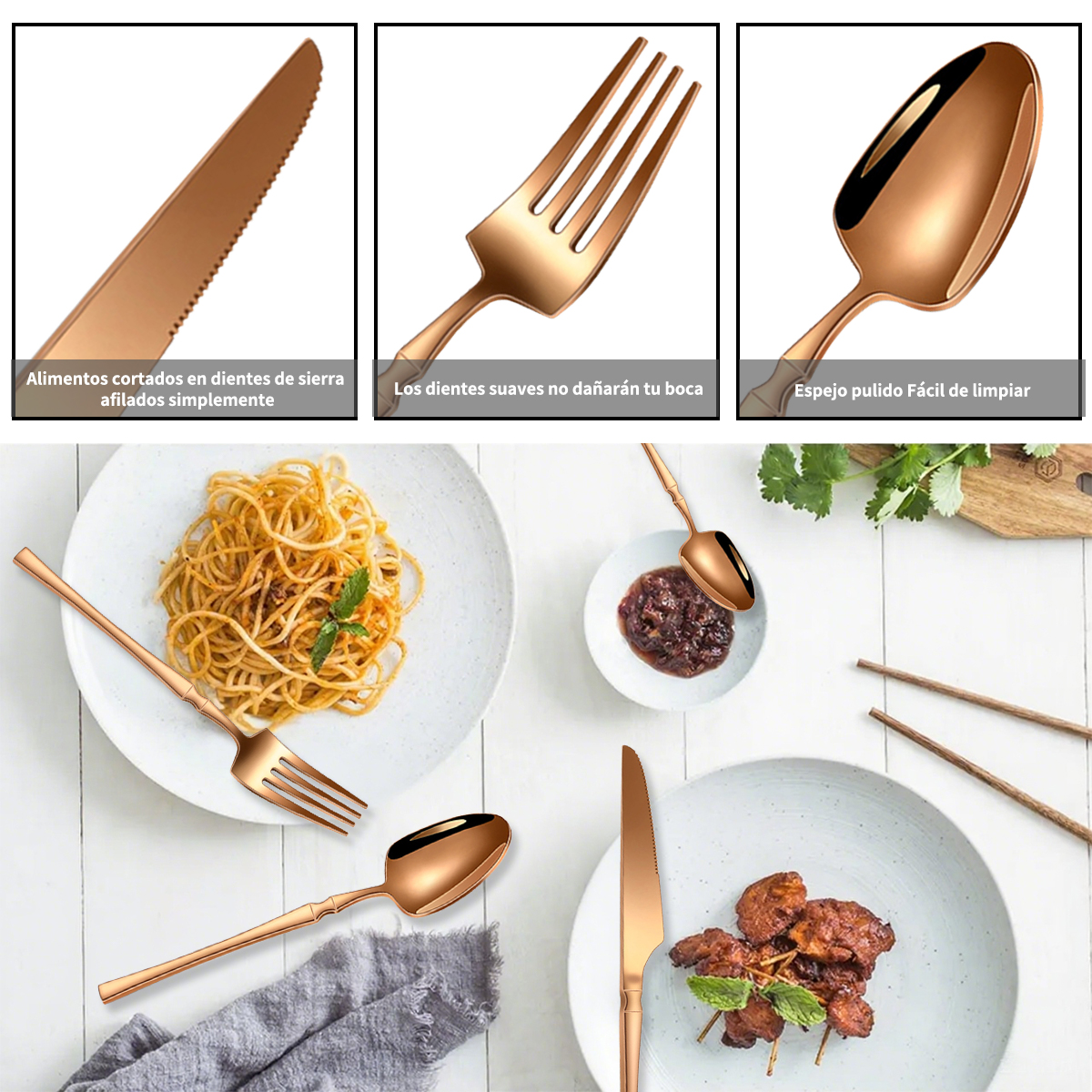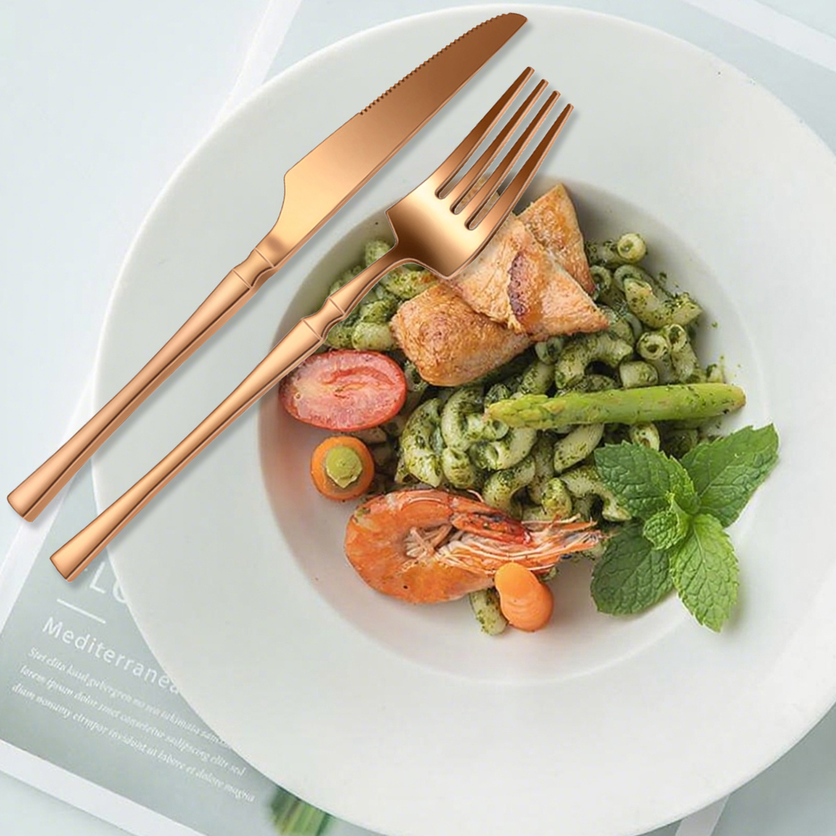 Vajilla de acero inoxidable de cintura pequeña, juego de 24 piezas, cuchillo para carne, tenedor y cuchara.