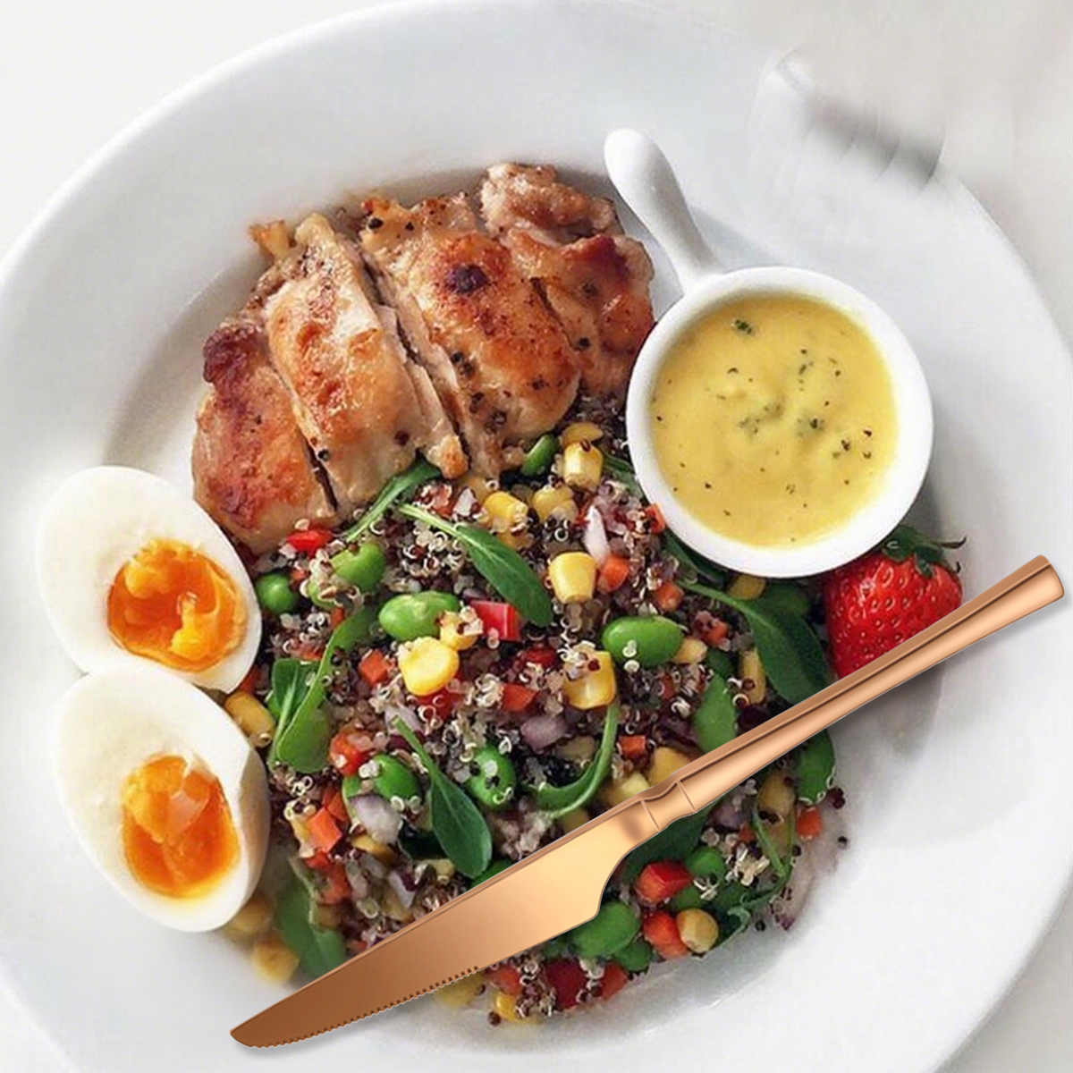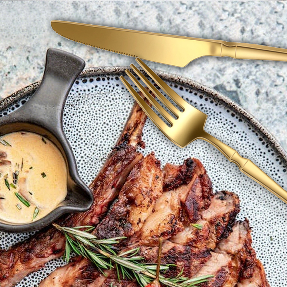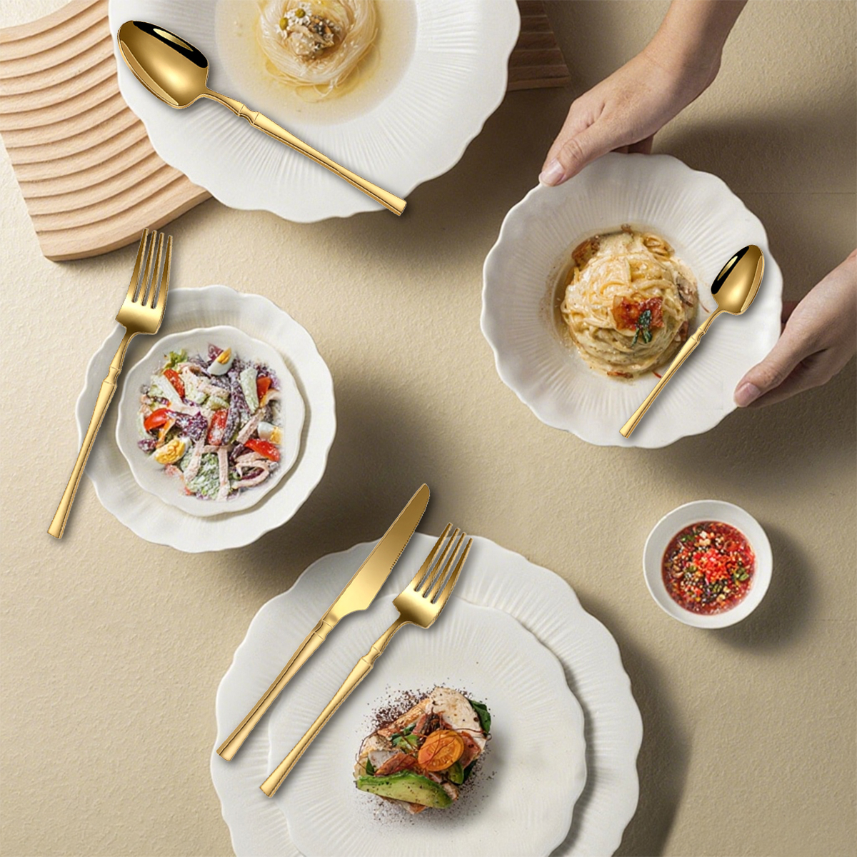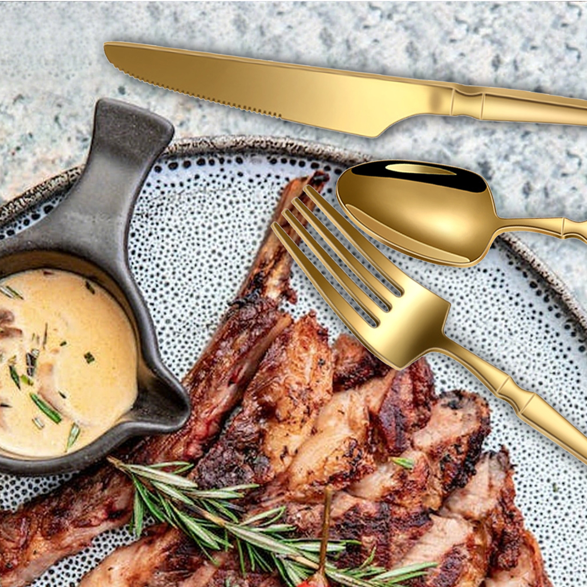 Vajilla de acero inoxidable de cintura pequeña, juego de 24 piezas, cuchillo para carne, tenedor y cuchara.
