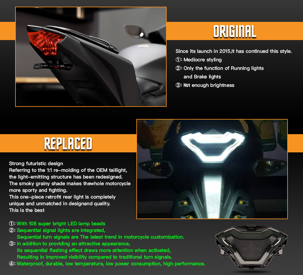 Suitable for YAMAHA R3R25MT03MT07Y15ZR SNIPER150 LED tail light with turn signal