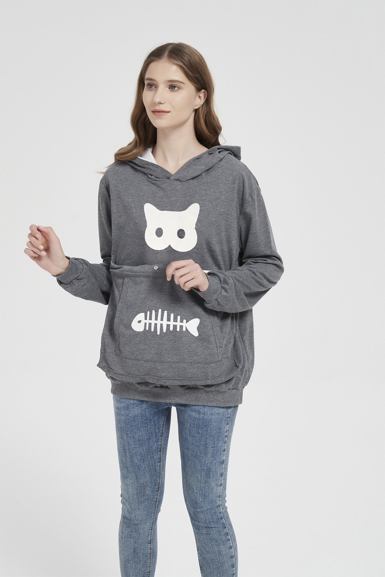 Tela mezclada & Algodón Mujeres Sudaderas, impreso, Gatos, más colores para elegir, trozo