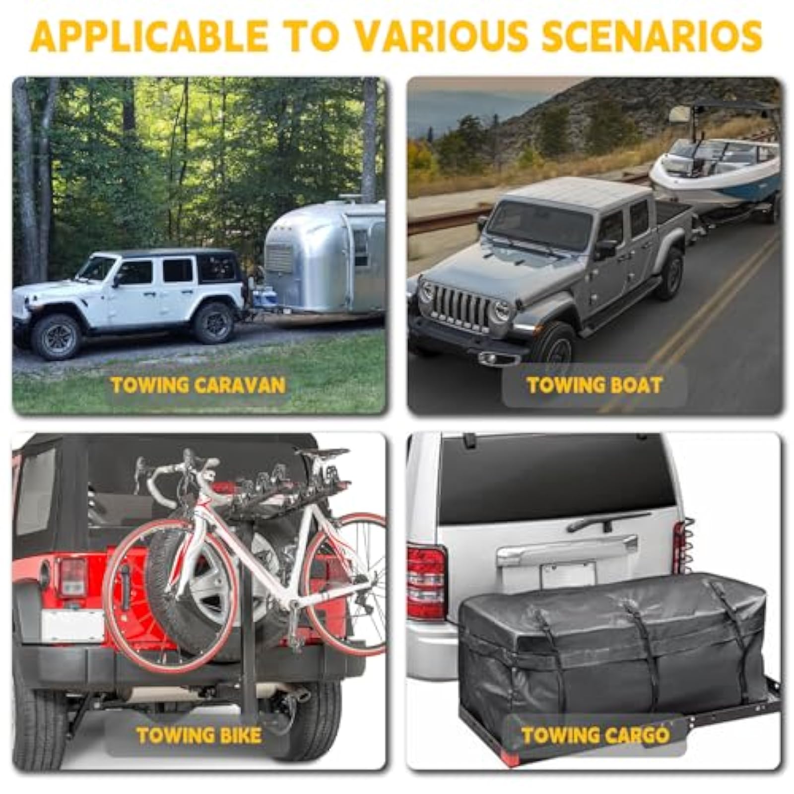 ROBUST AND DURABLE : The trailer hitch receiver is made of high quality carbon steel, which is not easy to break and stronger; Protected by a unique double coating, it has excellent rust, not afraid of the harsh outdoor effects