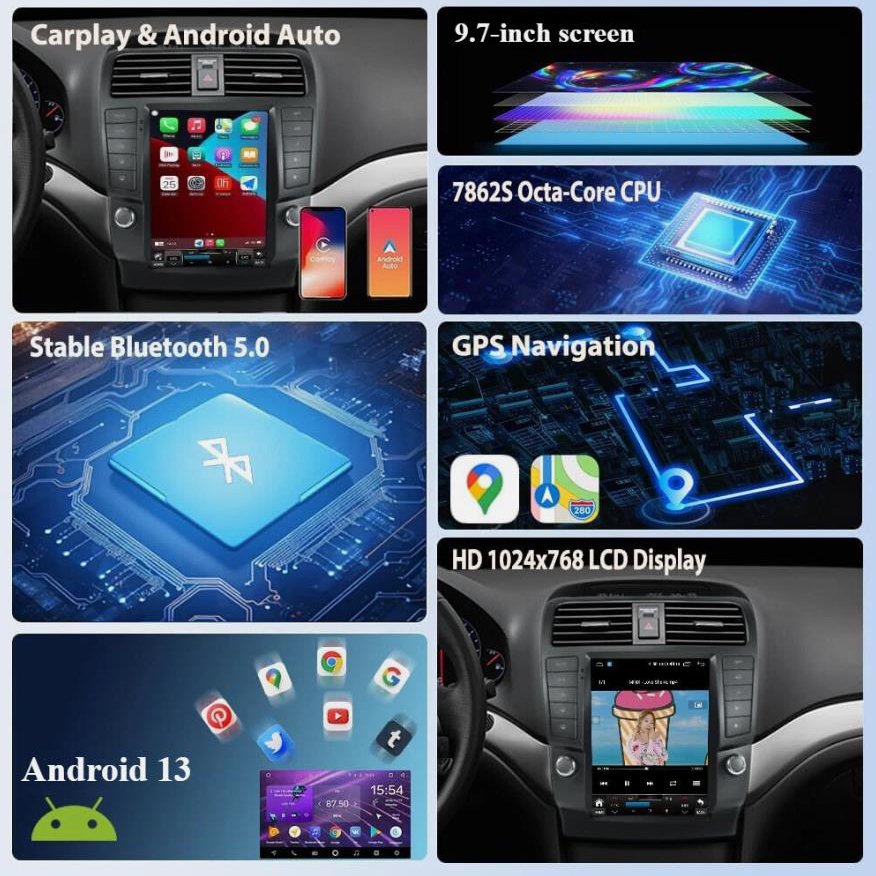 9.7 inch Android Carplay Car Stereo Radio GPS Navi 4+64GB For Acura TSX 2004-2008