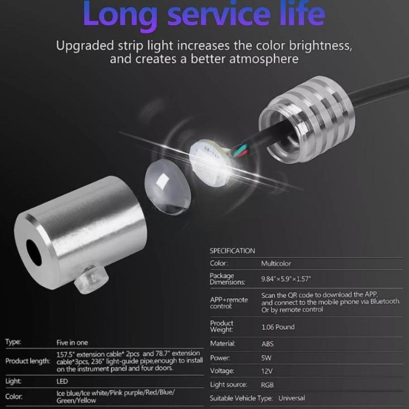 APP Control -1 RGB LED Interior Strip Light Car Ambient Atmosphere Lighting