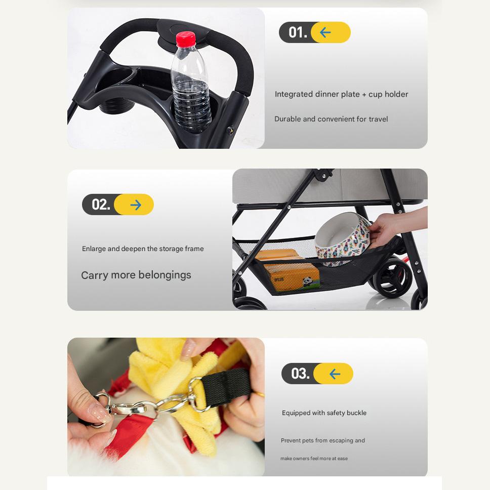 Acier au carbone & Oxford & Gaze Poussette pour animaux de compagnie Solide plus de couleurs pour le choix pièce