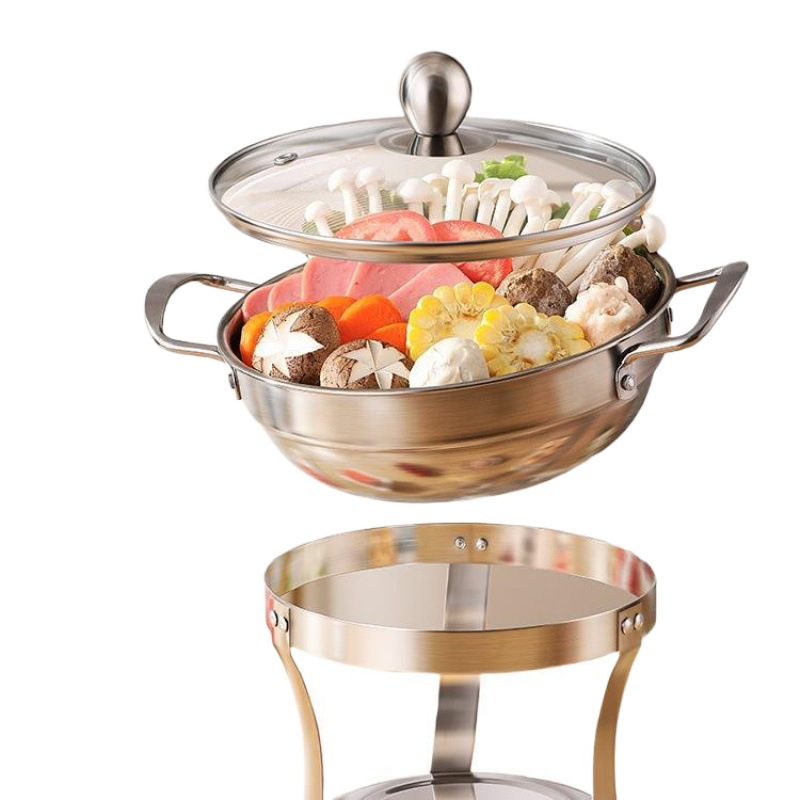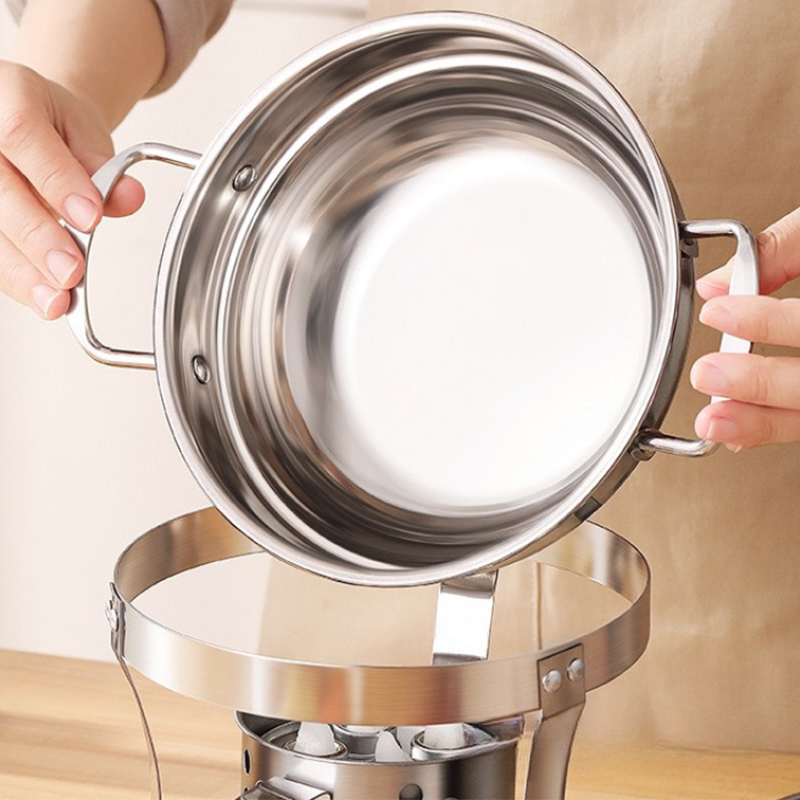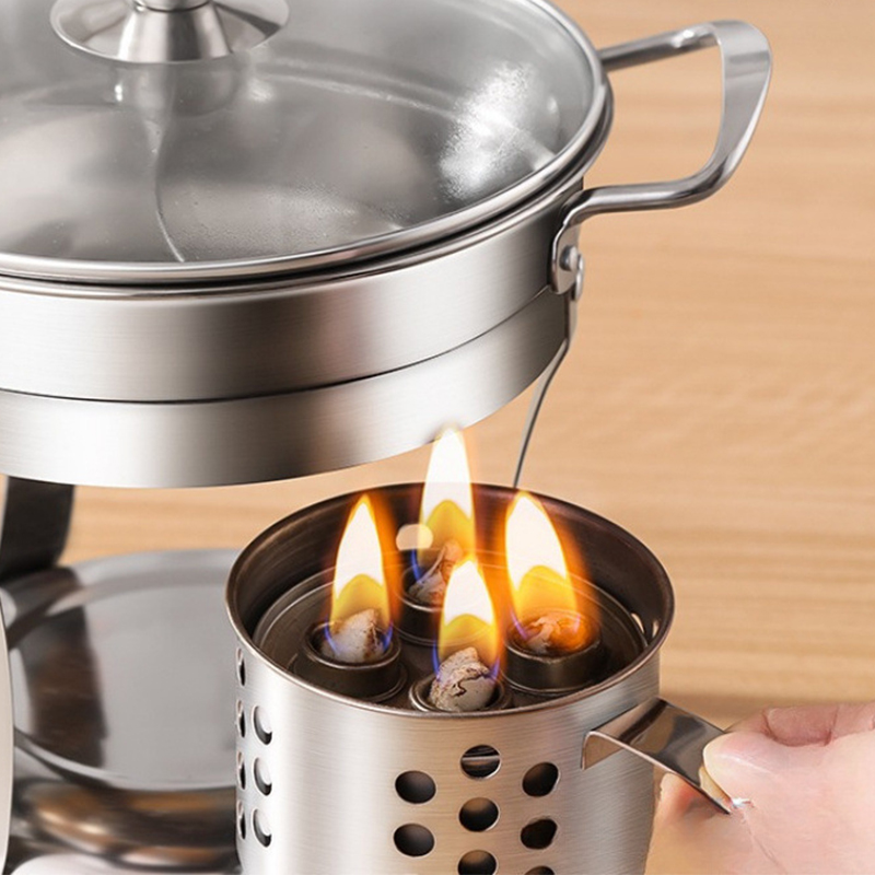 Medium 17cm single-flavor pot   stainless steel stove (no fuel) comes with a spoon and a colanderLarge 19cm single-flavor pot   stainless steel  stove (no fuel) comes with a spoon and a colanderLarge 19cm pot   stainless steel stove (no fuel) comes with spoon and colander