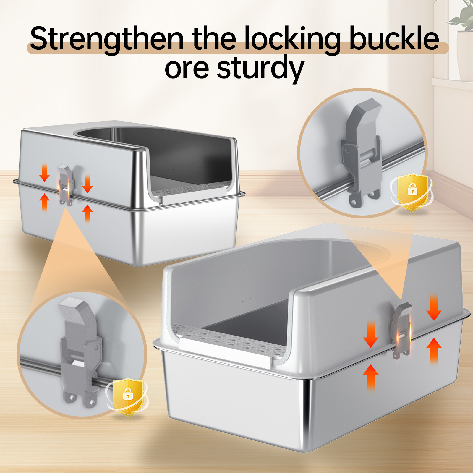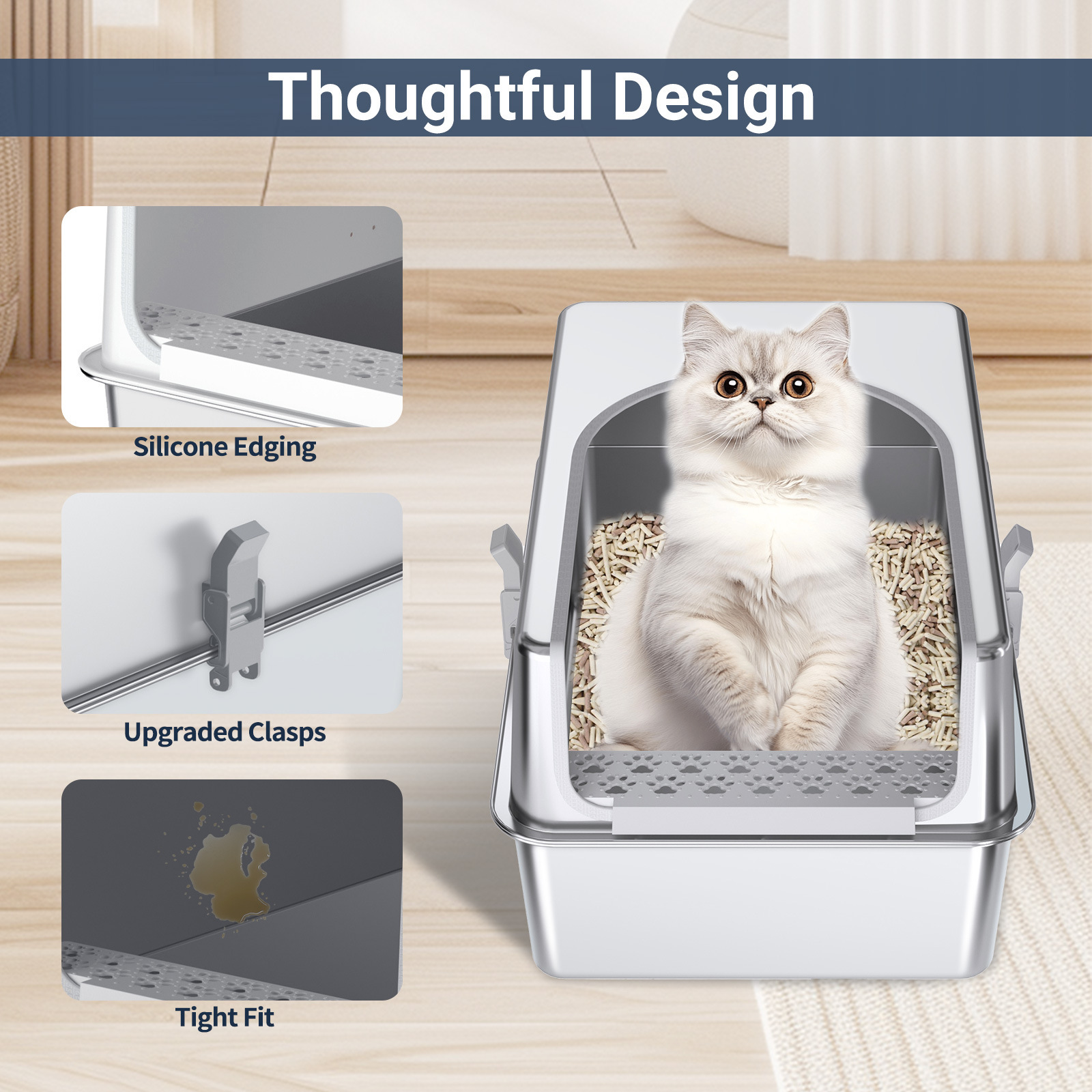Acier inoxydable & Plastique Bassin de litière de chat Argent pièce