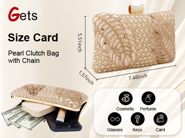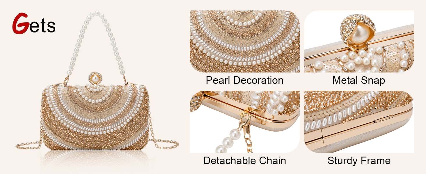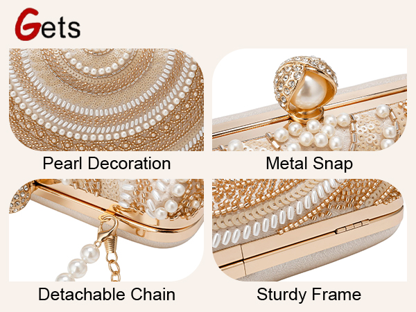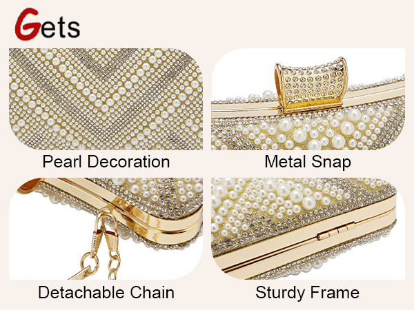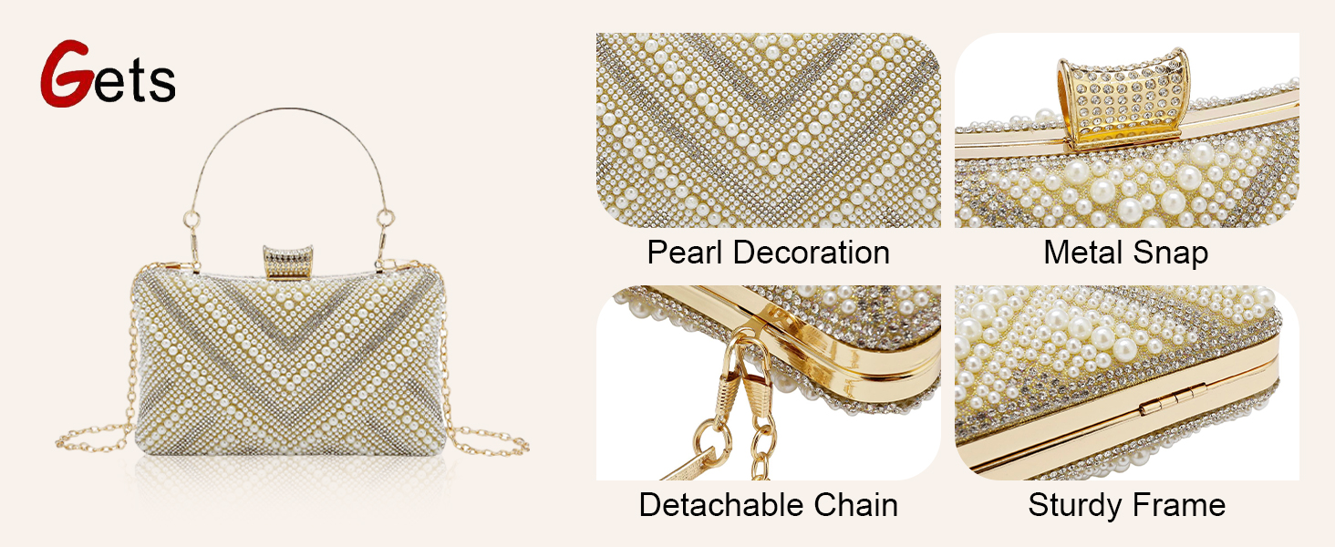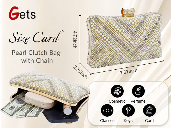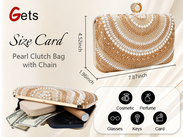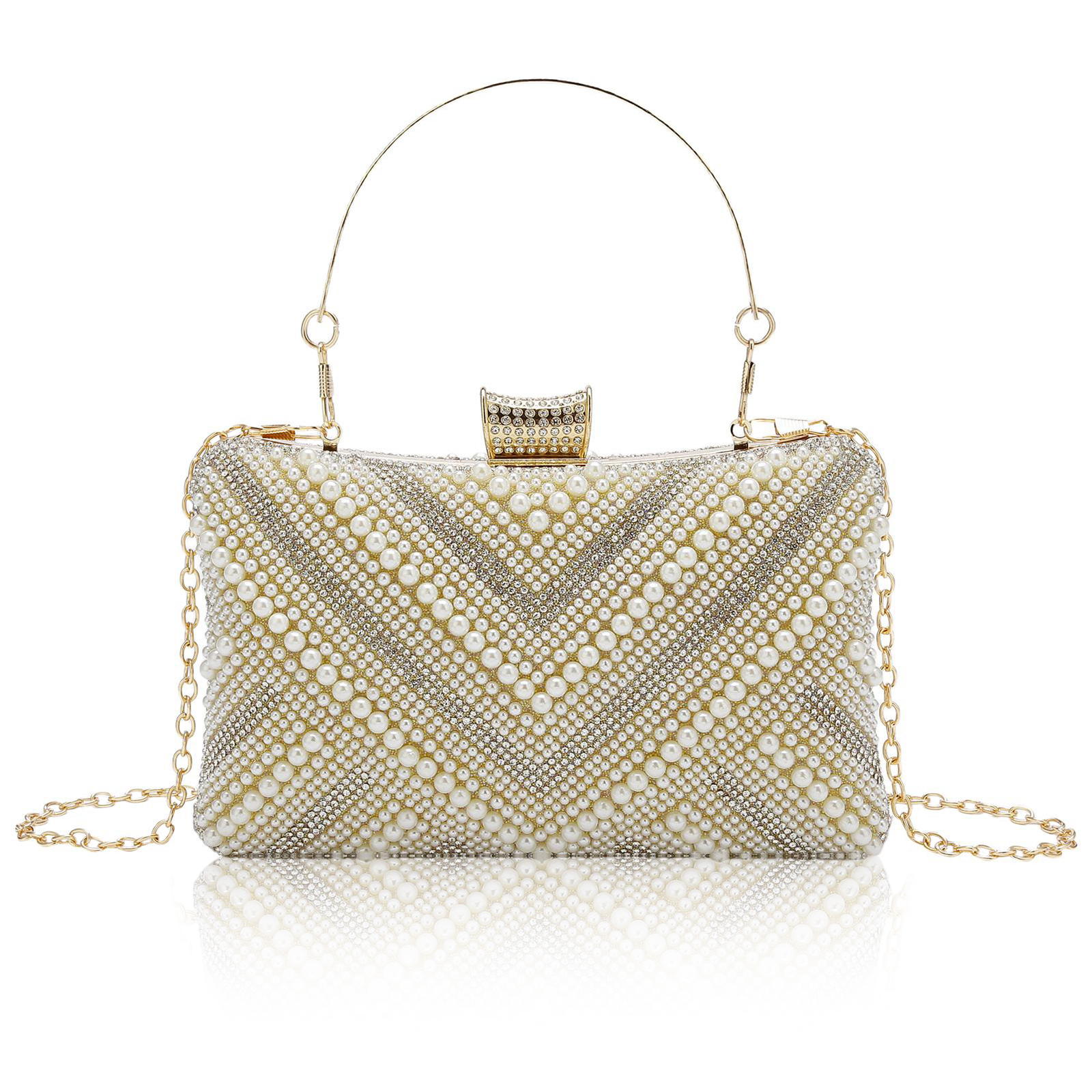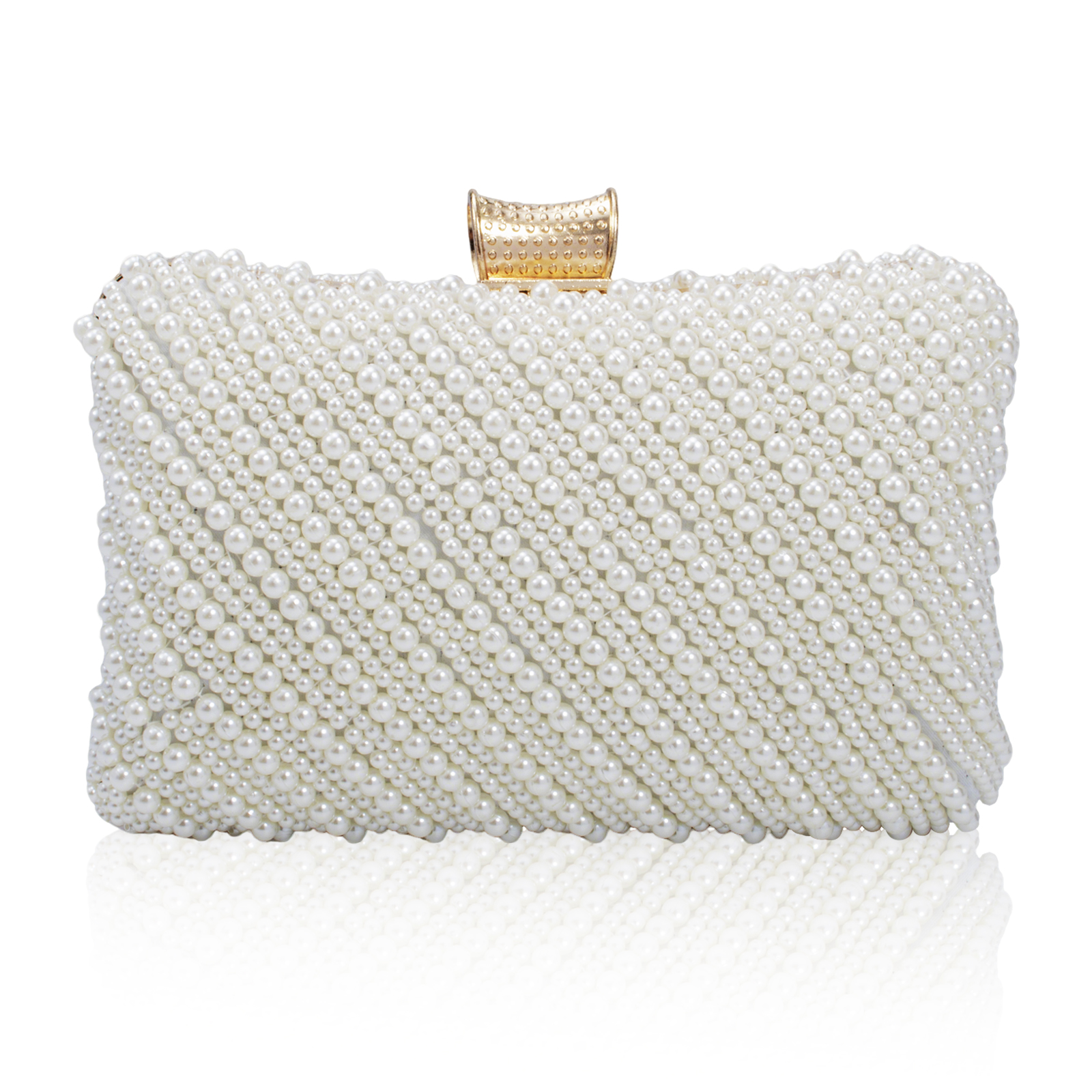 Acrylique & Perle en plastique Sac d’embrayage Solide Beige pièce