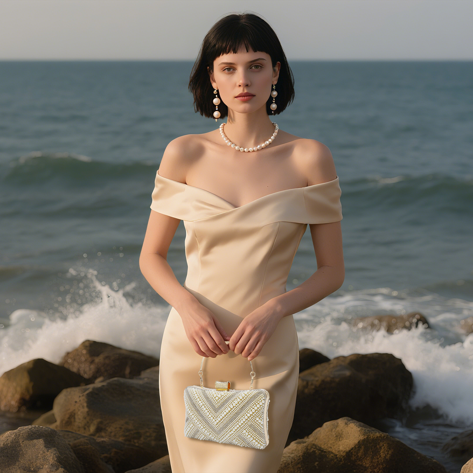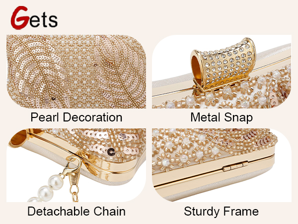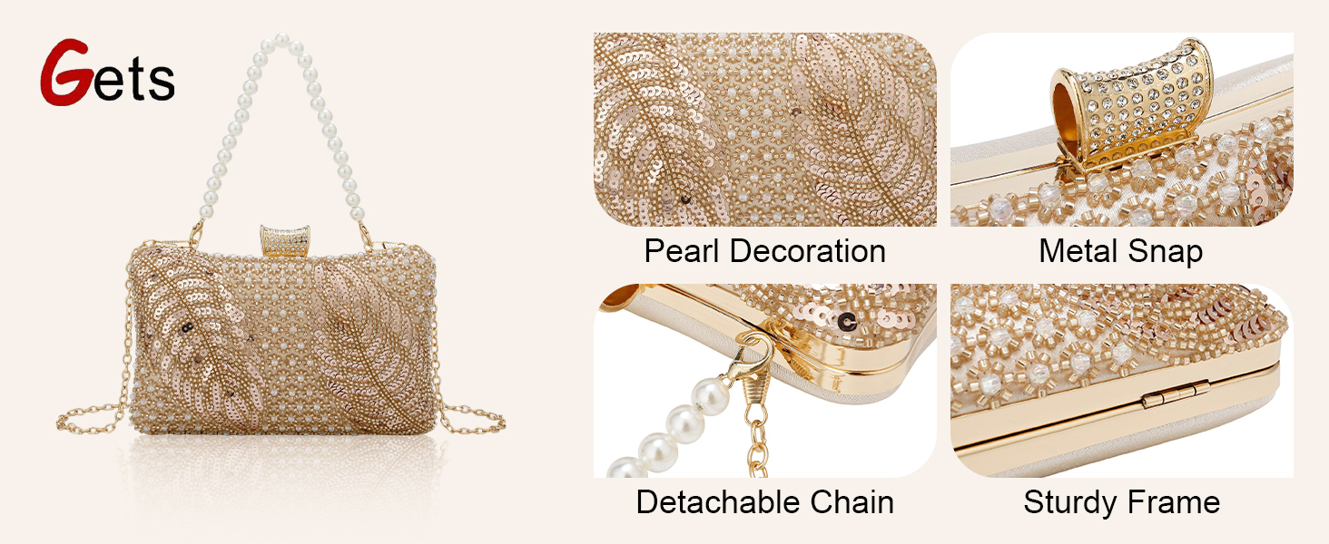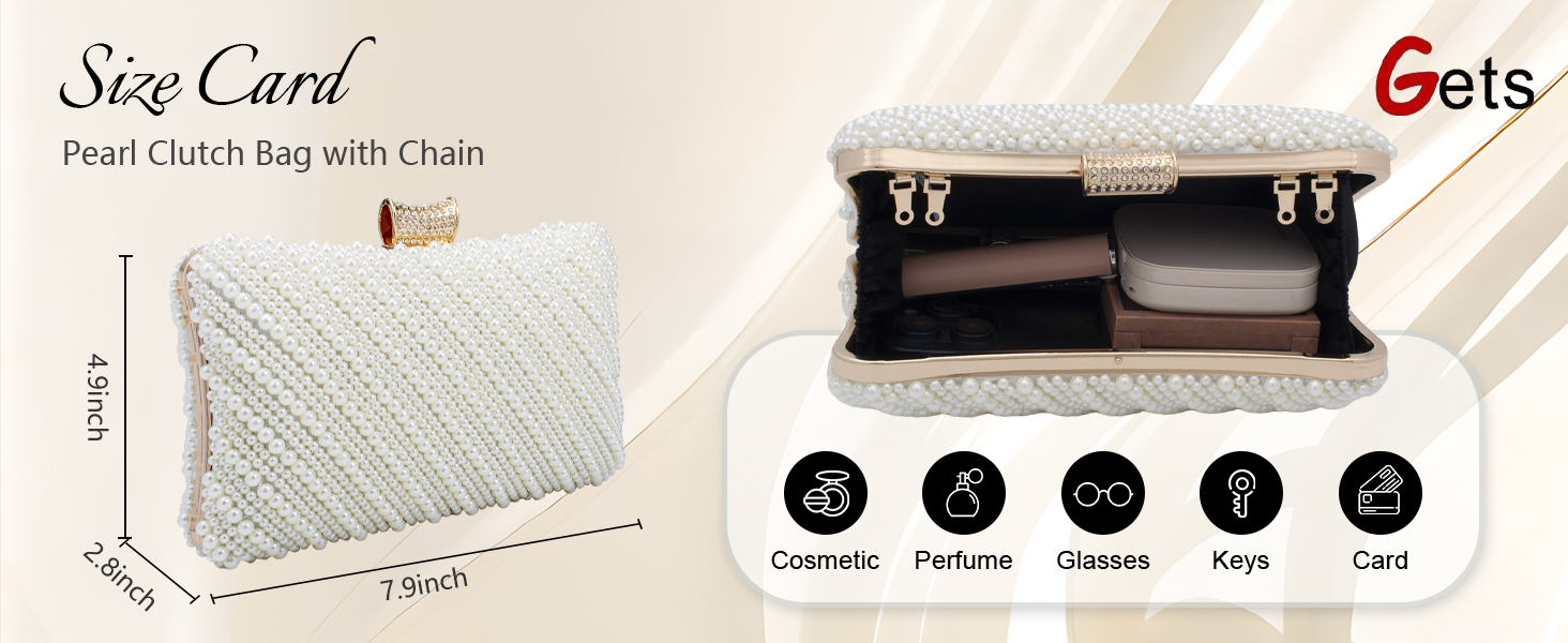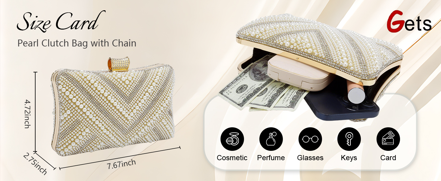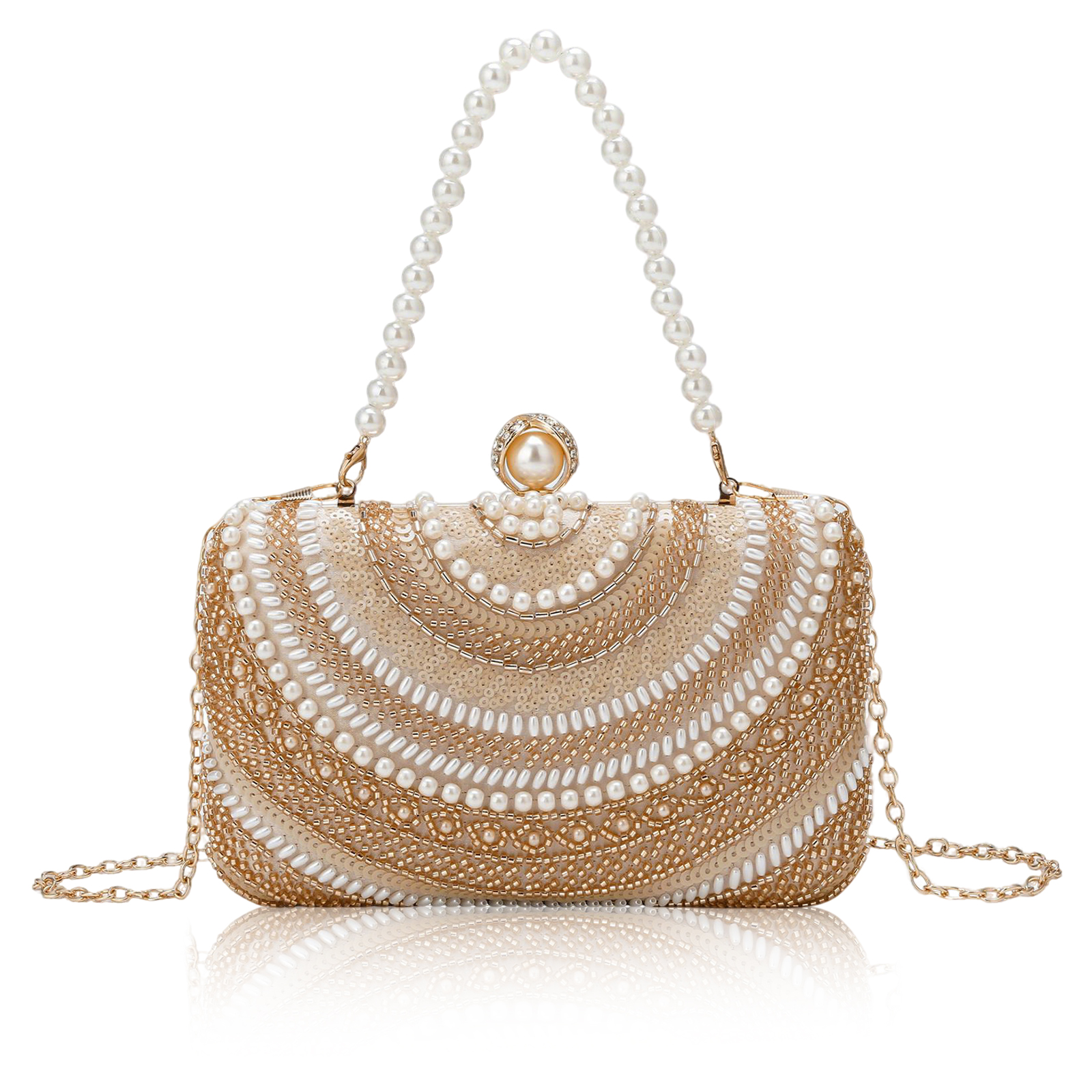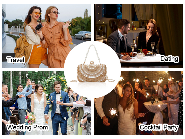Acrylique & Perle en plastique Sac d’embrayage Solide Beige pièce