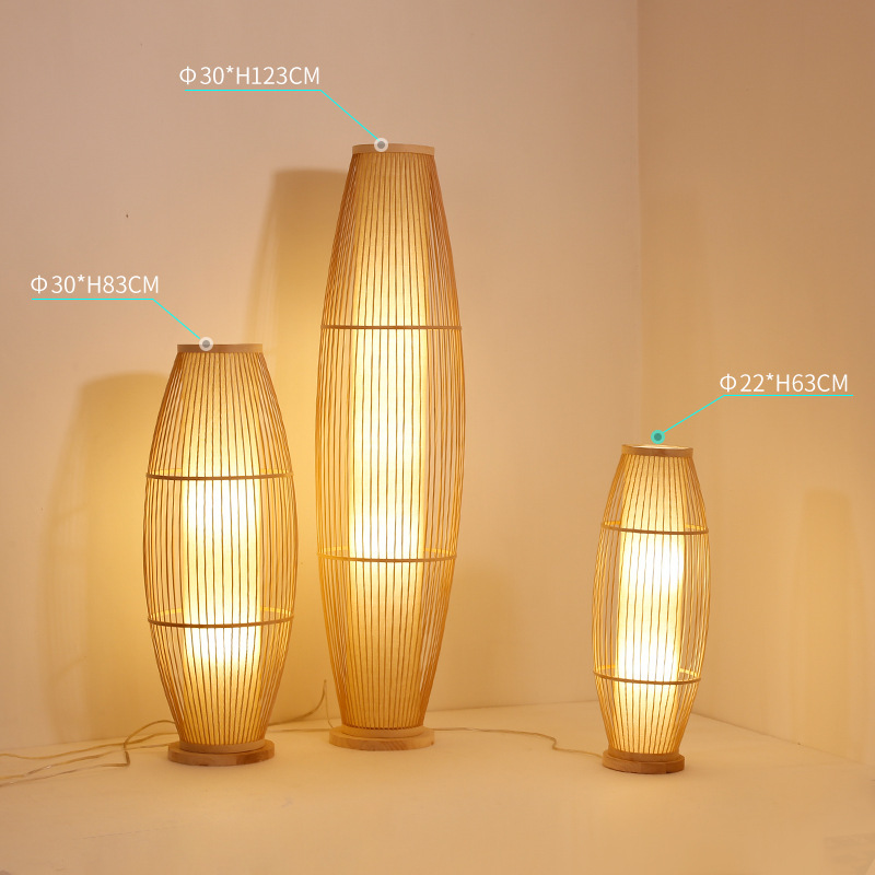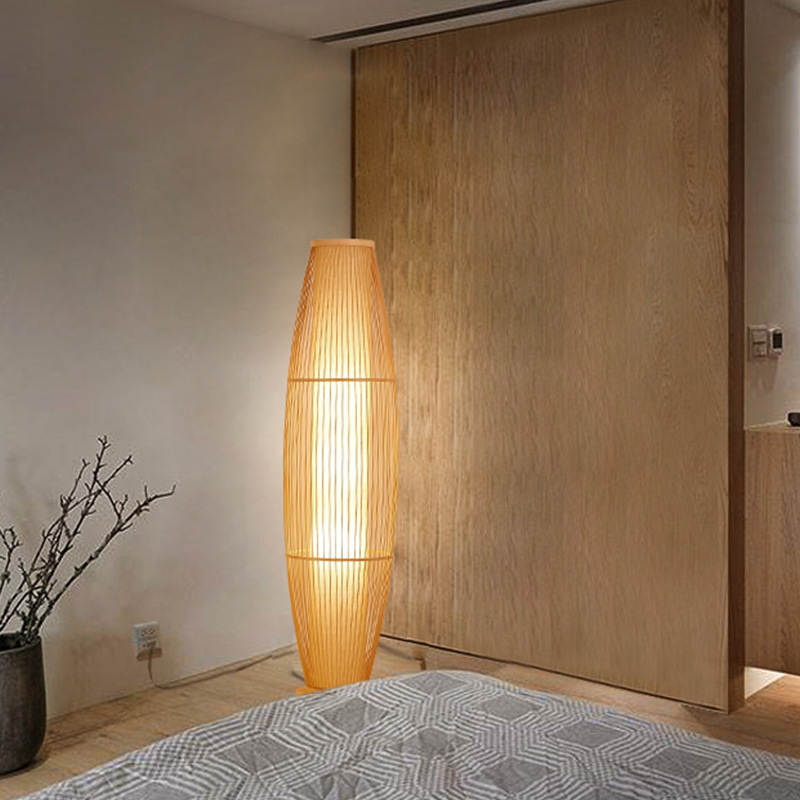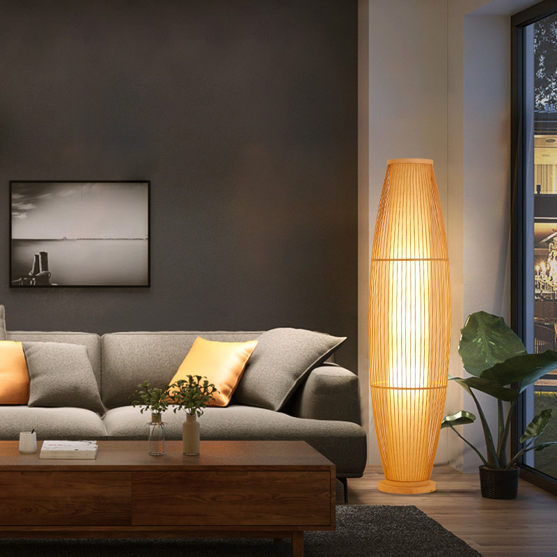 Bambou Lampe de plancher Lin & Bois massif Jaune pièce