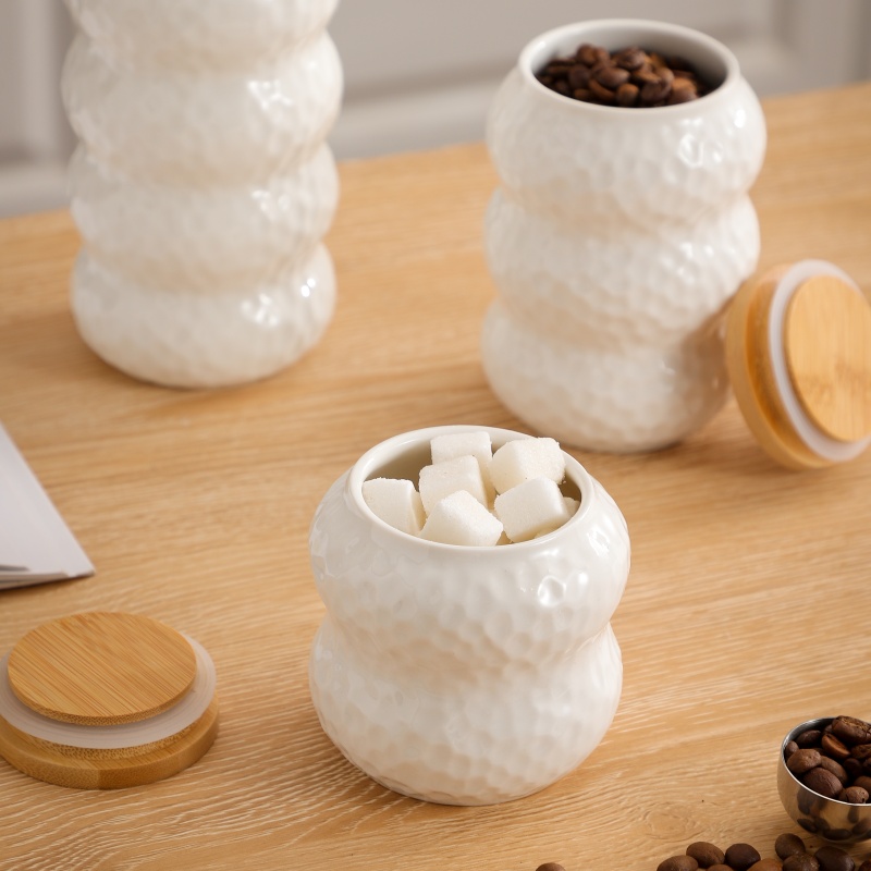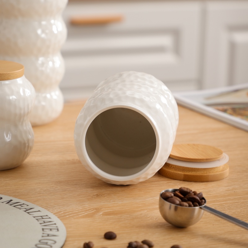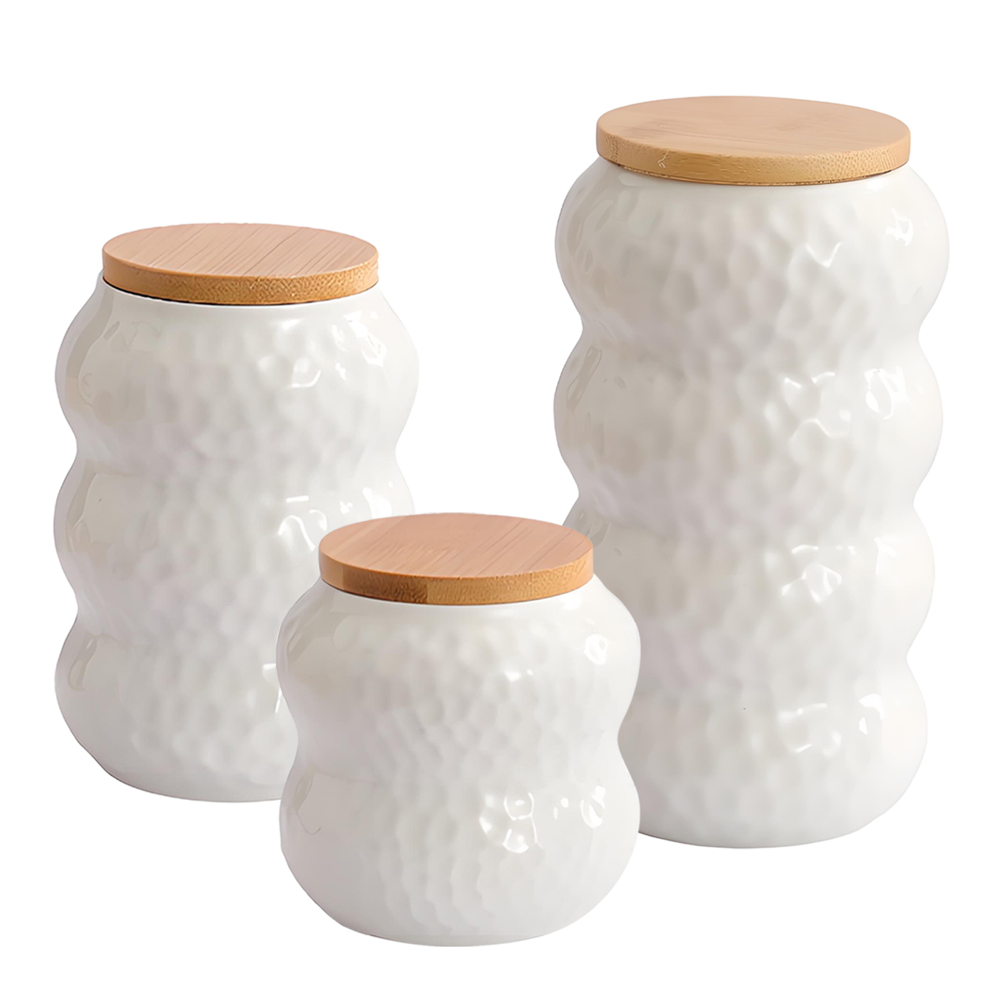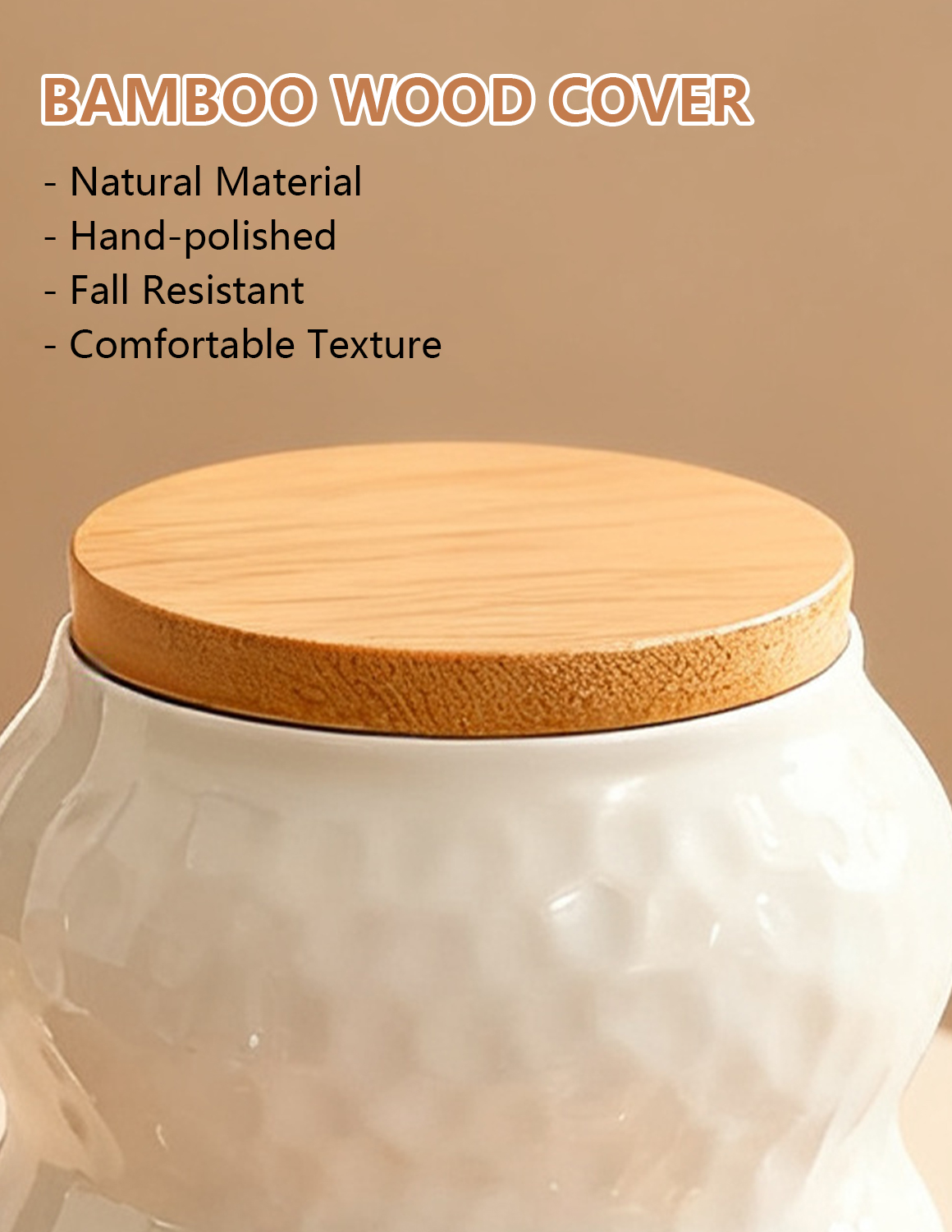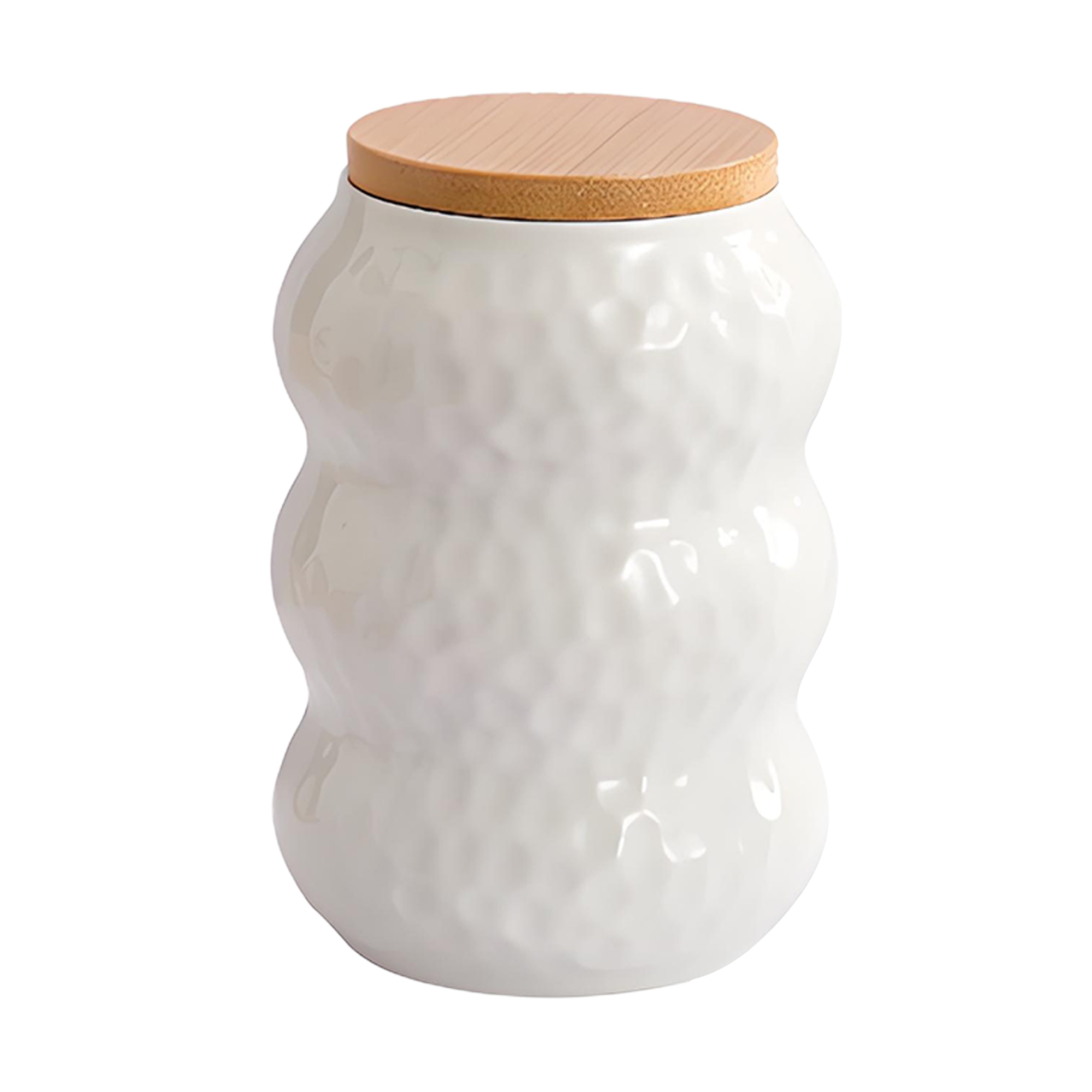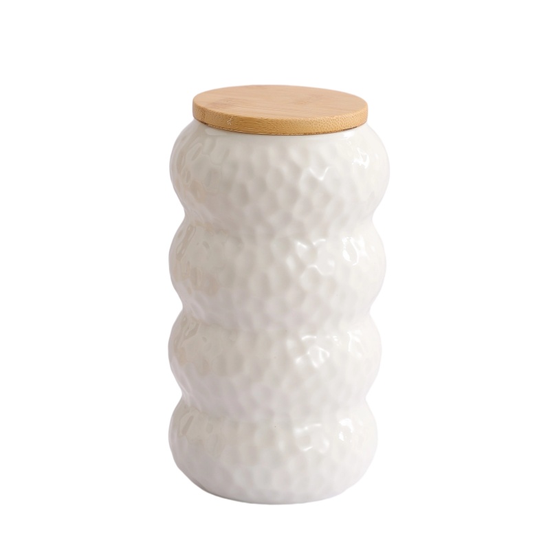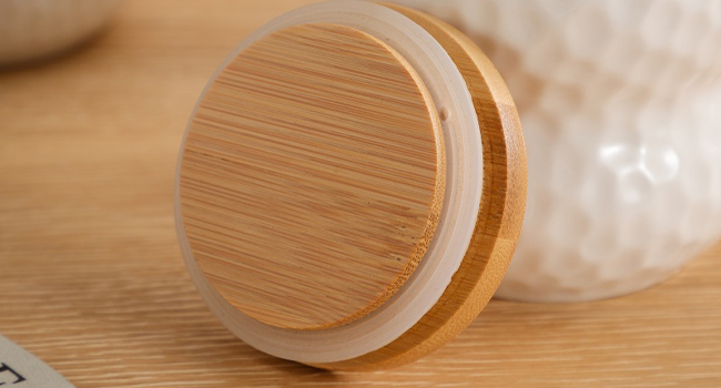 Bambou & Céramique Pot de stockage Solide Blanc pièce