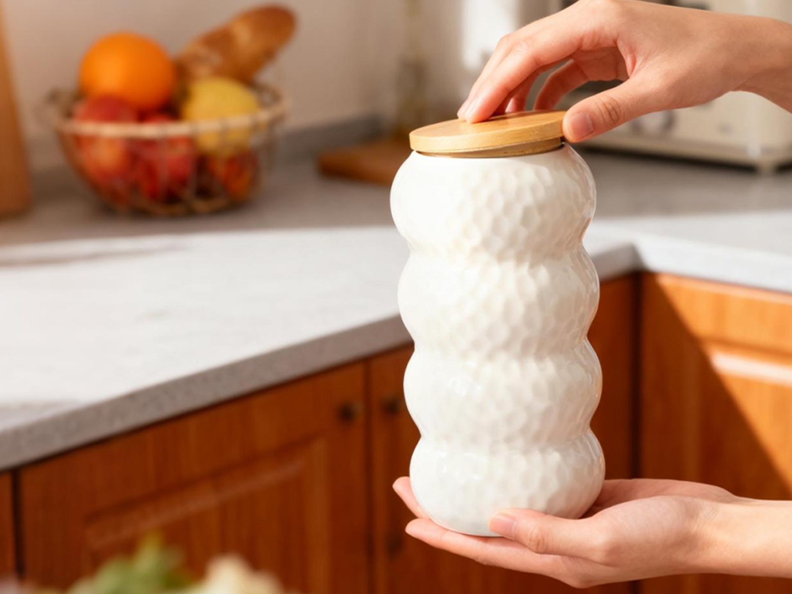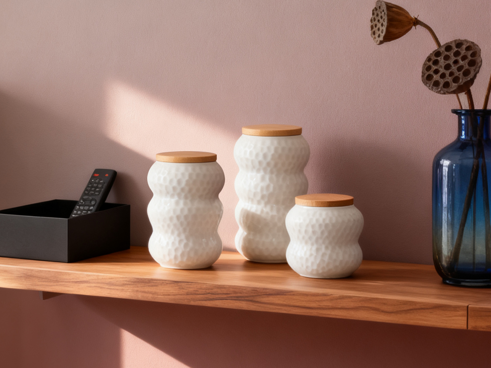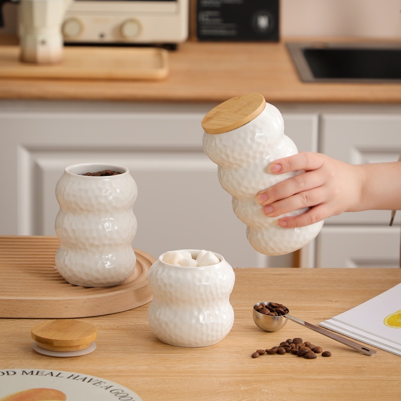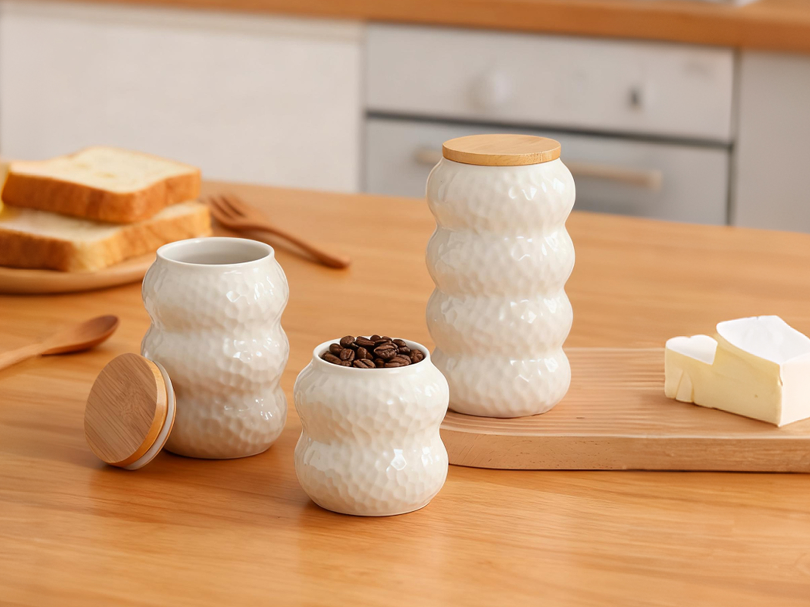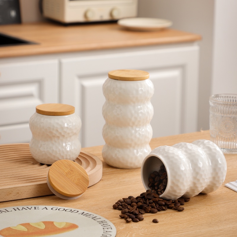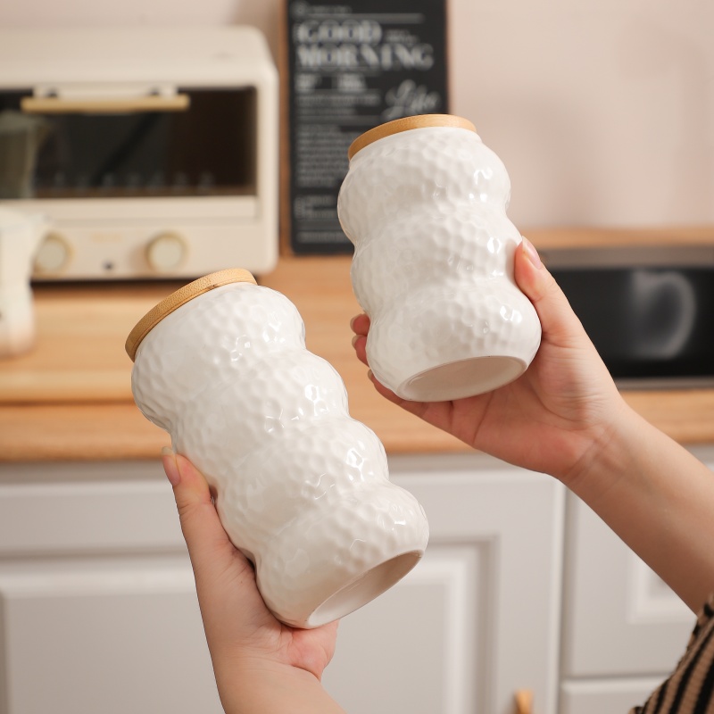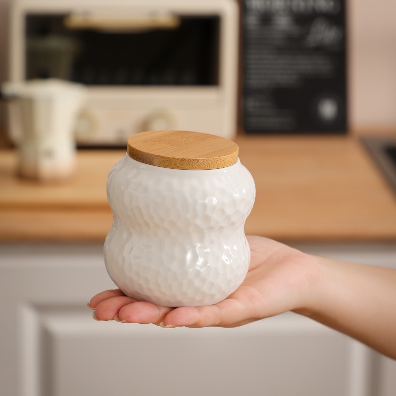 Bambou & Céramique Pot de stockage Solide Blanc pièce