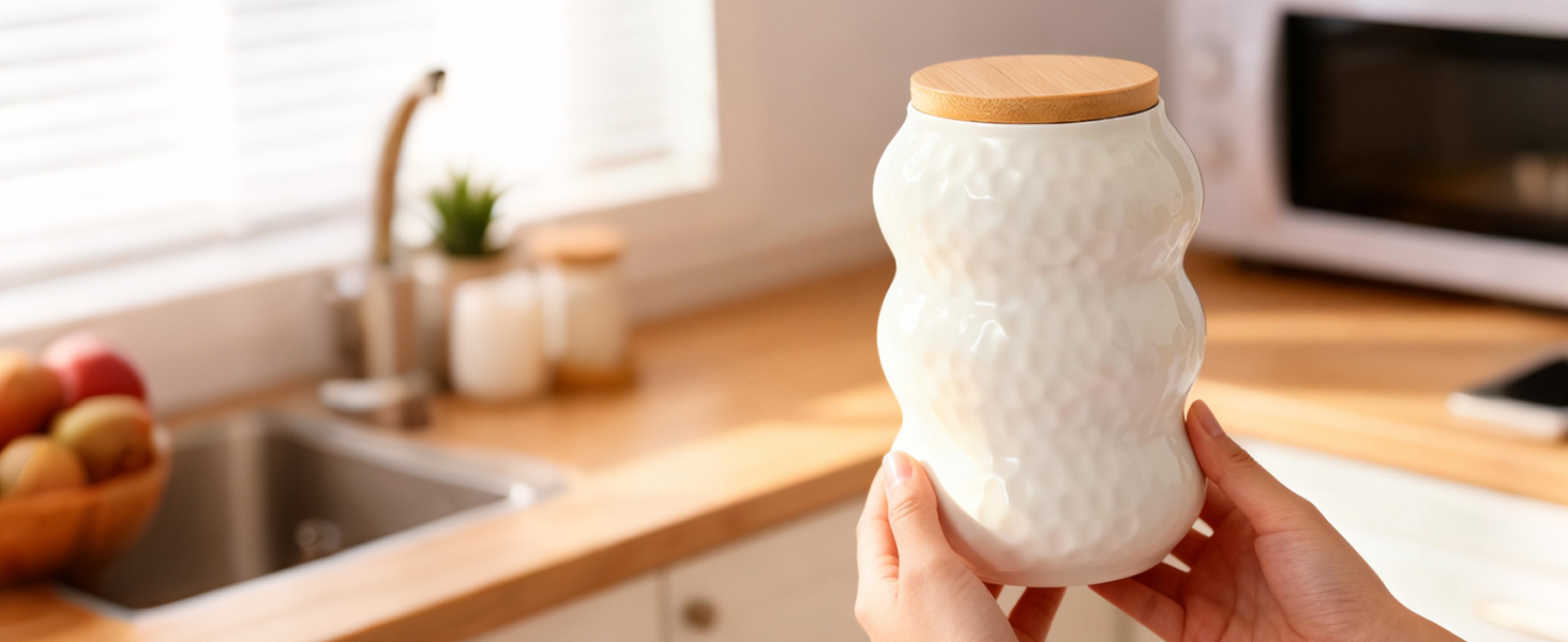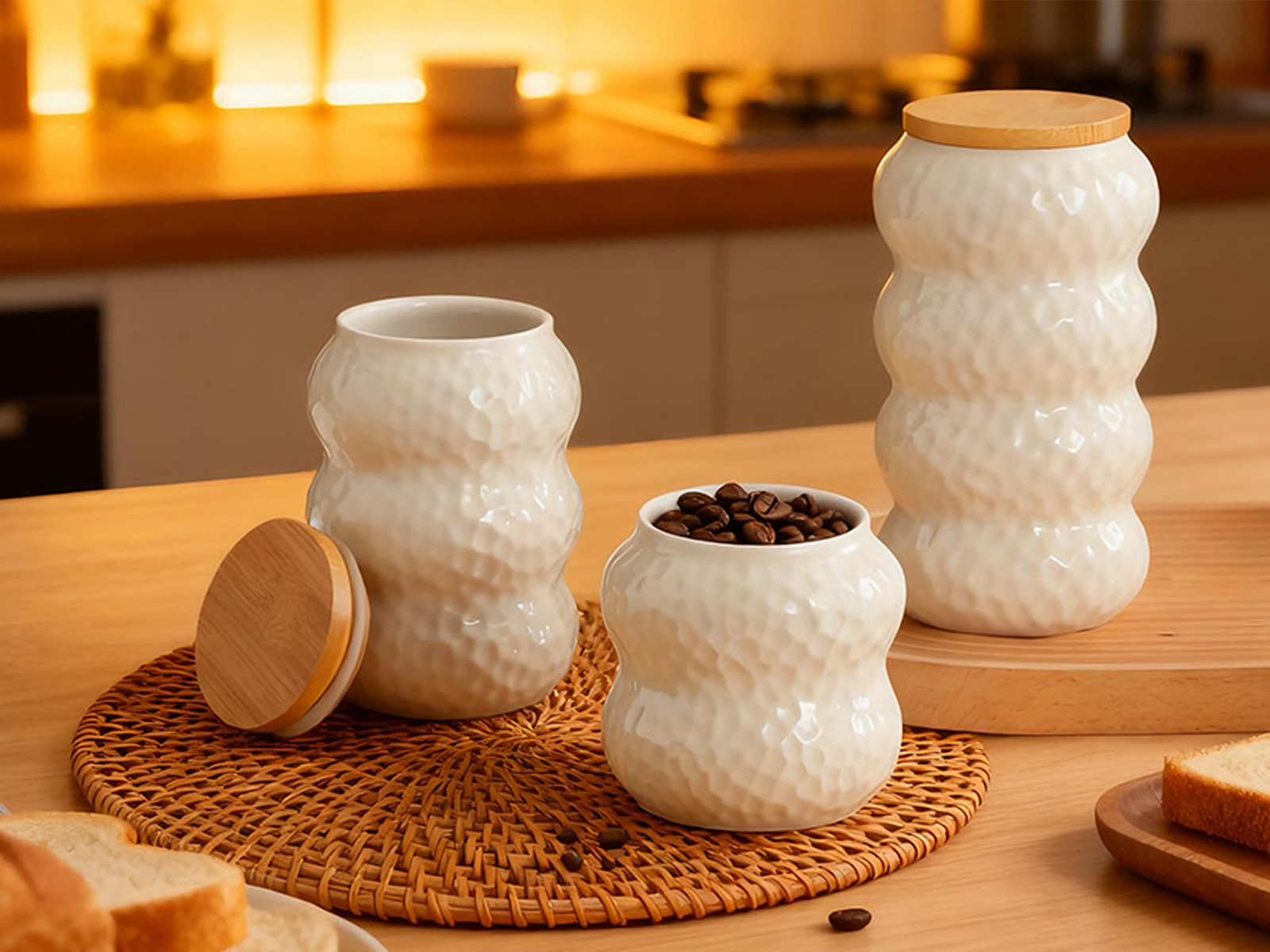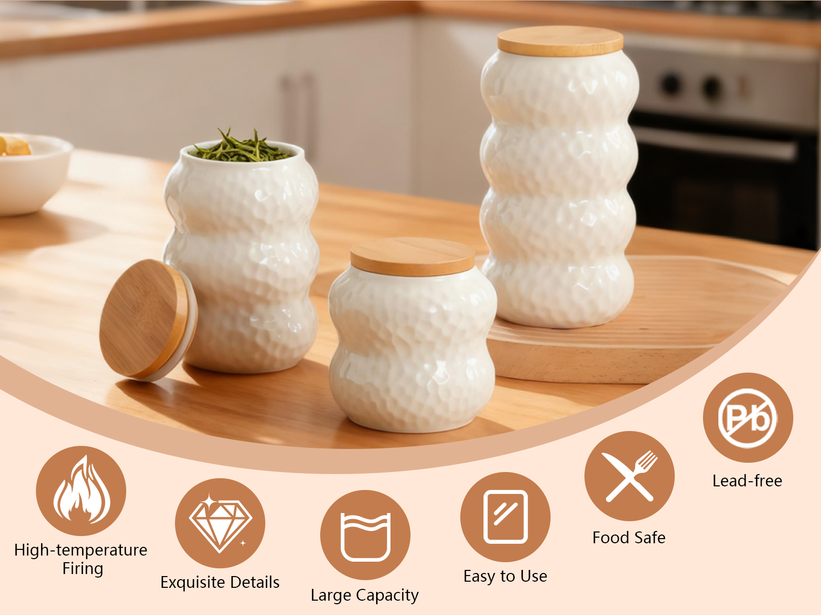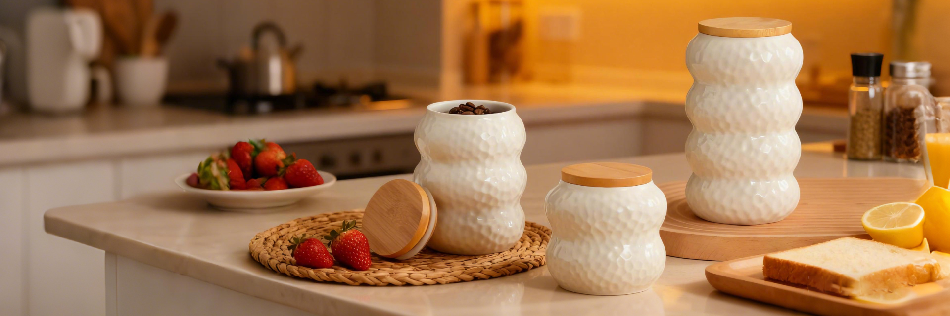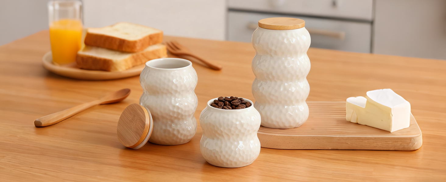 Bambou & Céramique Pot de stockage Solide Blanc pièce