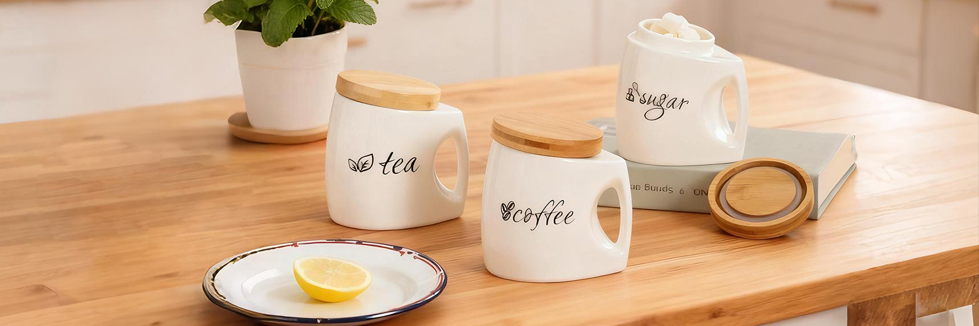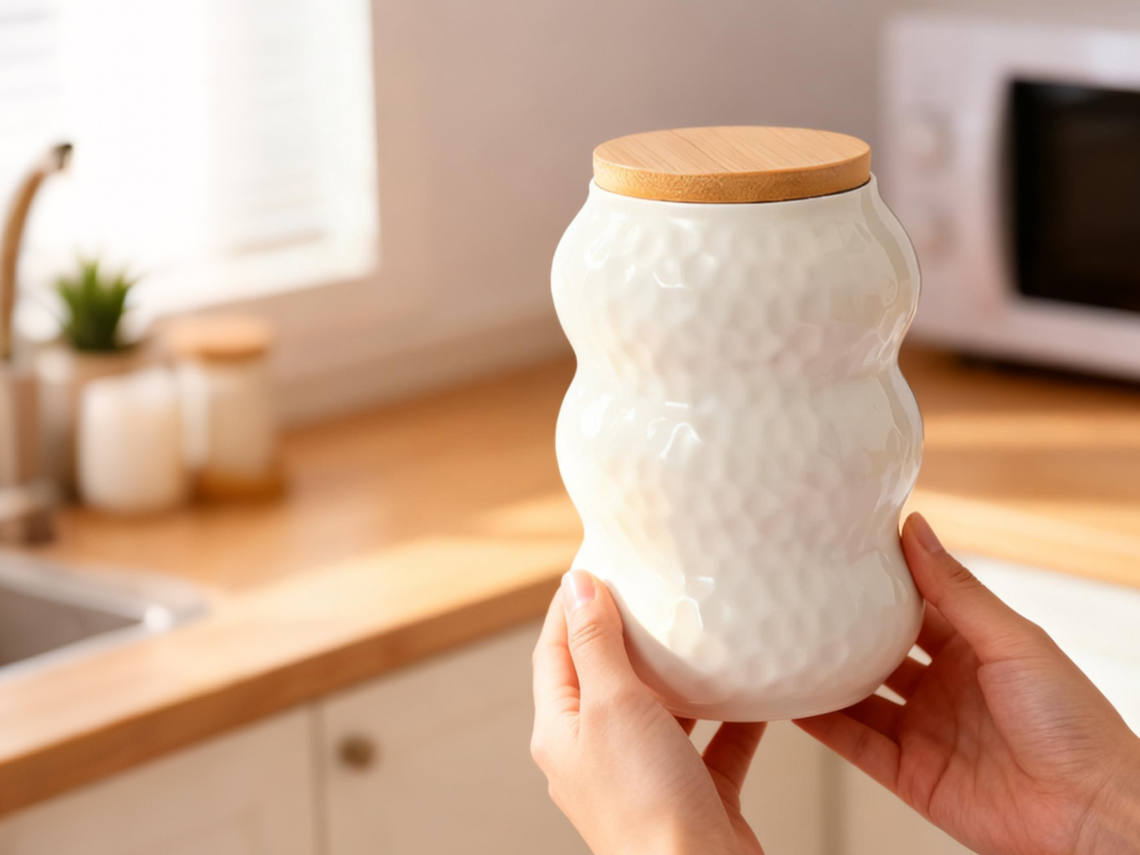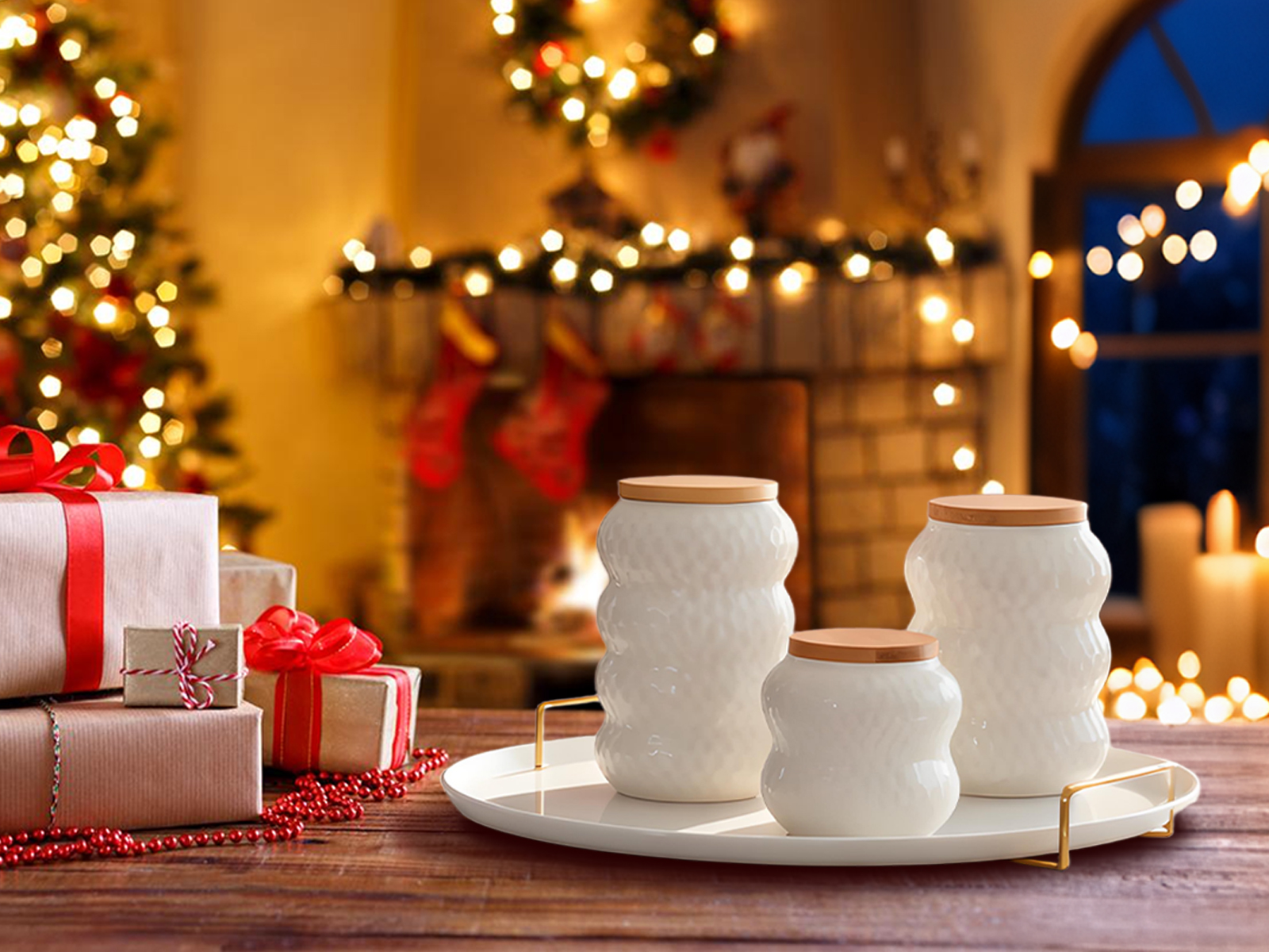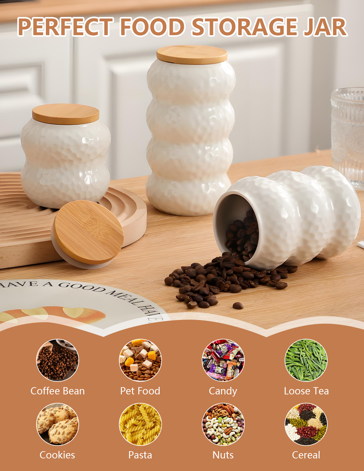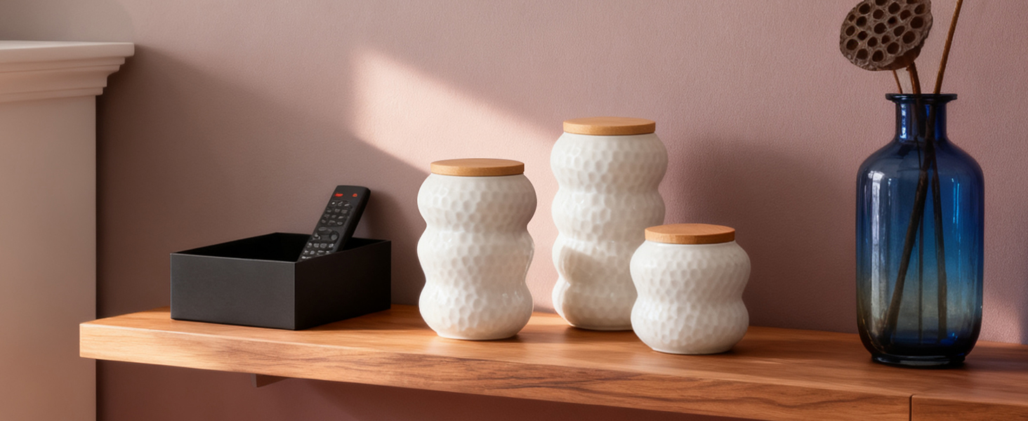 Bambou & Céramique Pot de stockage Solide Blanc pièce
