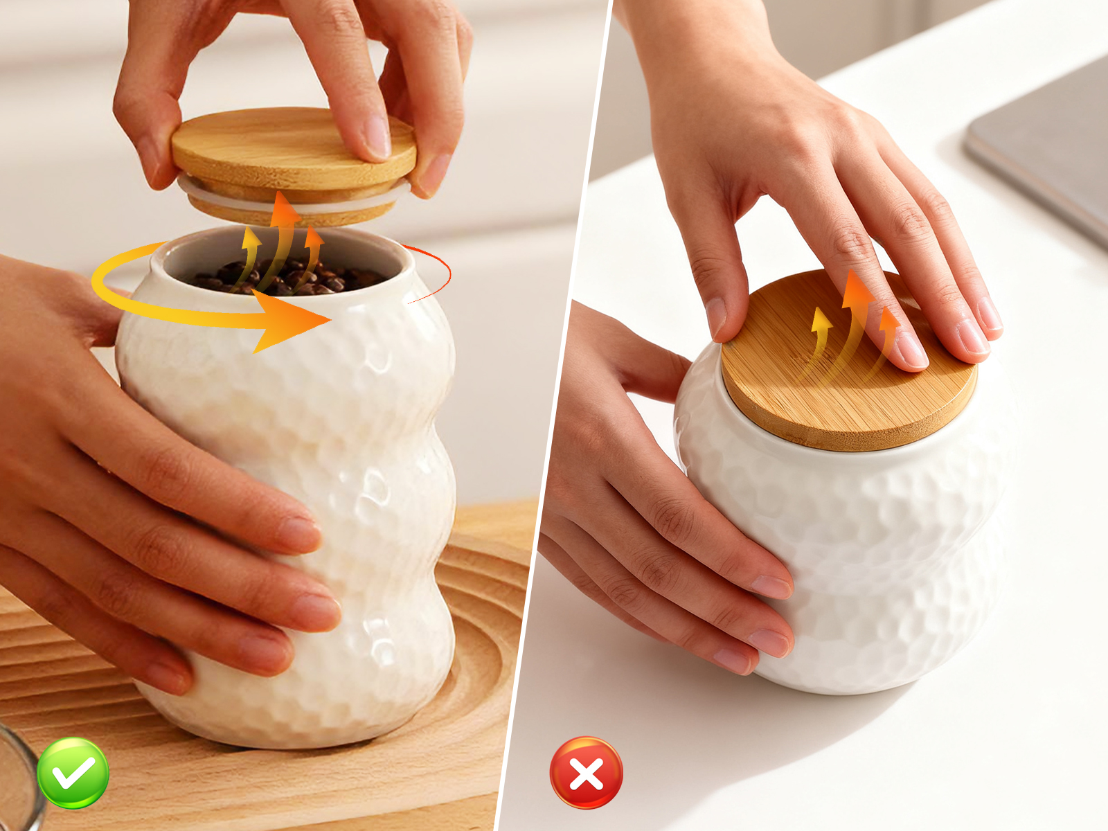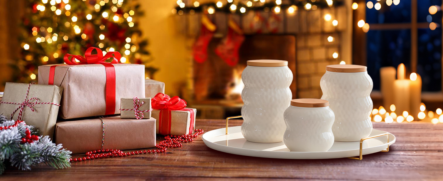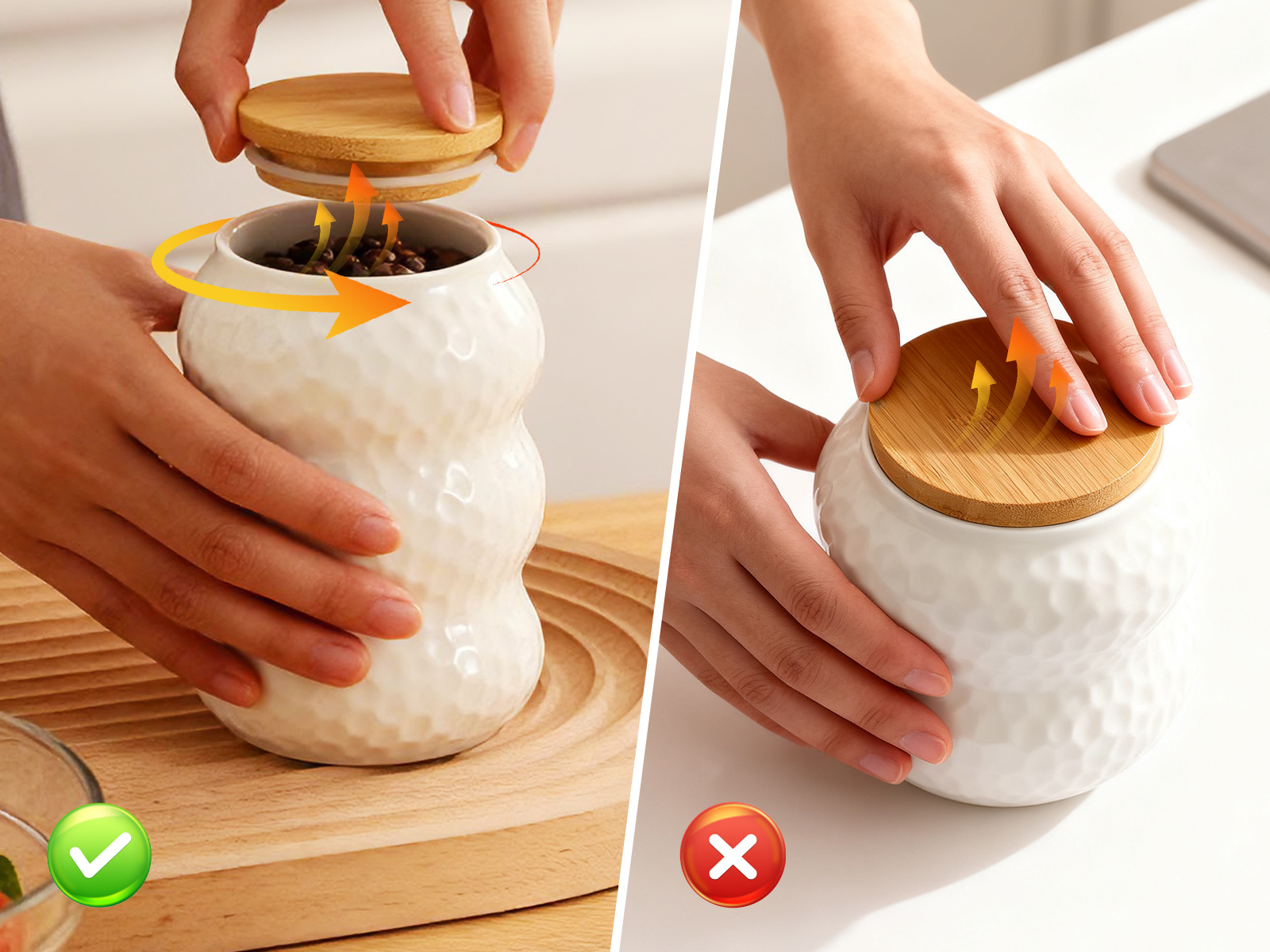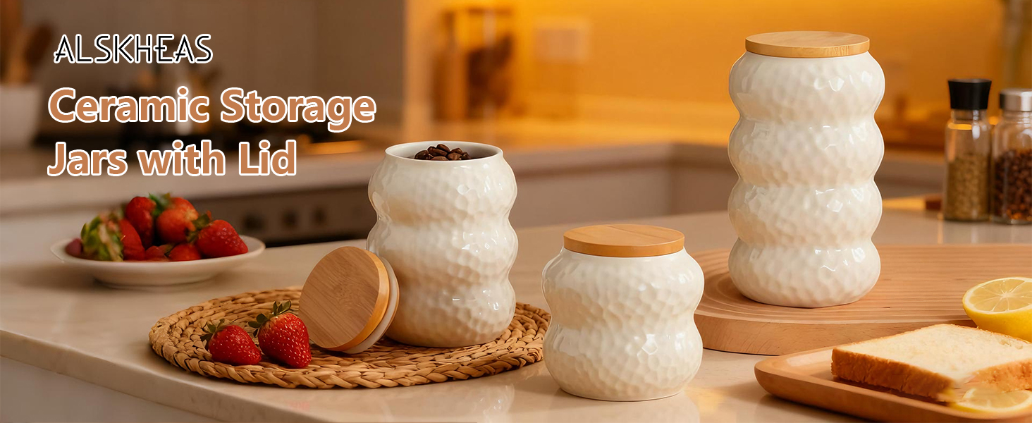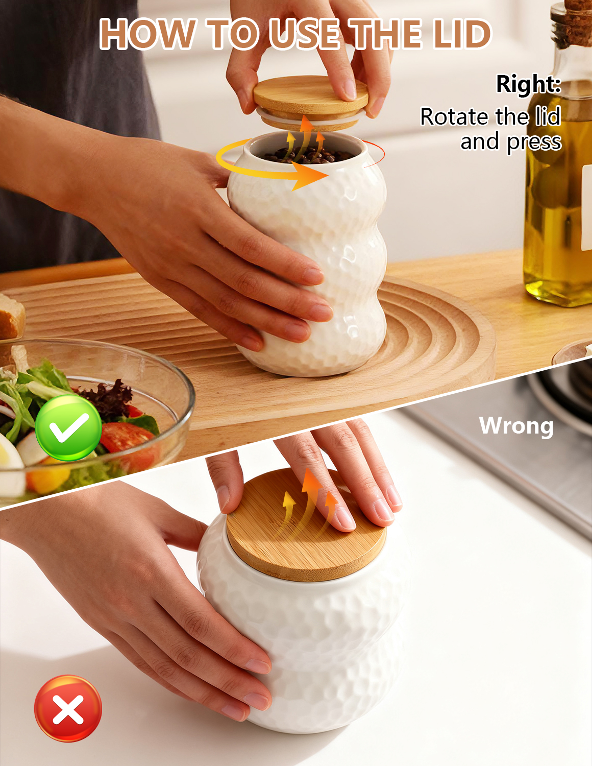 Bambou & Céramique Pot de stockage Solide Blanc pièce