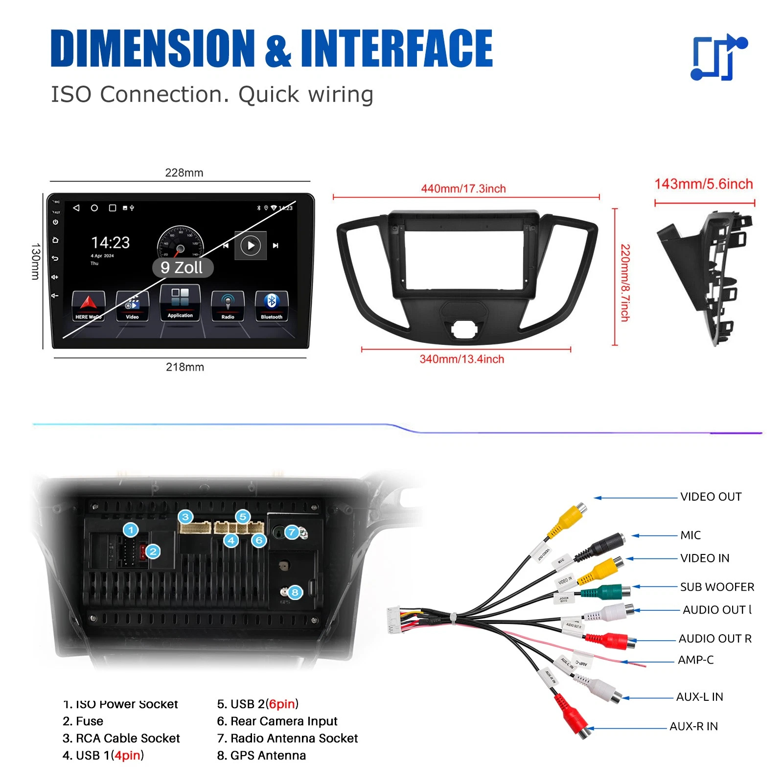Carplay For Ford Transit Custom Android 14 Car Stereo HD GPS NAV 32G Radio