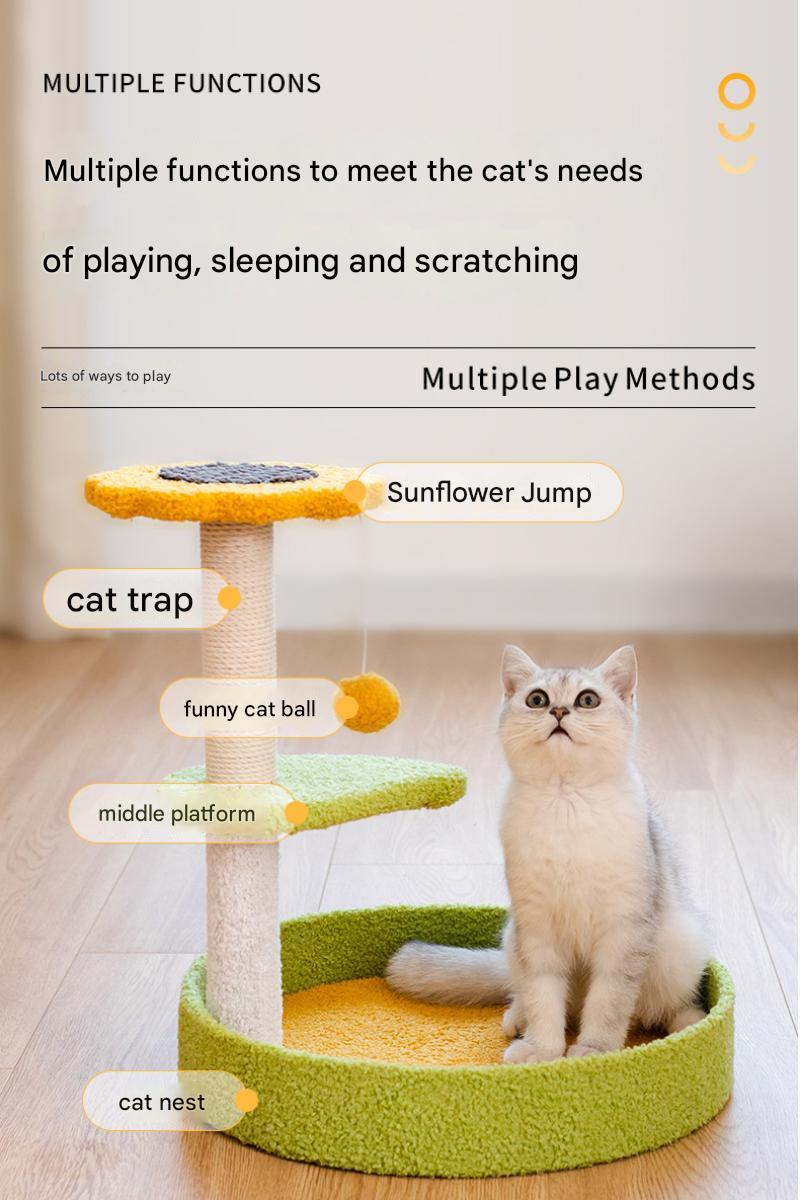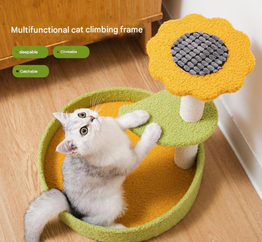 Chanvre de Sisal & Bois & Peluche Cadre d’escalade de chat Floral pièce