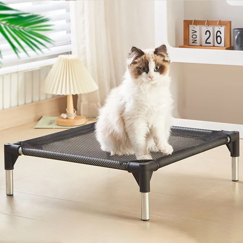 Chiffon & Acier inoxydable & Plastique Lit pour animaux de compagnie Solide Noir pièce