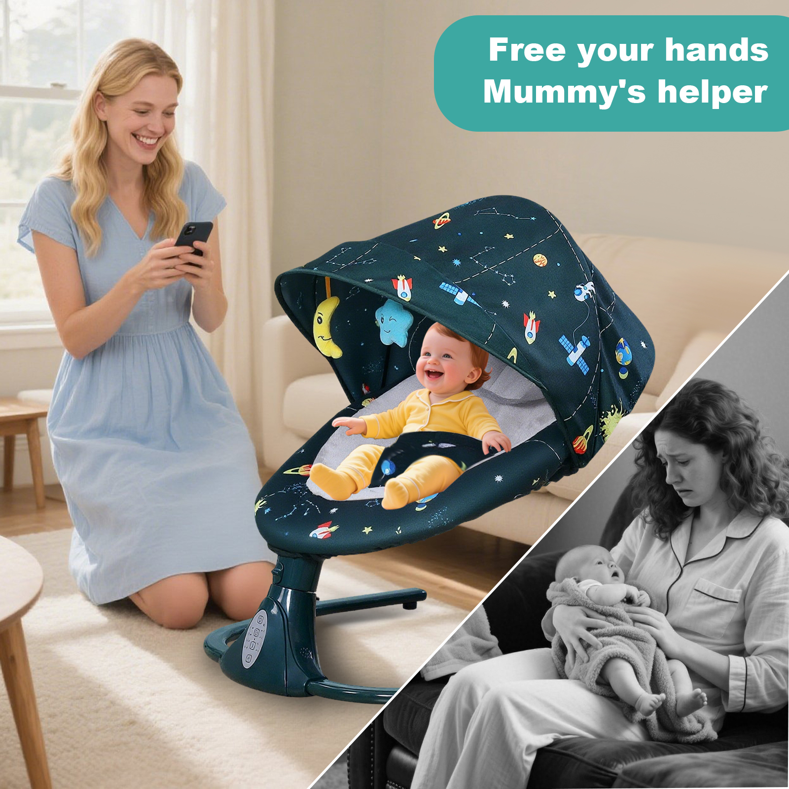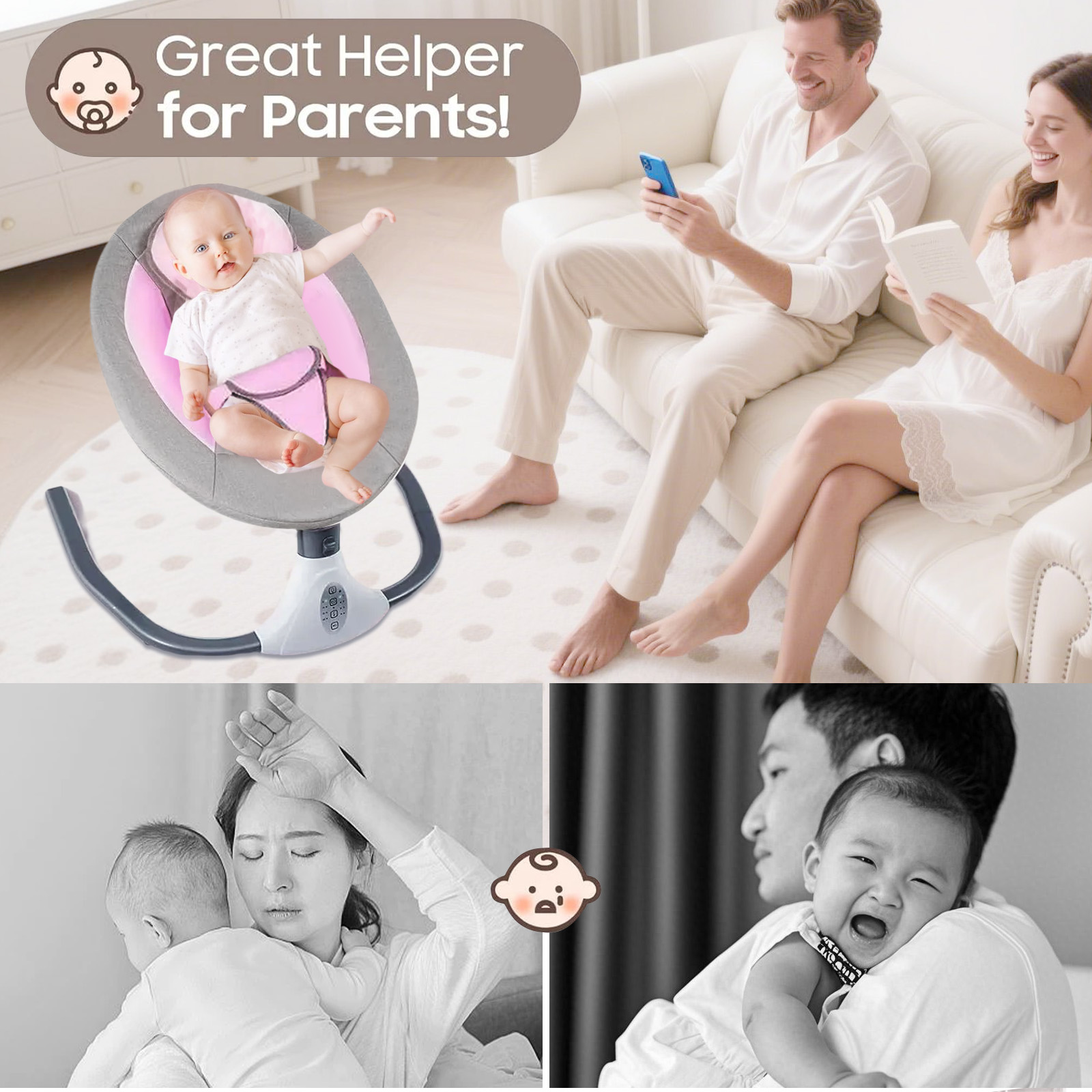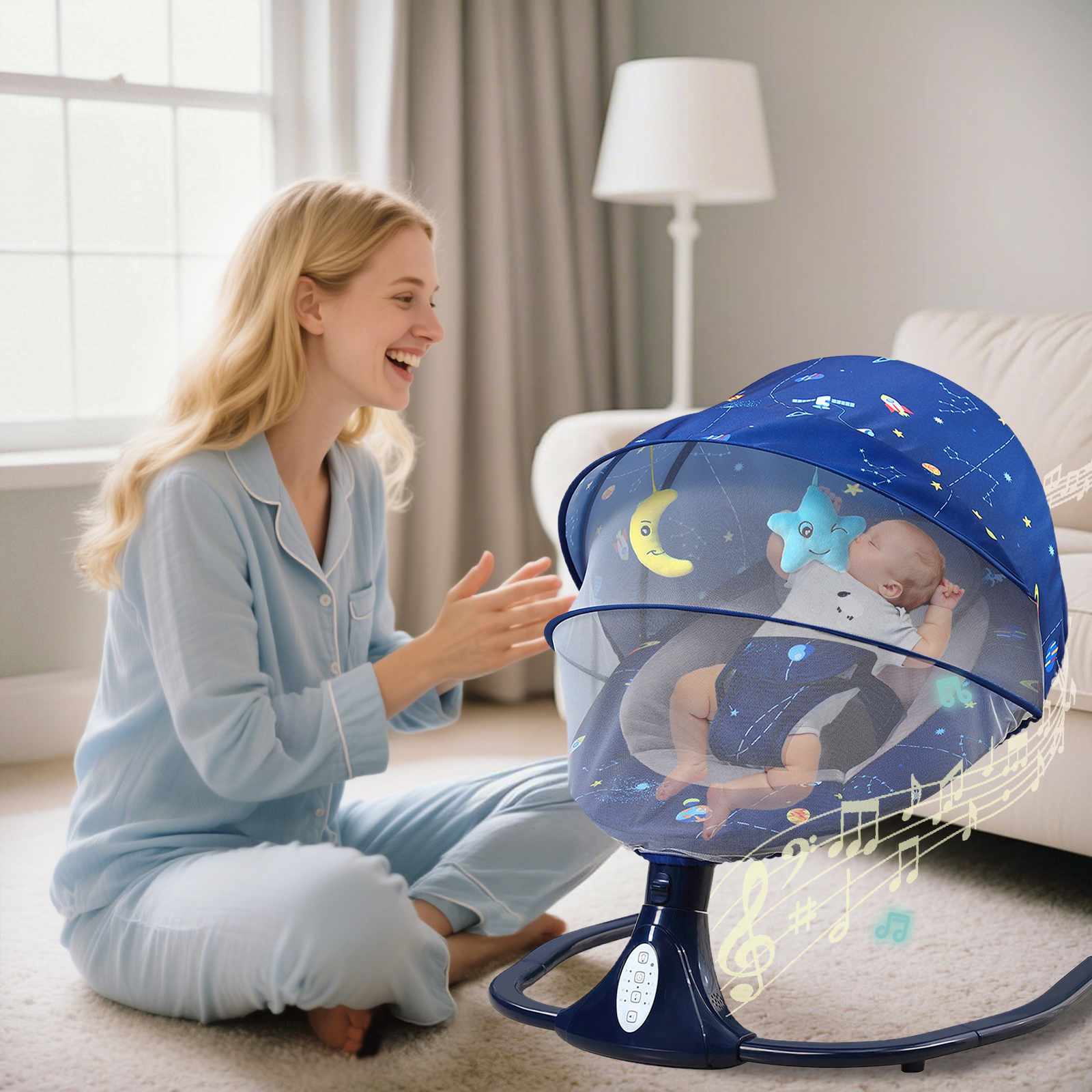 ★ 110/03/2022Keeps baby happyit is assembled it works well, although it's a bit noisy. The swinging action and the white noise or music combine to pacify your baby. It absolutely works and is good value for money.Cathy
