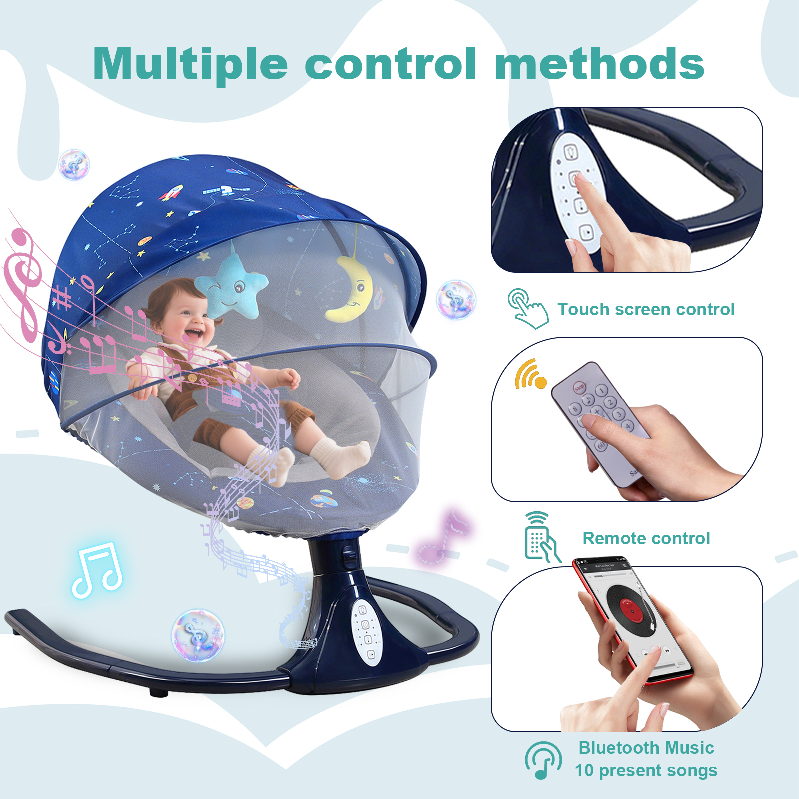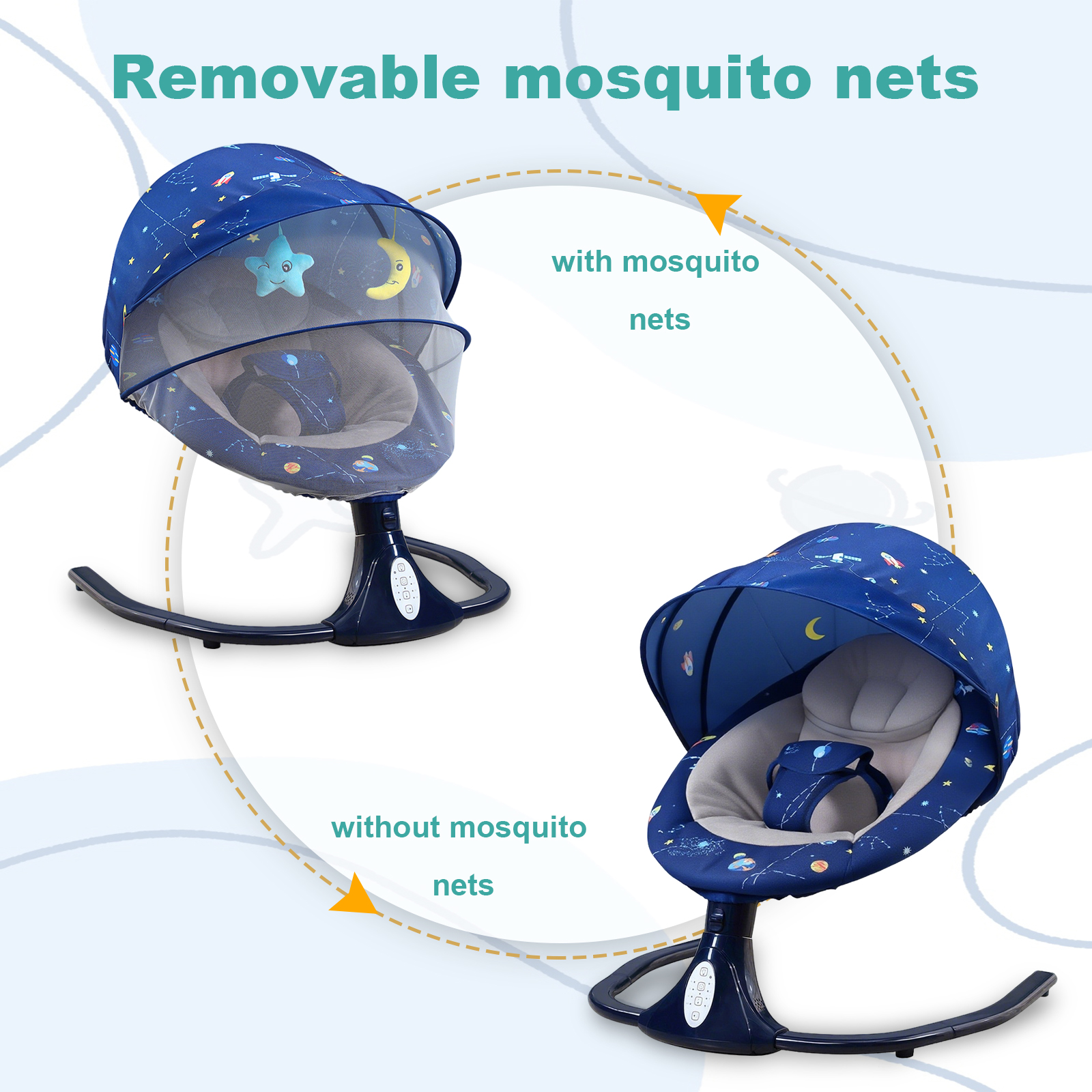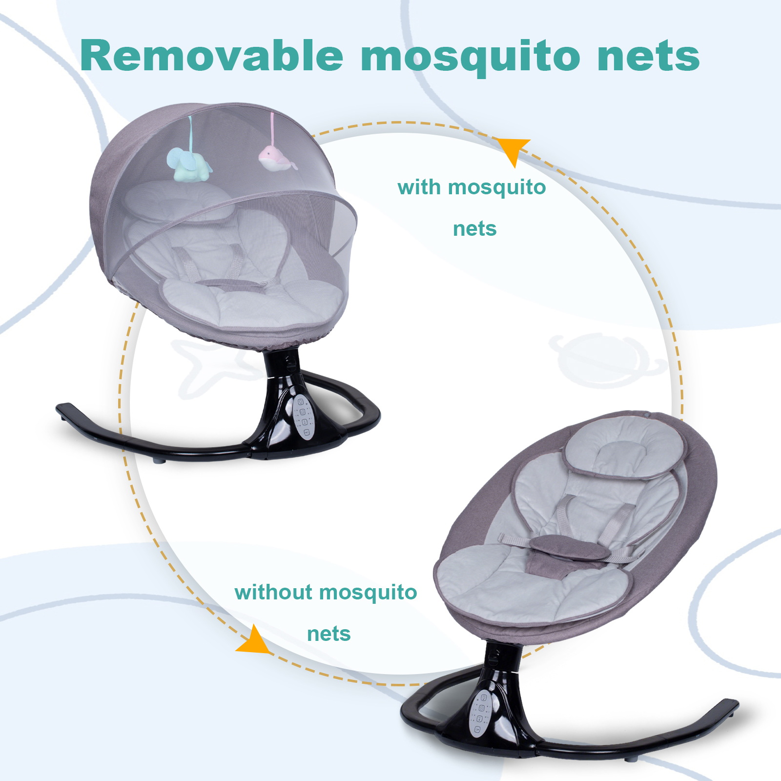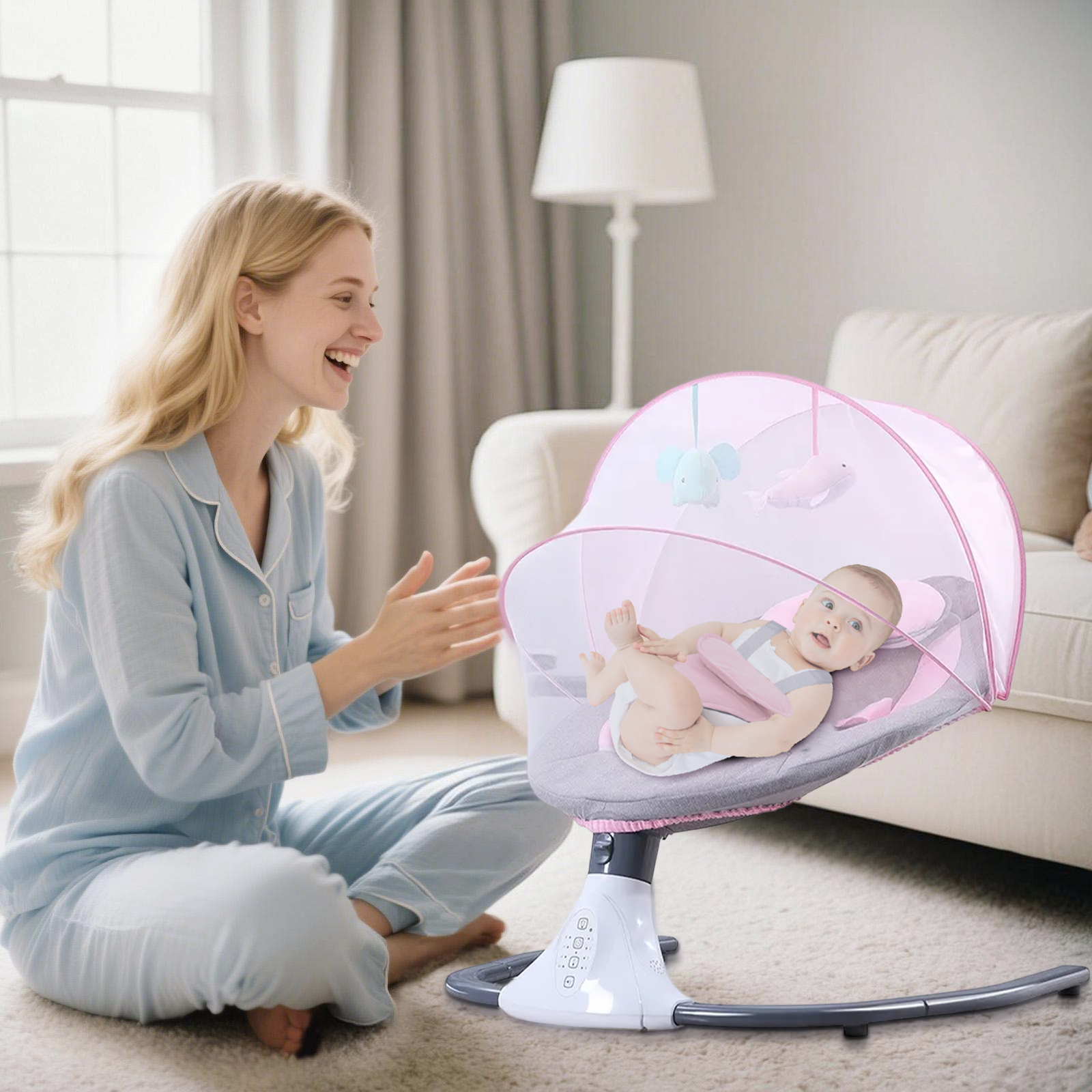★ ★ ★ ★ ★ 508/02/2022Great quality baby swingVery comfortable and safe Baby Swing.We like it so much. Its really quiet and has different swing speeds.Scott Corbett