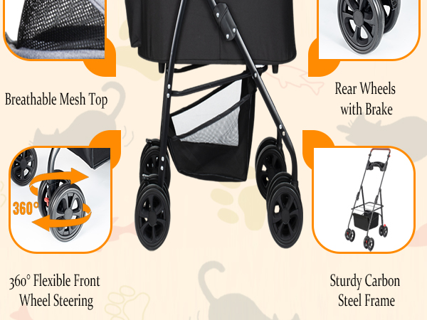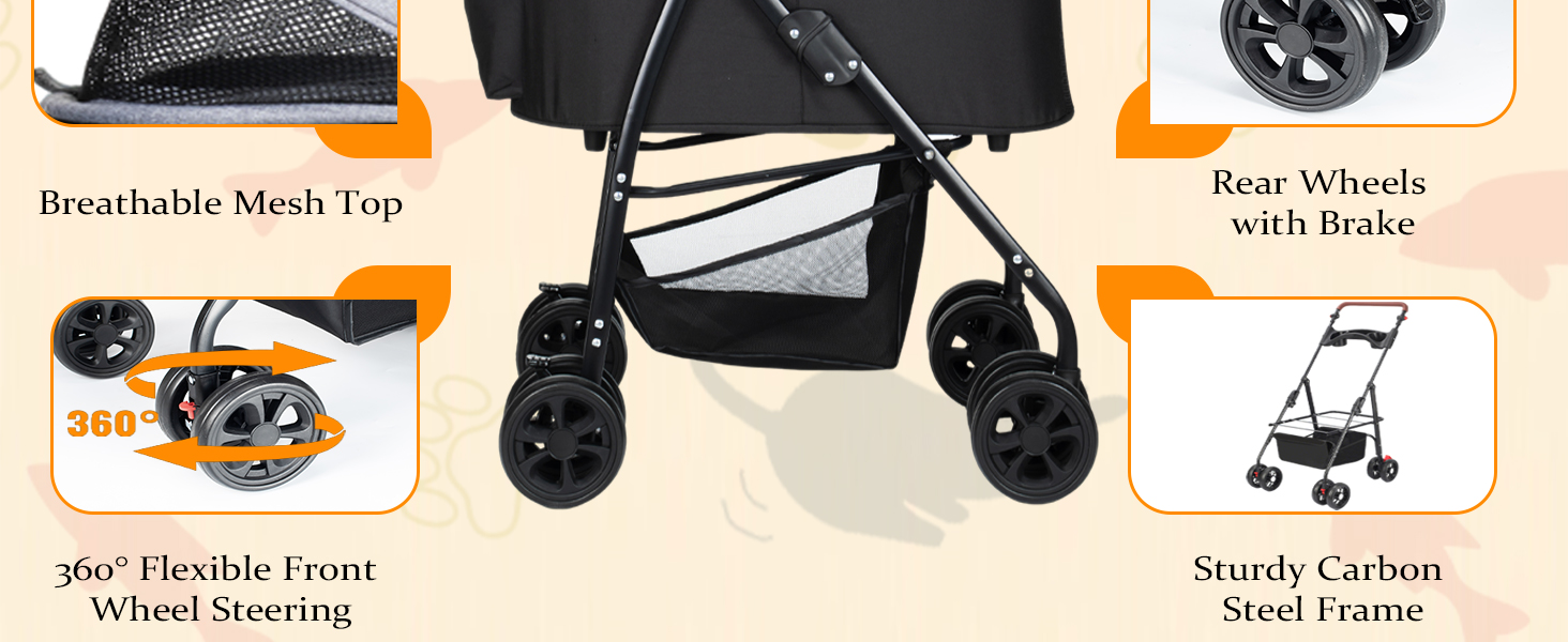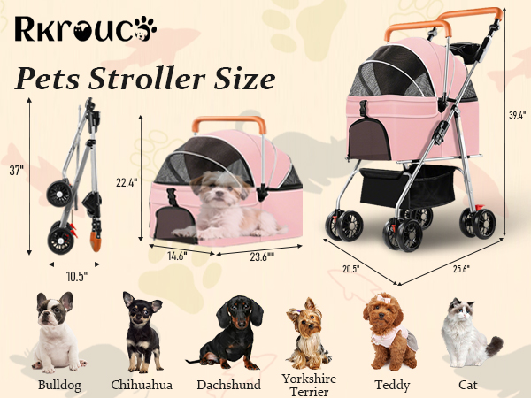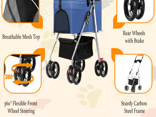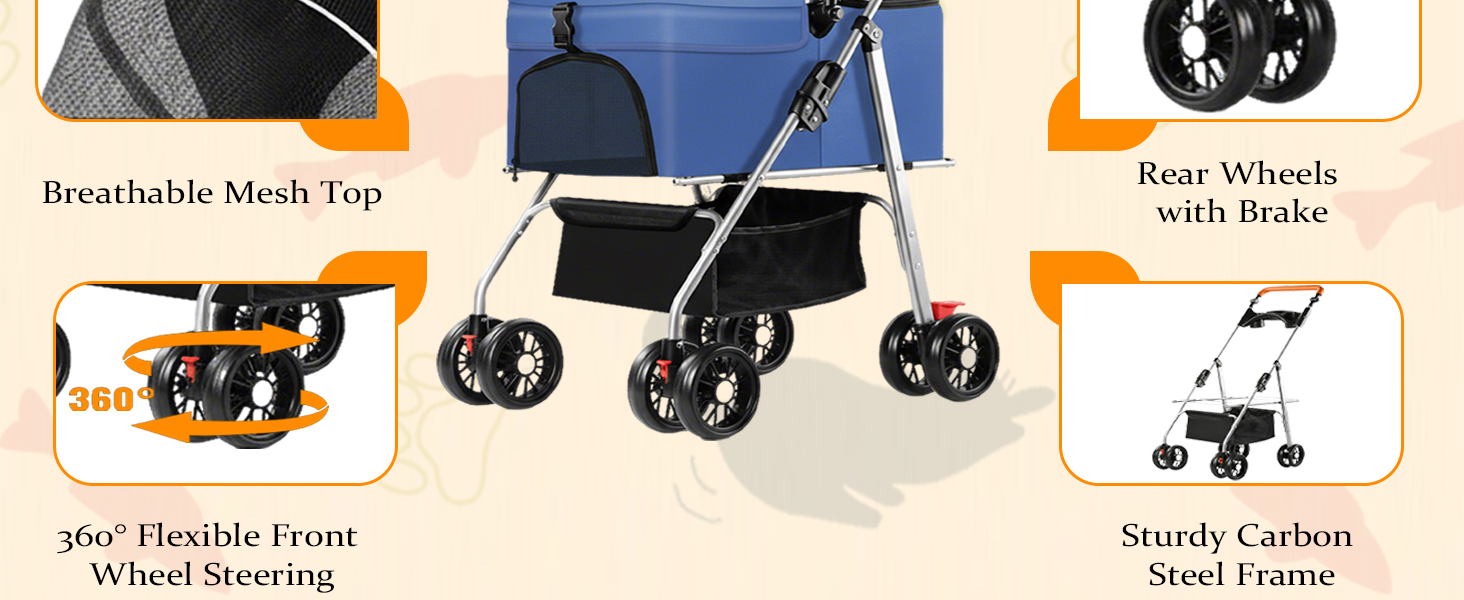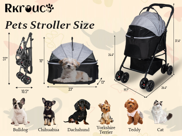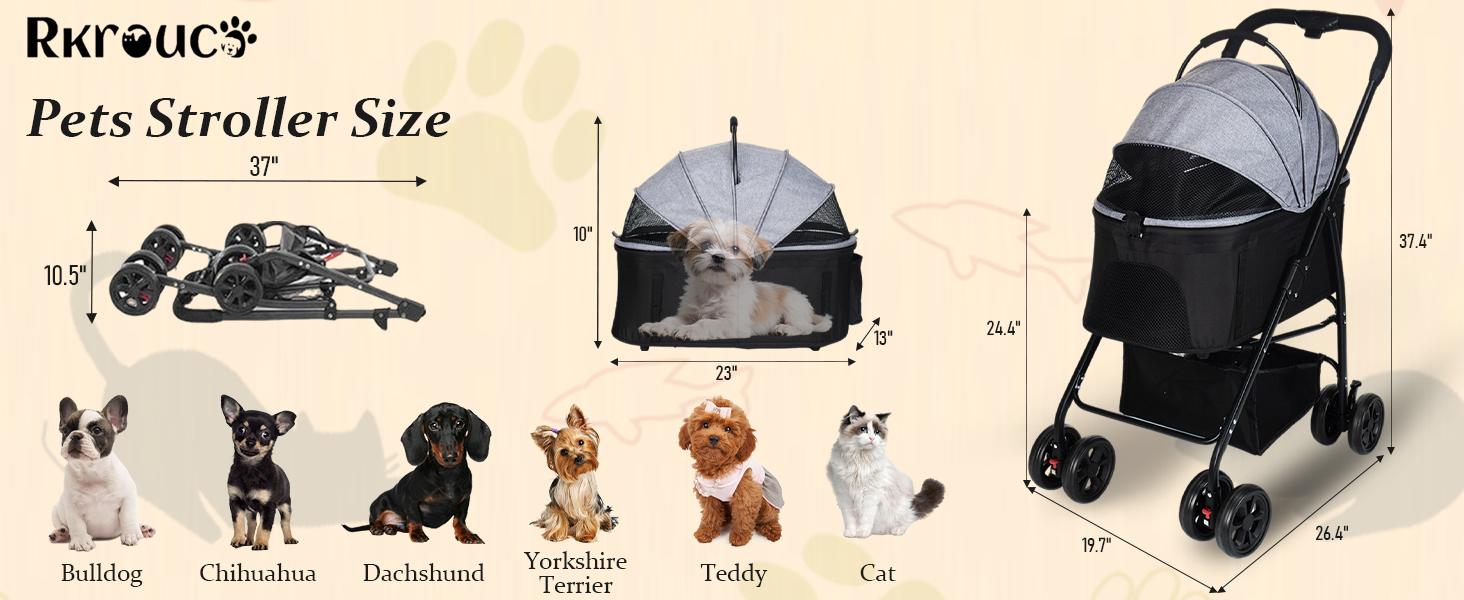 Chiffon & Métal Poussette pour animaux de compagnie Imprimé couleur et motif différents pour le choix pièce