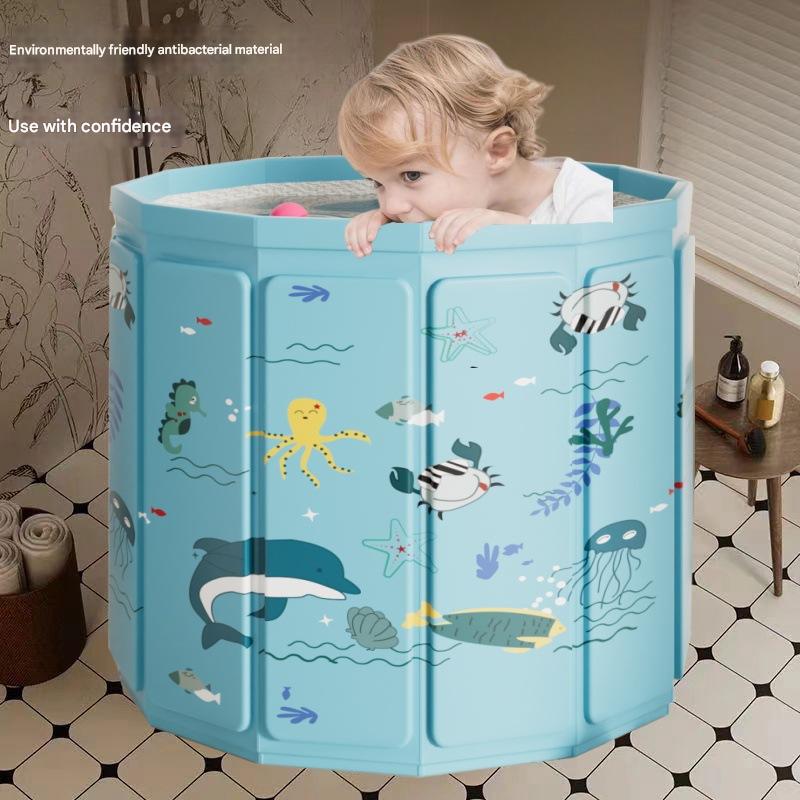 Coton perle & Pvc & Oxford Baignoire pliante Imprimé Dessin animé Bleu pièce