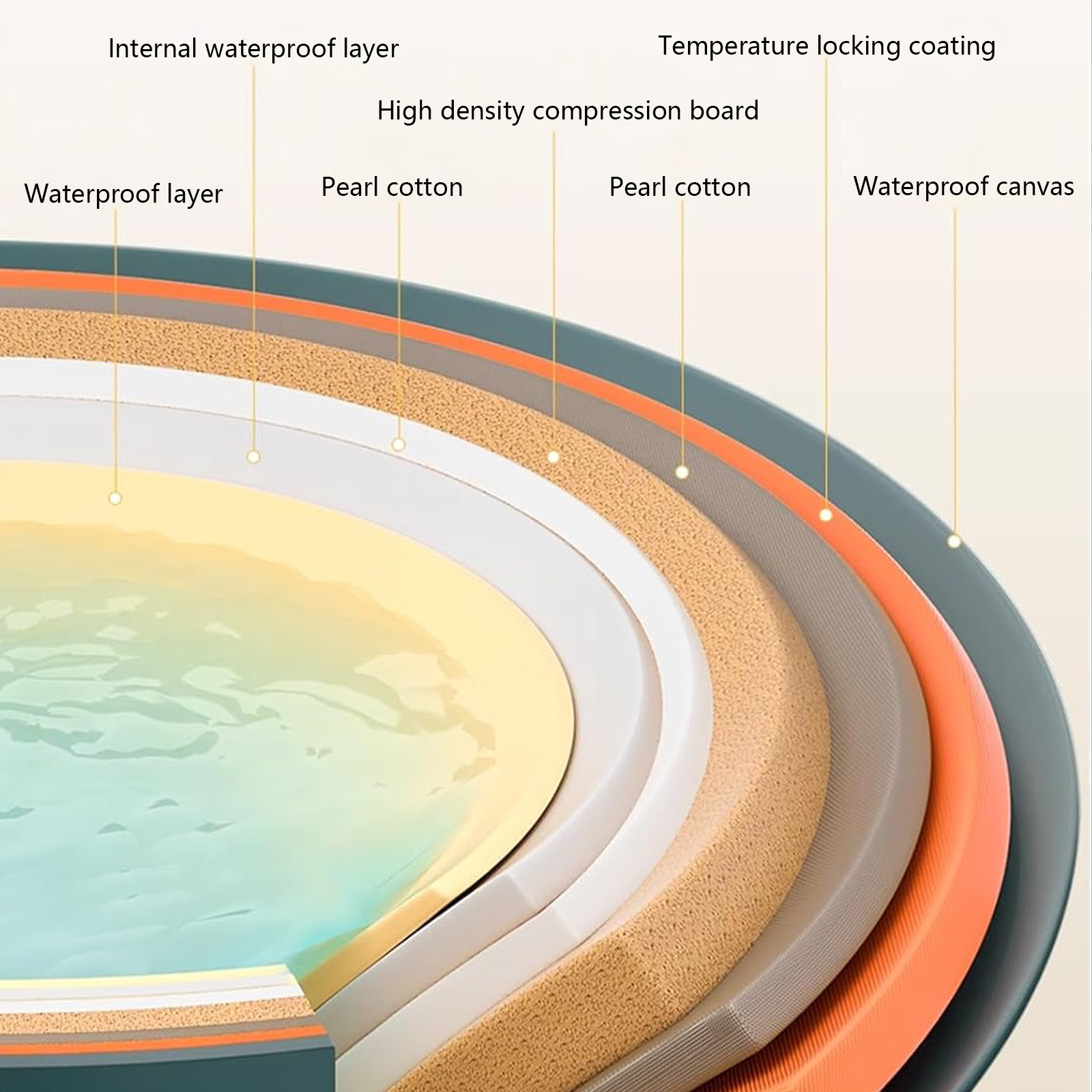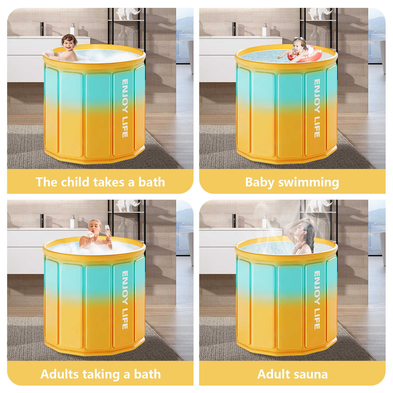 Coton perle & Tissu imperméable à l’eau & Pvc Baignoire pliante Lettre Jaune pièce