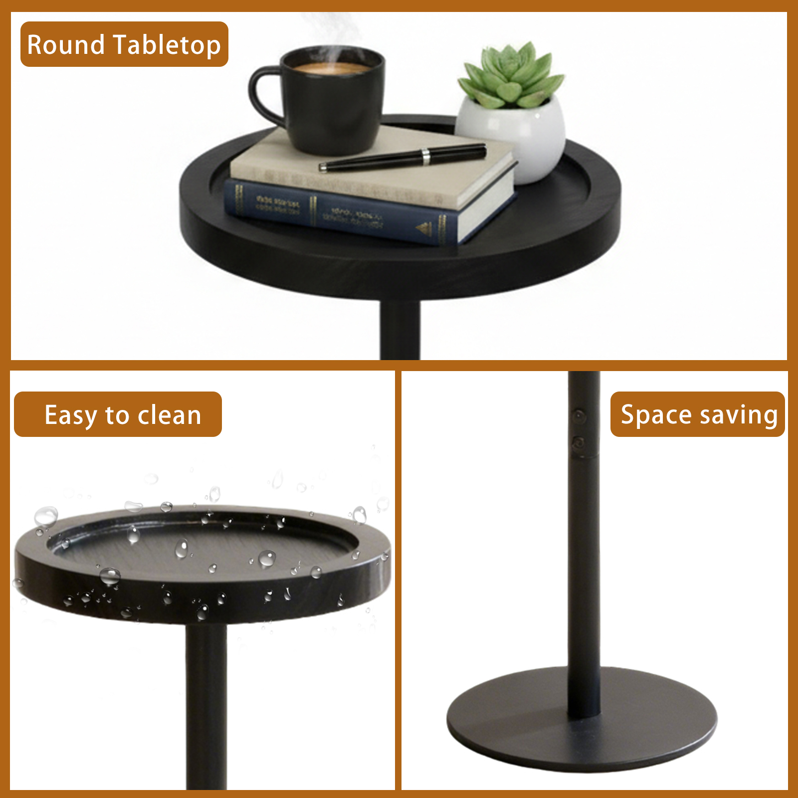 Fiberboard à densité moyenne & Tube en acier Table latérale Noir pièce