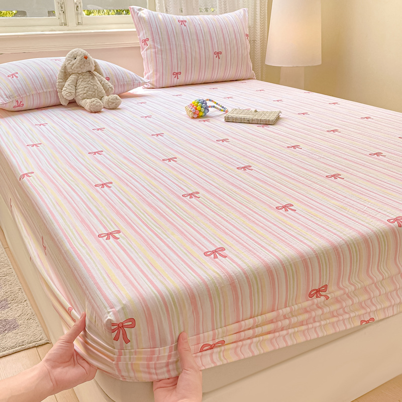 Two-piece fitted sheet set: 90cmx200cm one pillowcaseTwo-piece fitted sheet set: 120cmx200cm one pillowcaseThree-piece fitted sheet set: 150cmx200cm two pillowcasesThree-piece fitted sheet set: 180cmx200cm two pillowcasesThree-piece fitted sheet set: 200cmx220cm two pillowcases