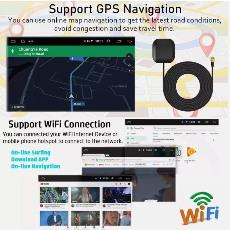 WiFi, navigation GPS, enregistreur de conduite, prise en charge multilingue,
