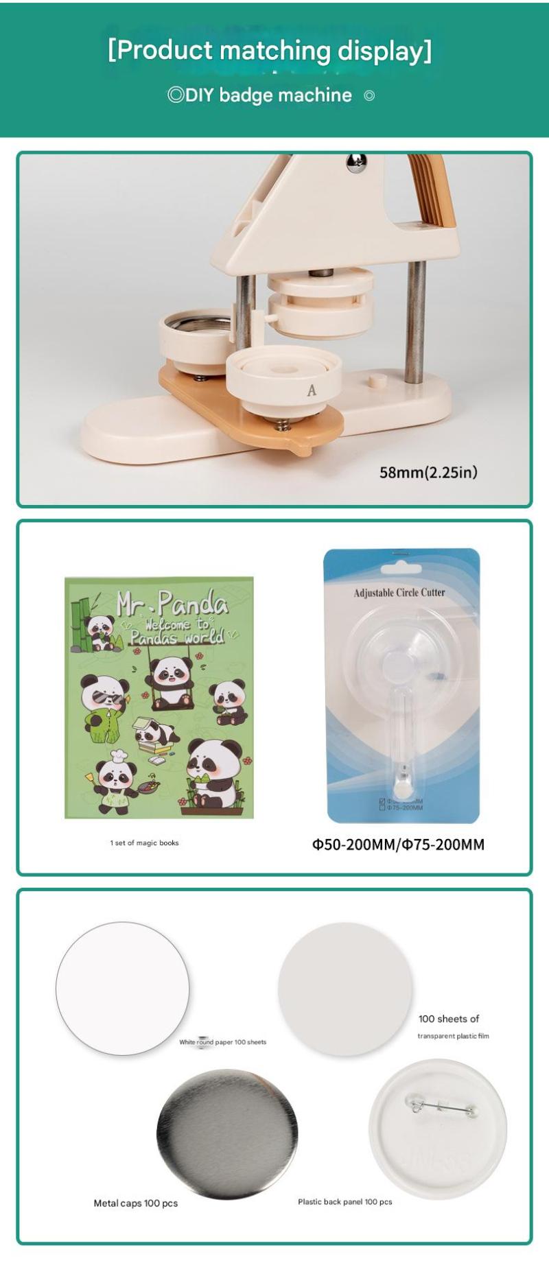 25mm set (machine with 100 consumables 100 round paper pieces plastic round cutter magic book!)32mm set (machine with 100 consumables 100 round paper pieces plastic round cutter magic book!)58 sets (machine with 100 white plastic bottom consumables 100 round paper pieces plastic round cutter magic book)58 sets (machine with 100 silver metal bottom consumables 100 round paper pieces plastic round cutter magic book)25mm machines with molds32mm machines with molds58mm machines with molds
