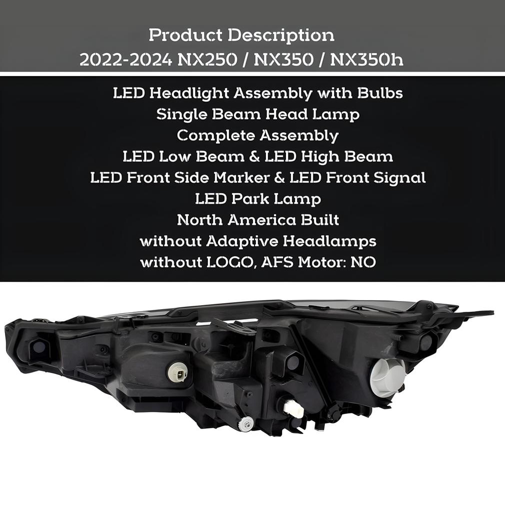 LED Headlight For 2022-2024 LEXUS NX NX250 NX350 SINGLE-BEAM NON-AFS