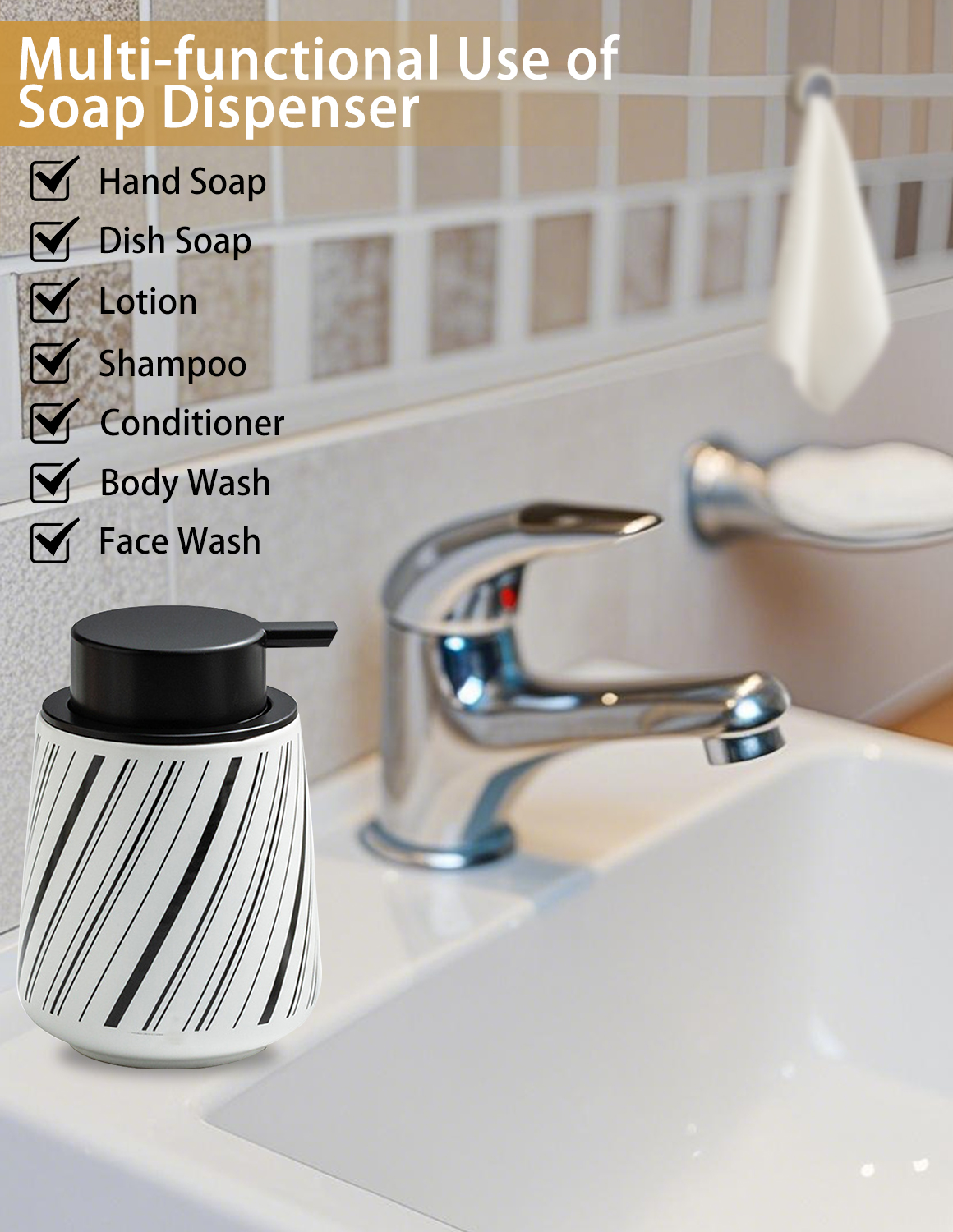 Marble Pattern Ceramic Press Bottle Hand Soap Shampoo Body Soap Lotion Bottle