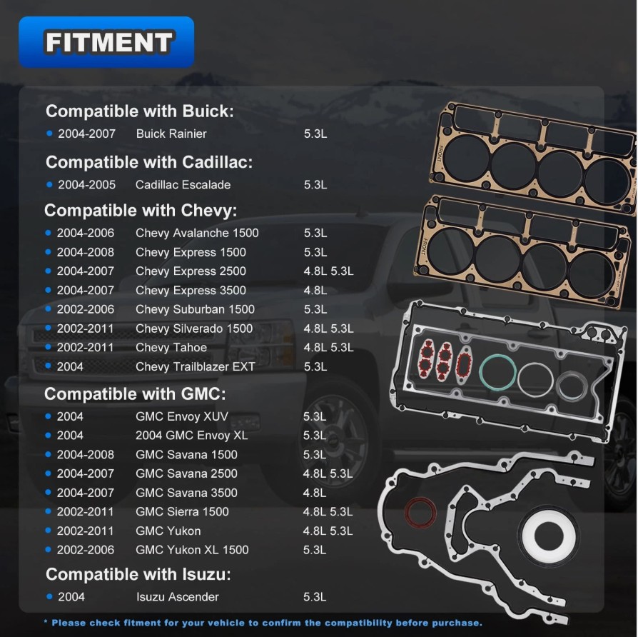 Kit complet de joints de moteur à cylindres (sans boulons)