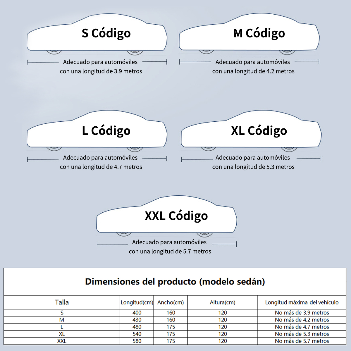 S-code 400*160*120CMM size 430*160*120CML size 480*175*120CMXL size 540*175*120CMXXL code 580*175*120CM
