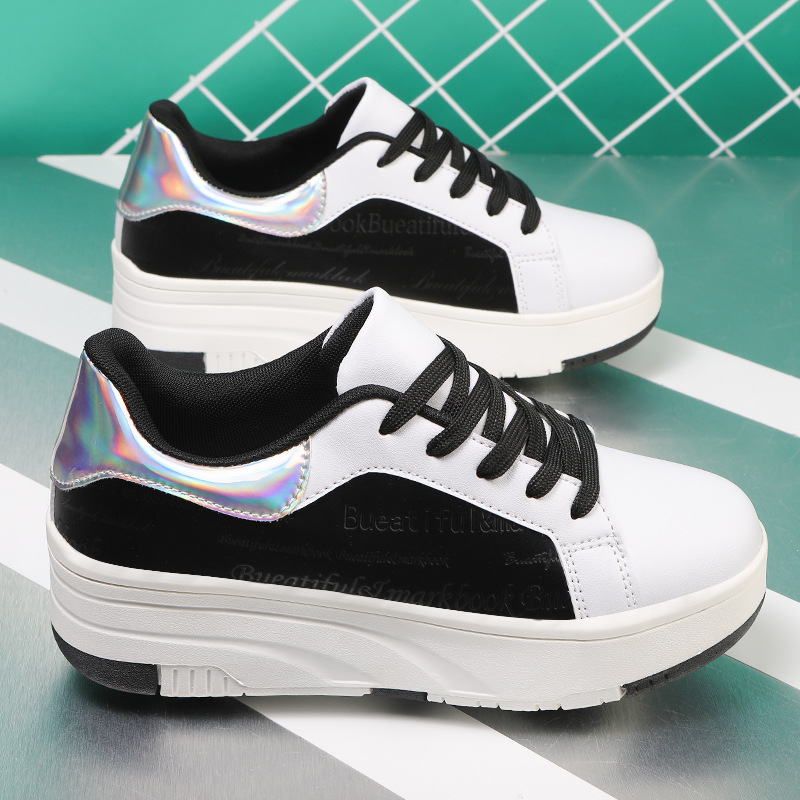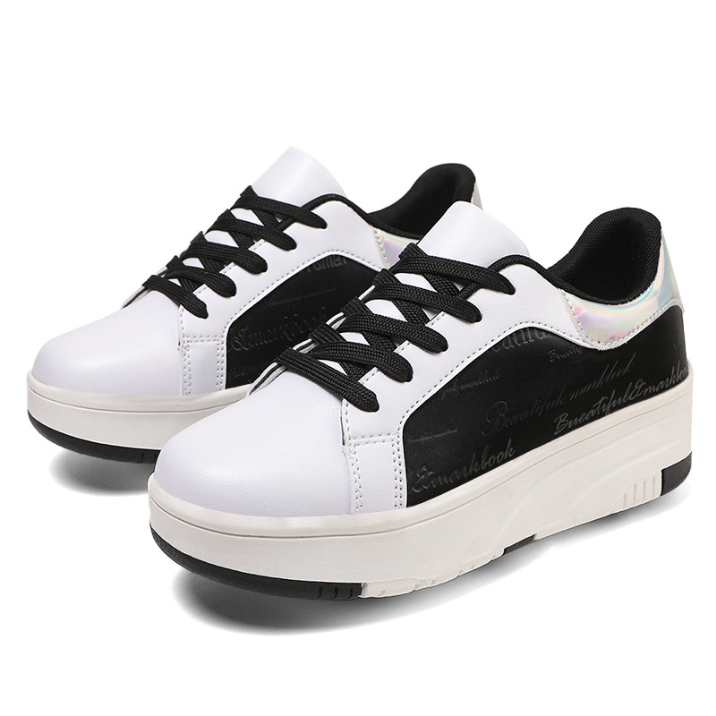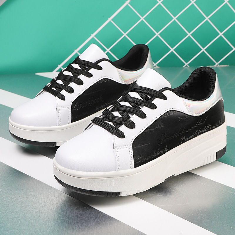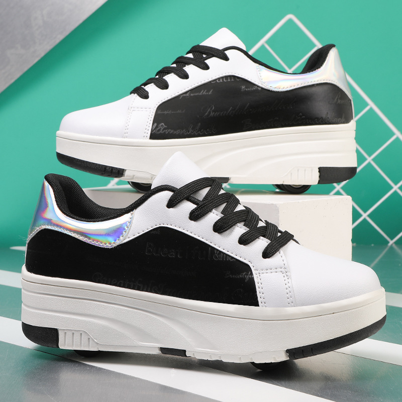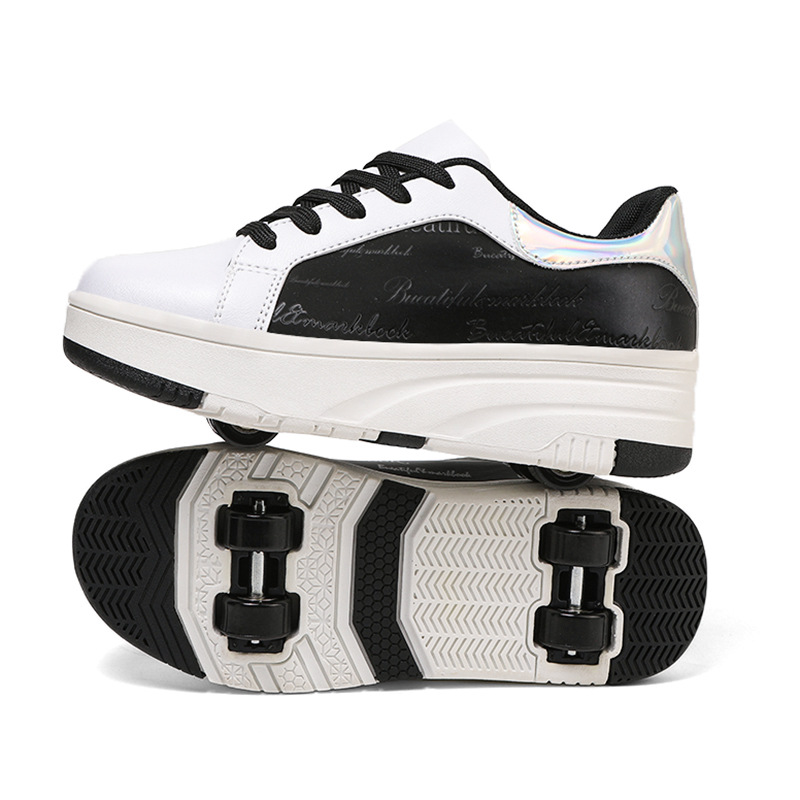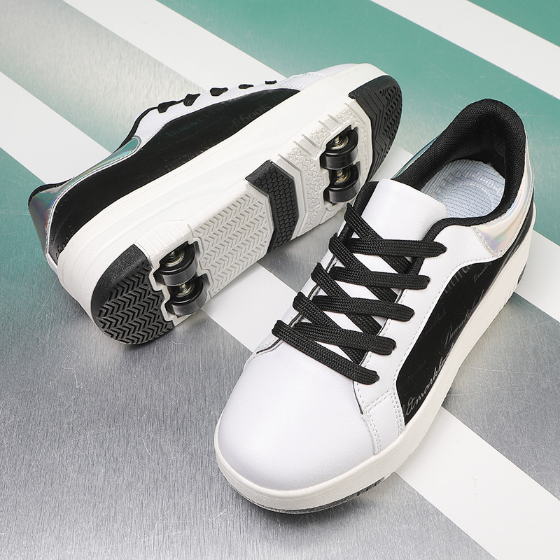 PU Cuir Chaussures de roues pour enfants blanc et noir Paire