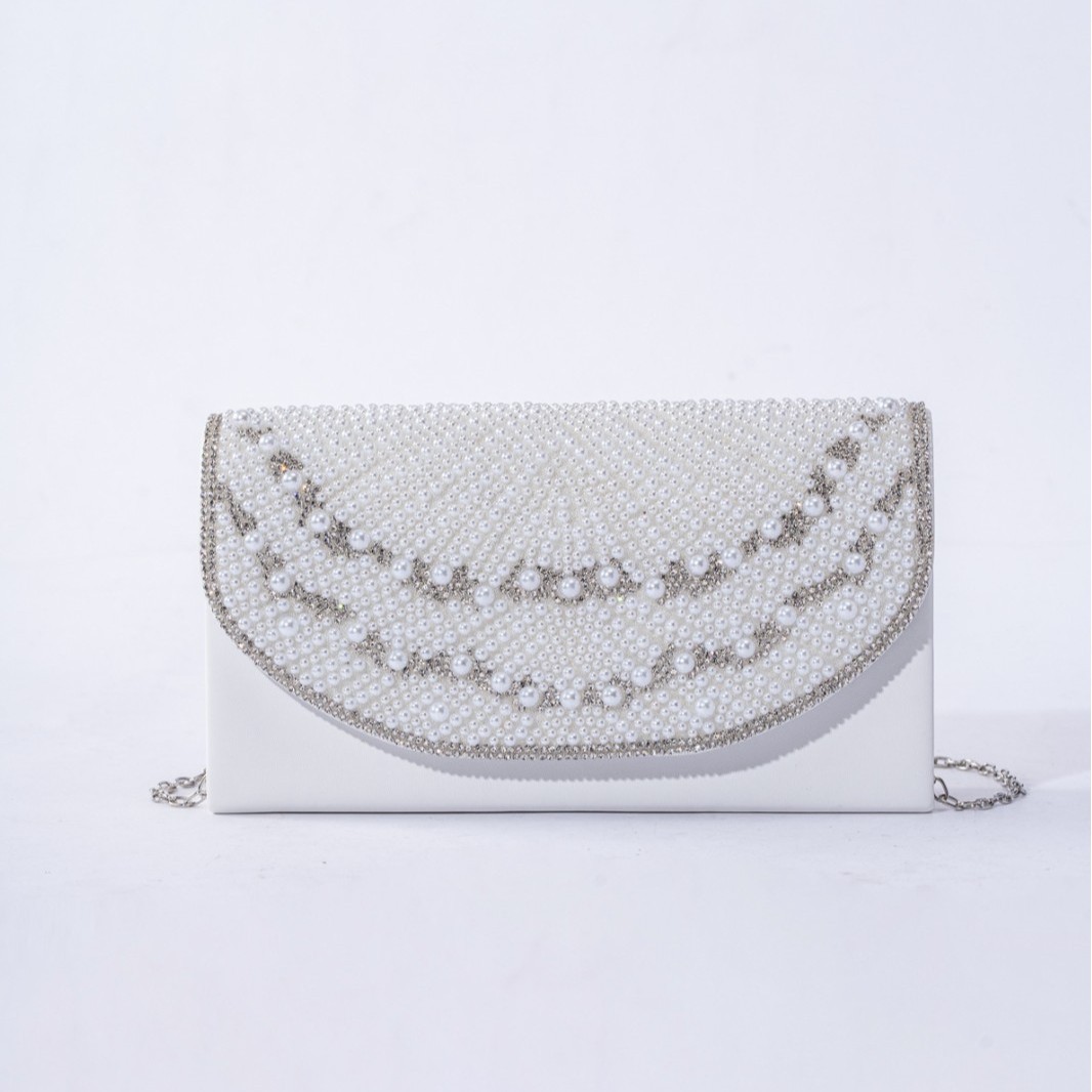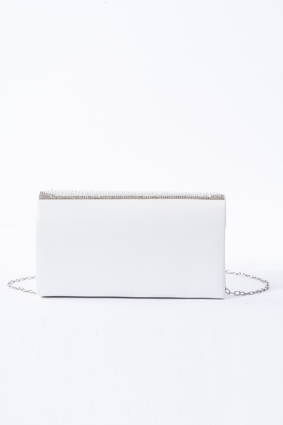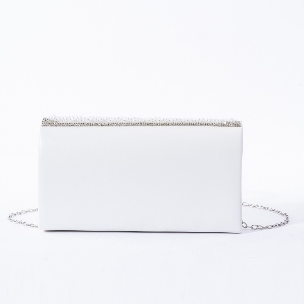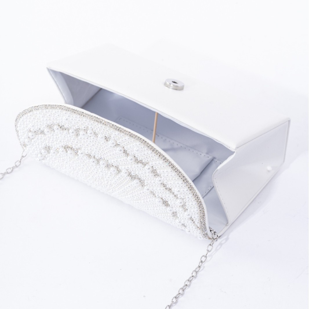 PU Cuir & Perle en plastique Sac d’embrayage Blanc pièce