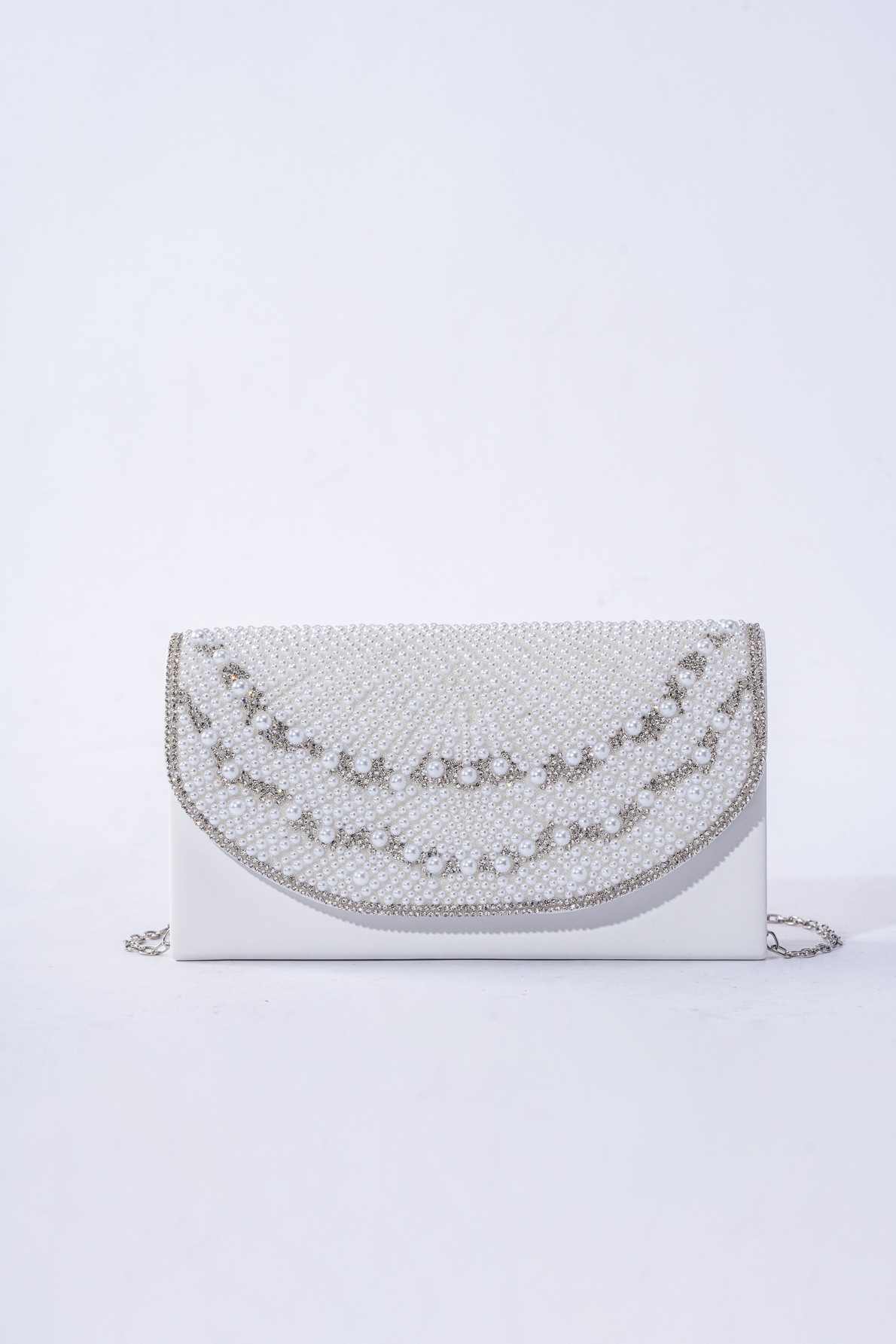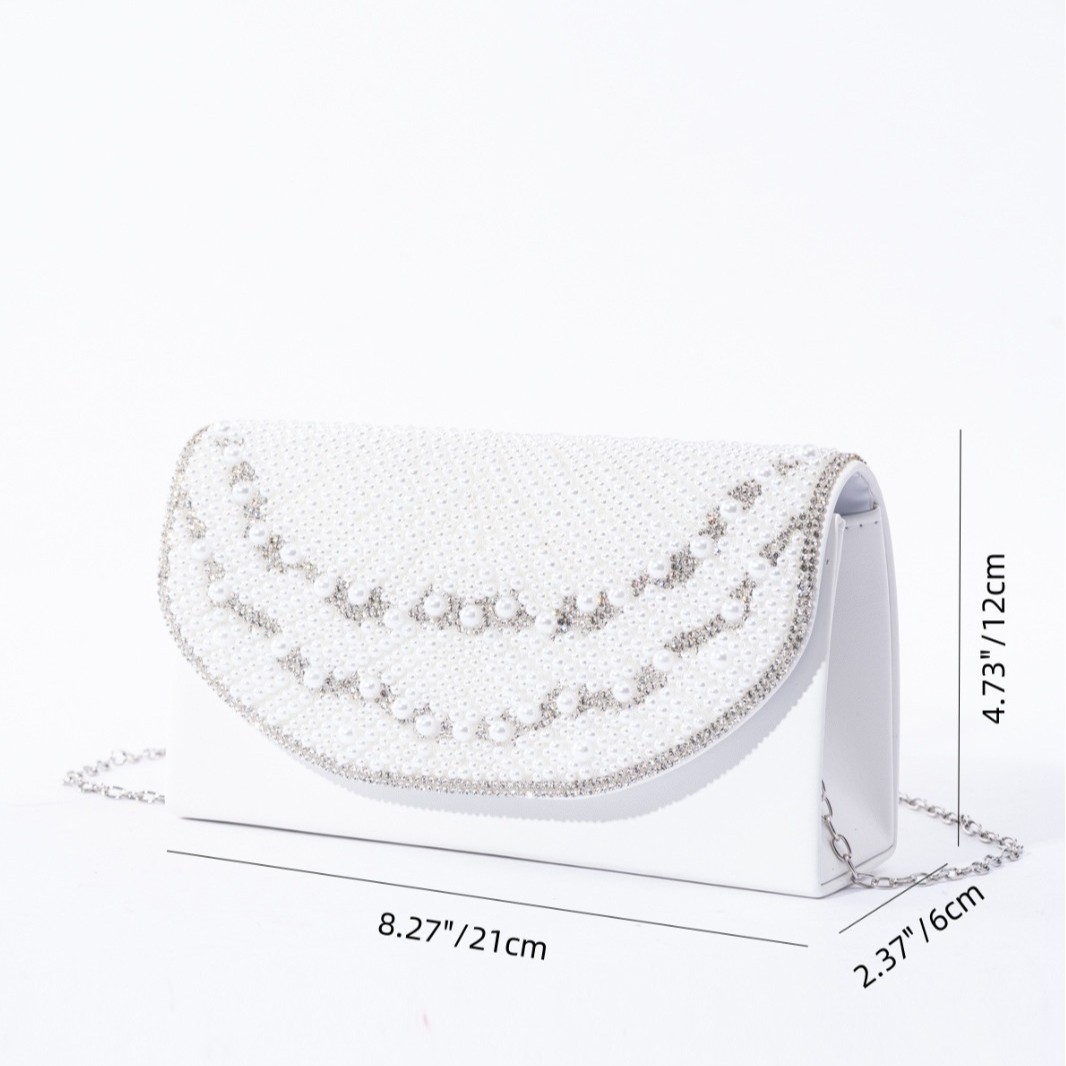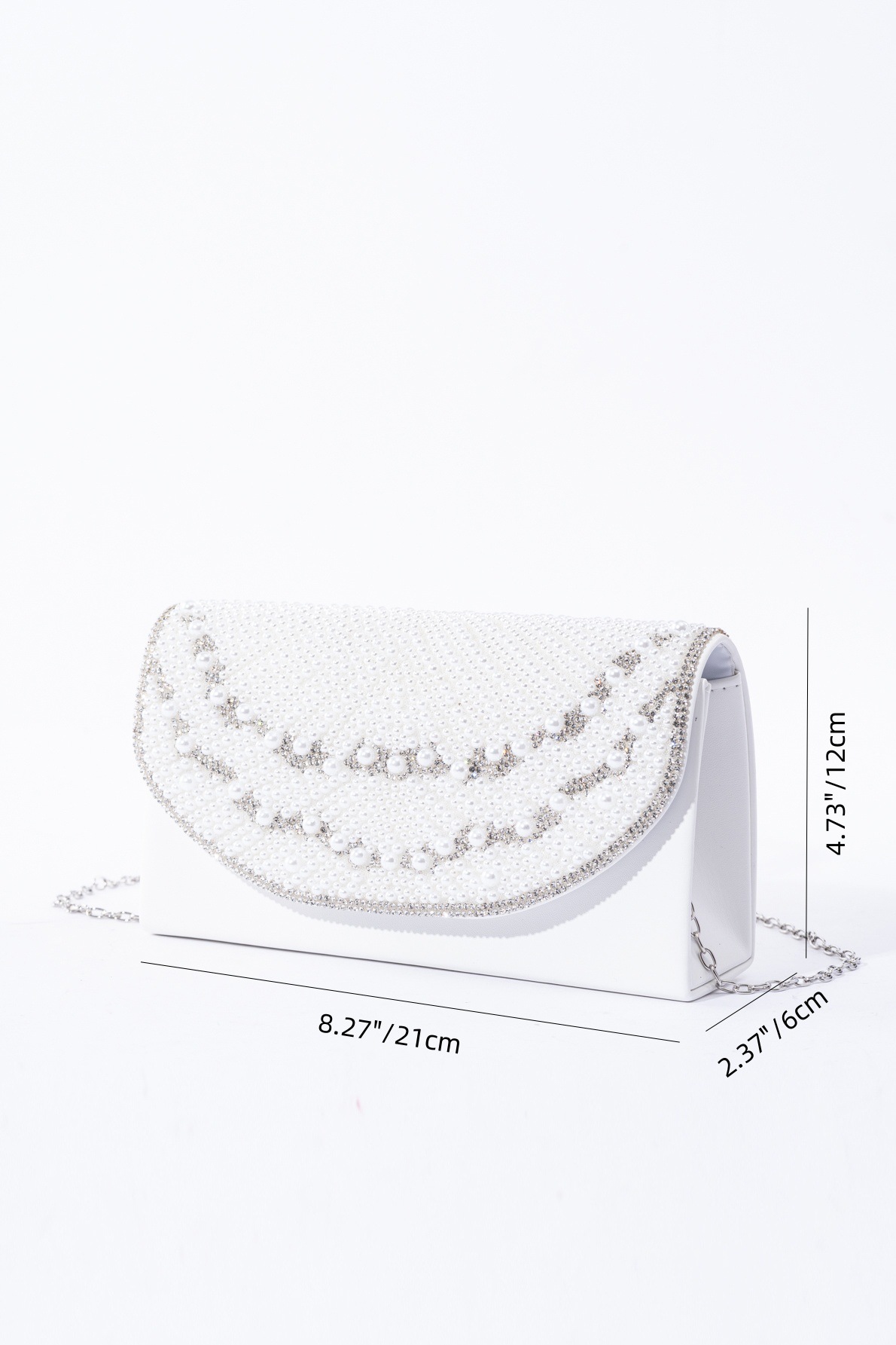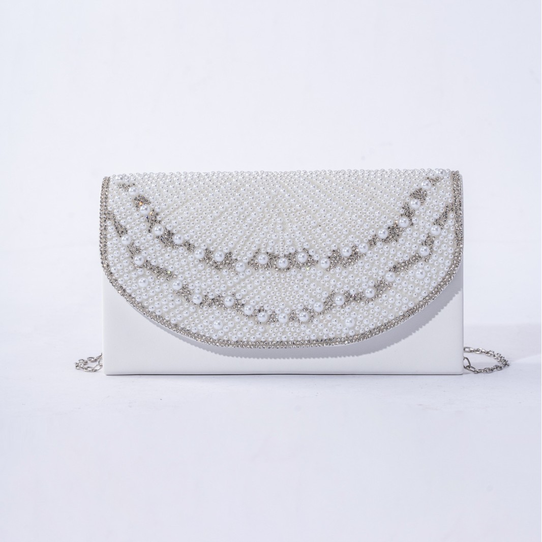 PU Cuir & Perle en plastique Sac d’embrayage Blanc pièce