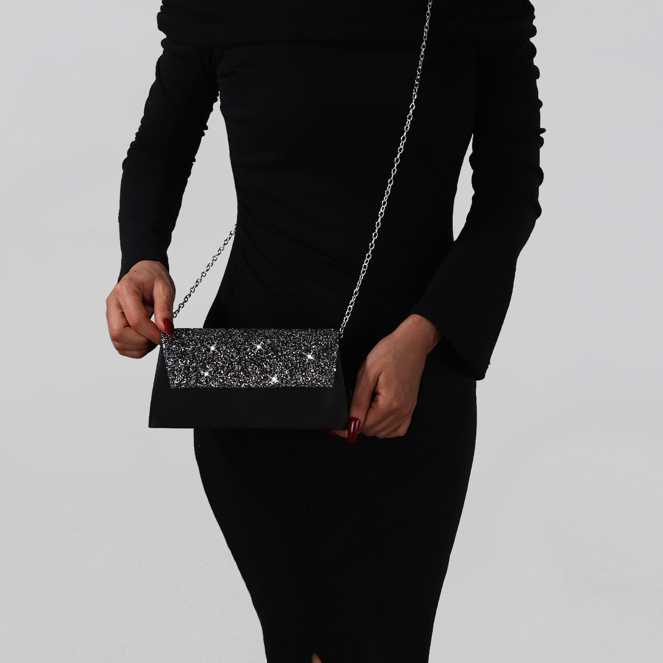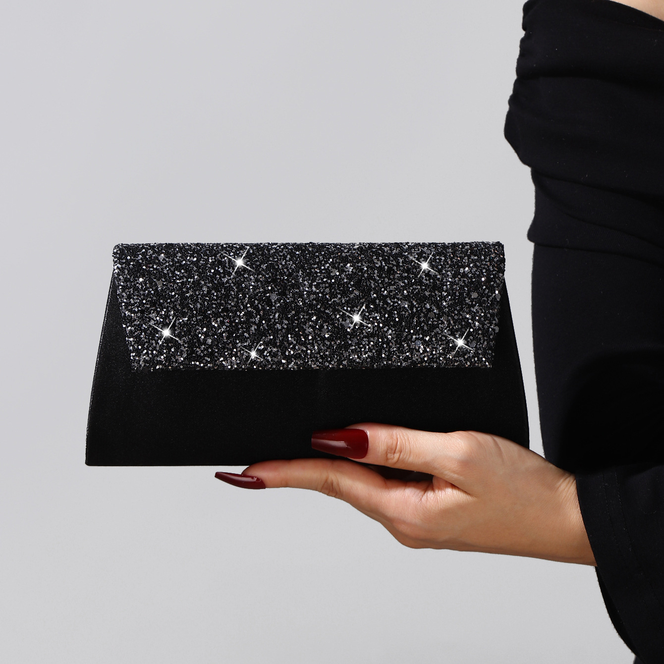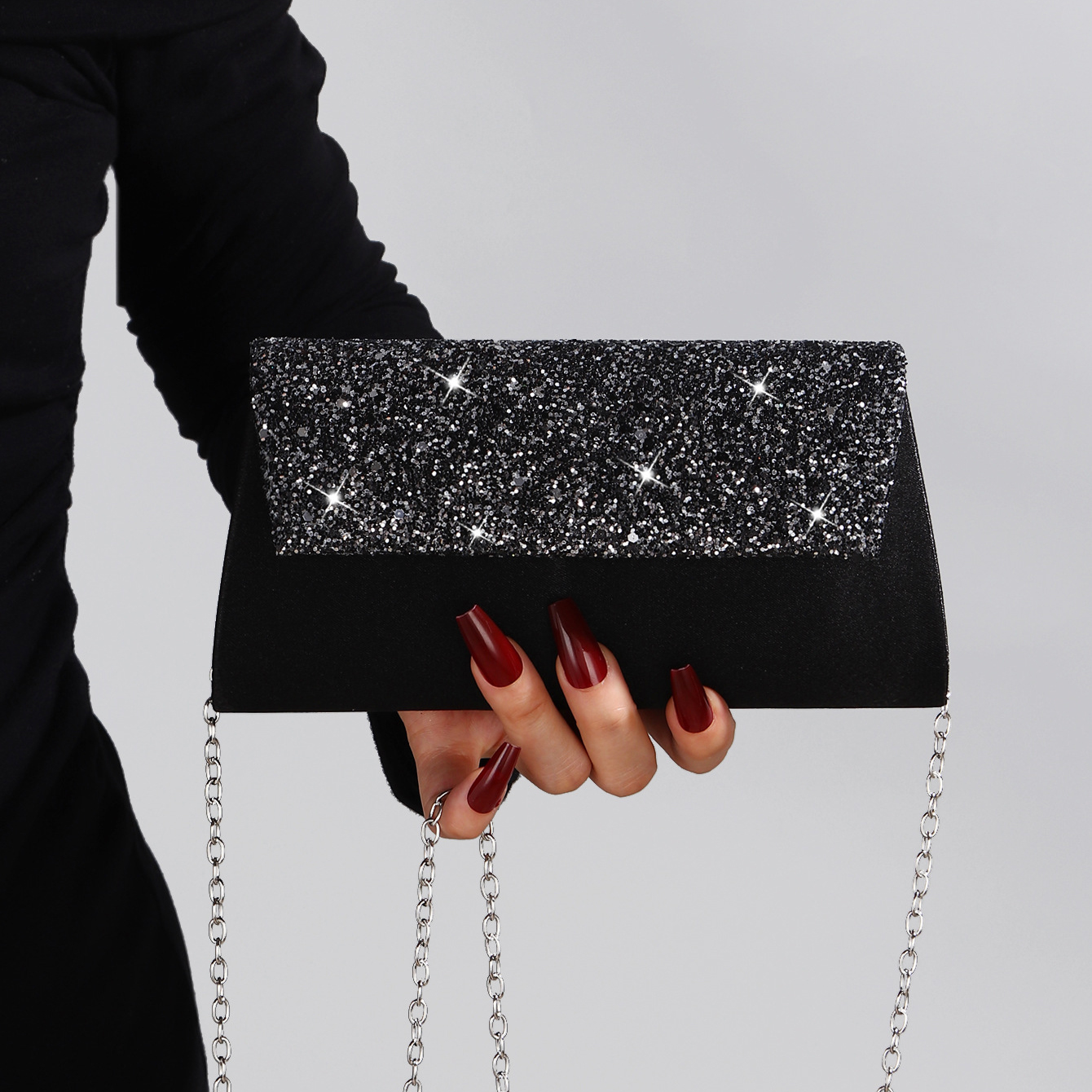 PU Cuir & Polyester Sac d’embrayage Paillettes Noir pièce