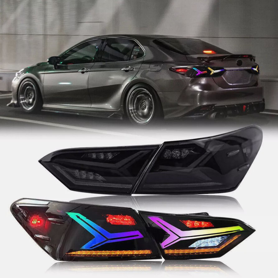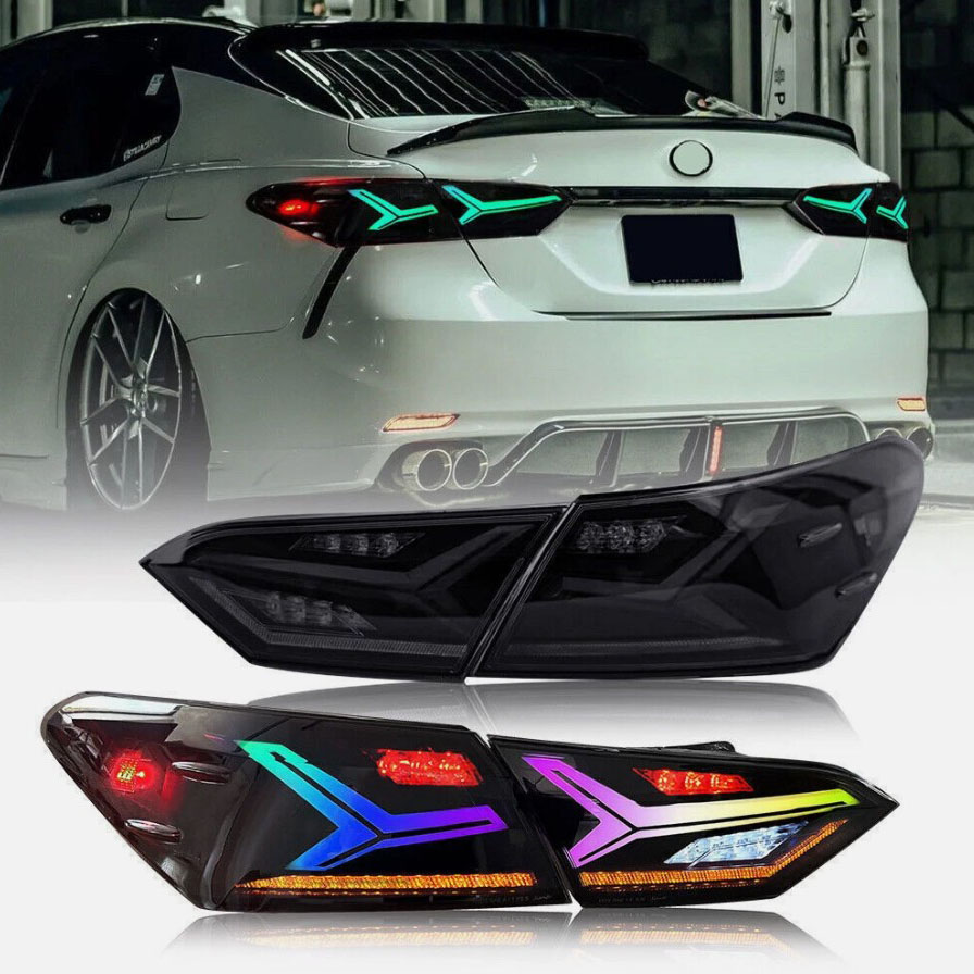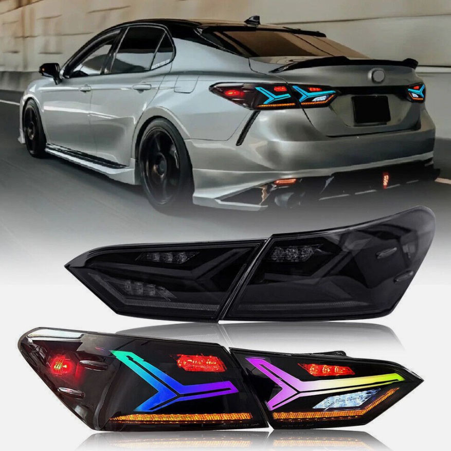 Pair RGB LED Tail Light For Toyota Camry 8th Gen 2018-2024 Rear Lamps Assembly