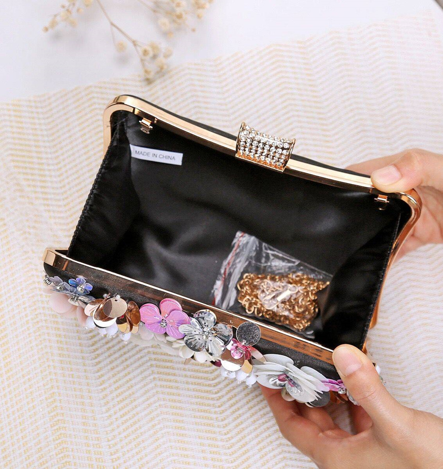 Perle en plastique & Polyester Sac d’embrayage Floral multicolore pièce
