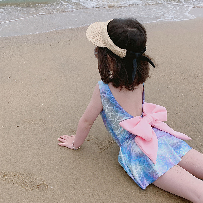 Polyamide & Polyester Maillot de bain d’une seule pièce pour enfants de fille Imprimé modèle d’échelle de poisson Bleu pièce