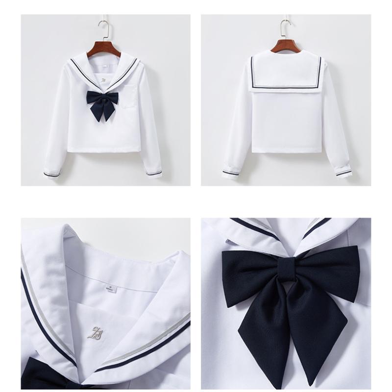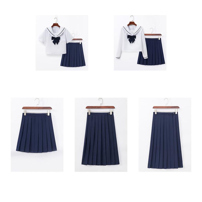 Long-sleeved suit (with a navy blue bow tie)Short-sleeved suit (with a navy blue bow tie)Long-sleeved top (with a navy blue bow tie)Short-sleeved top (with a navy blue bow tie)Short skirt 43cmThe middle skirt is 65cmLong dress 75cmPremium A dress, 39cmPremium A dress, 42cm