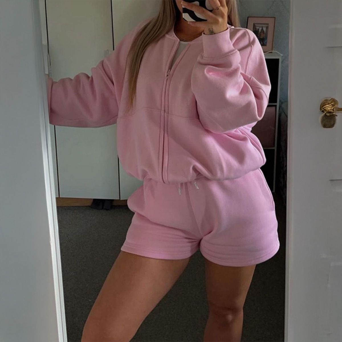 Polyester Ensemble occasionnel de femmes Rose Ensemble