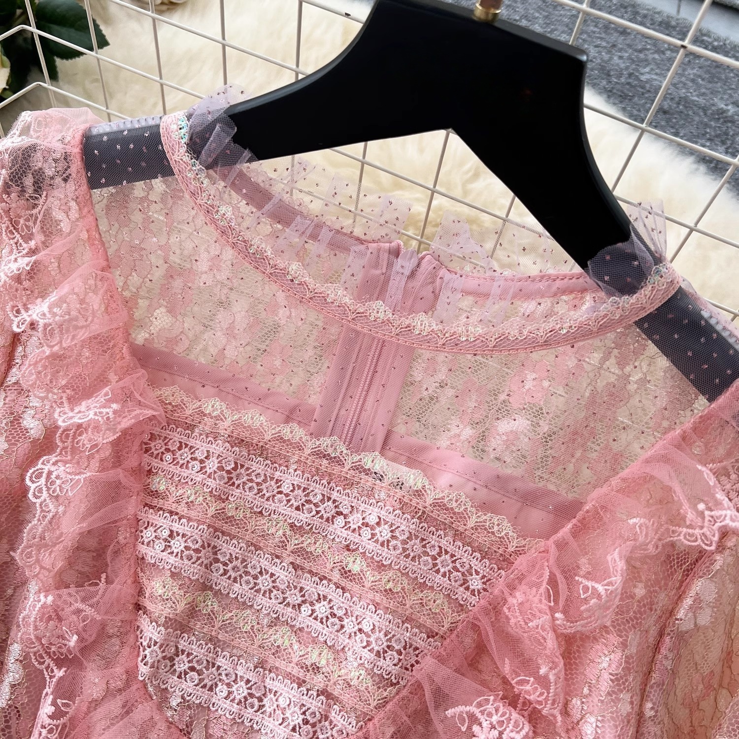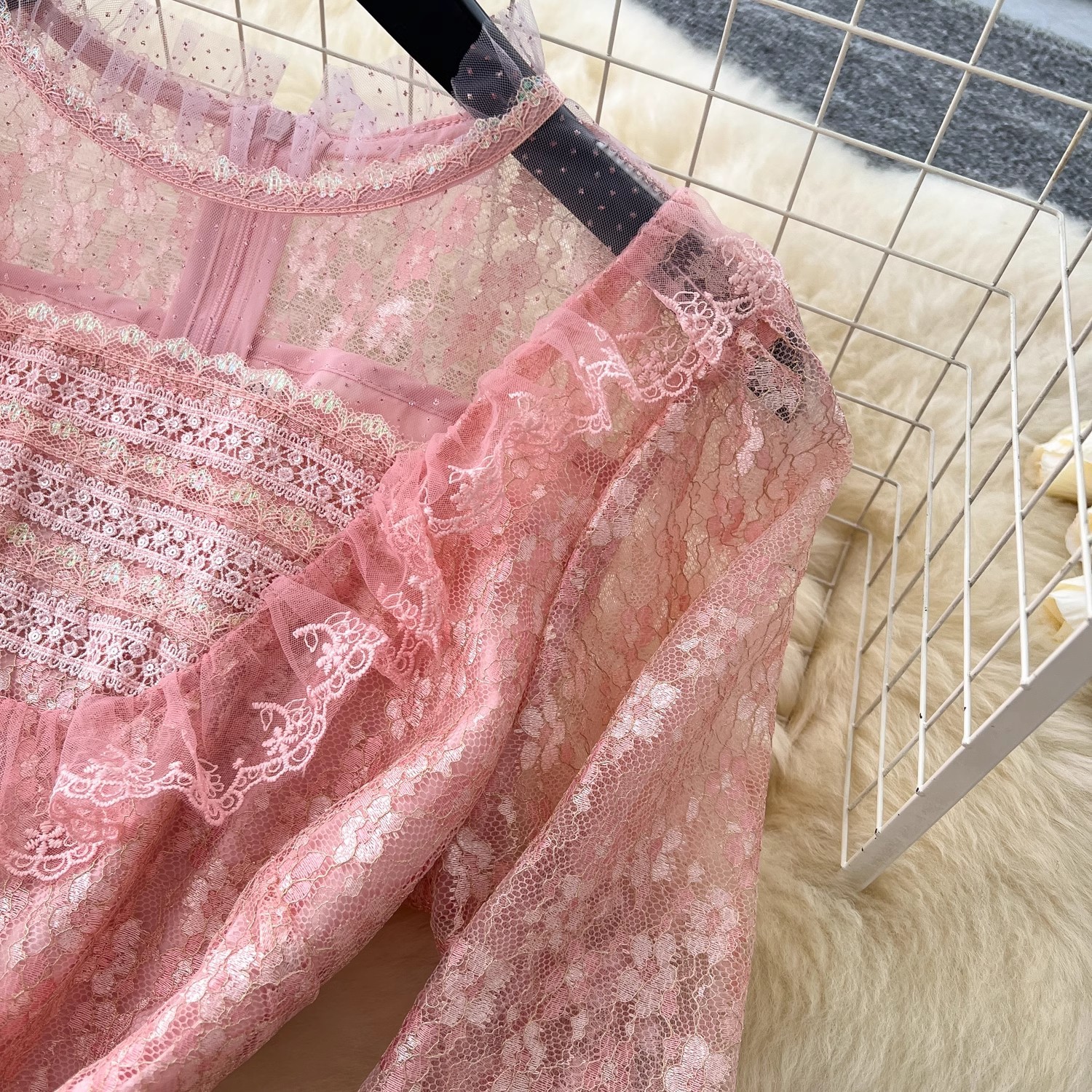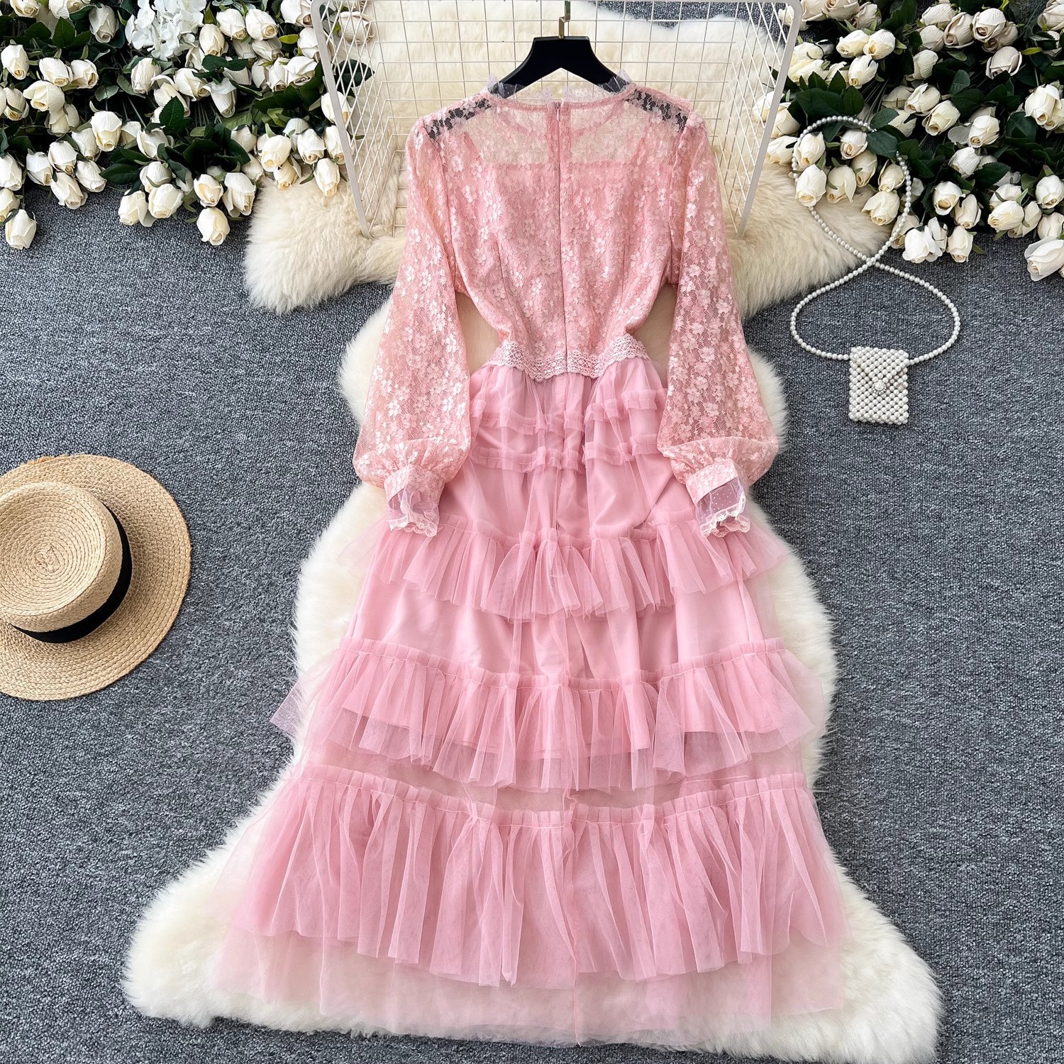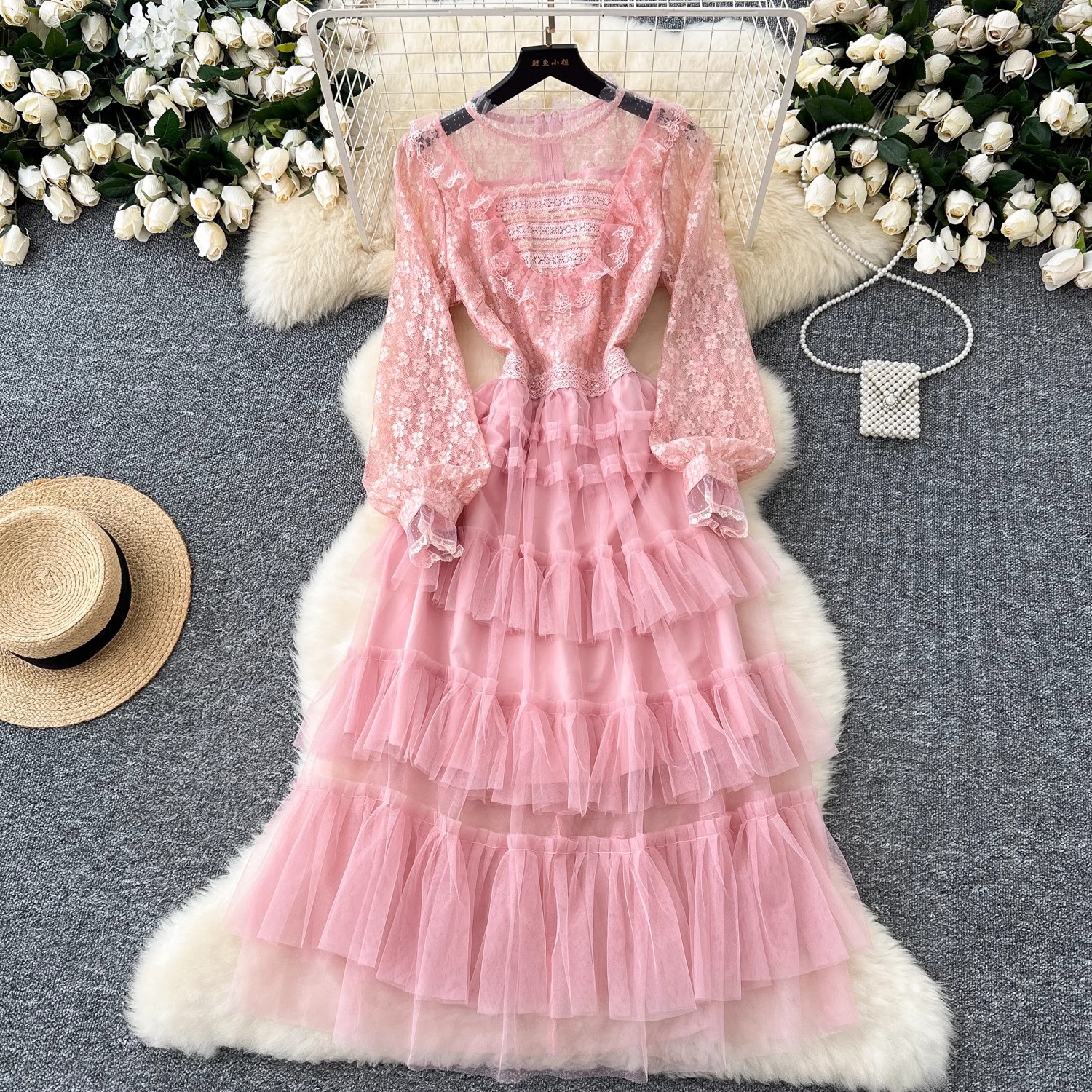 Polyester Robe d’une seule pièce Brodé Frissons Rose pièce
