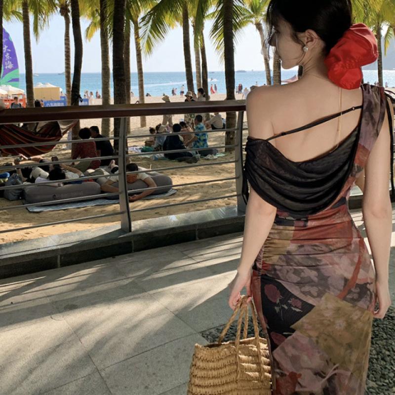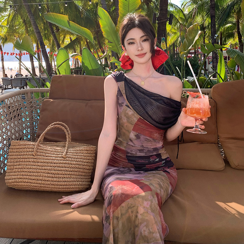 Polyester Robe d’une seule pièce Imprimé couleurs mixtes pièce