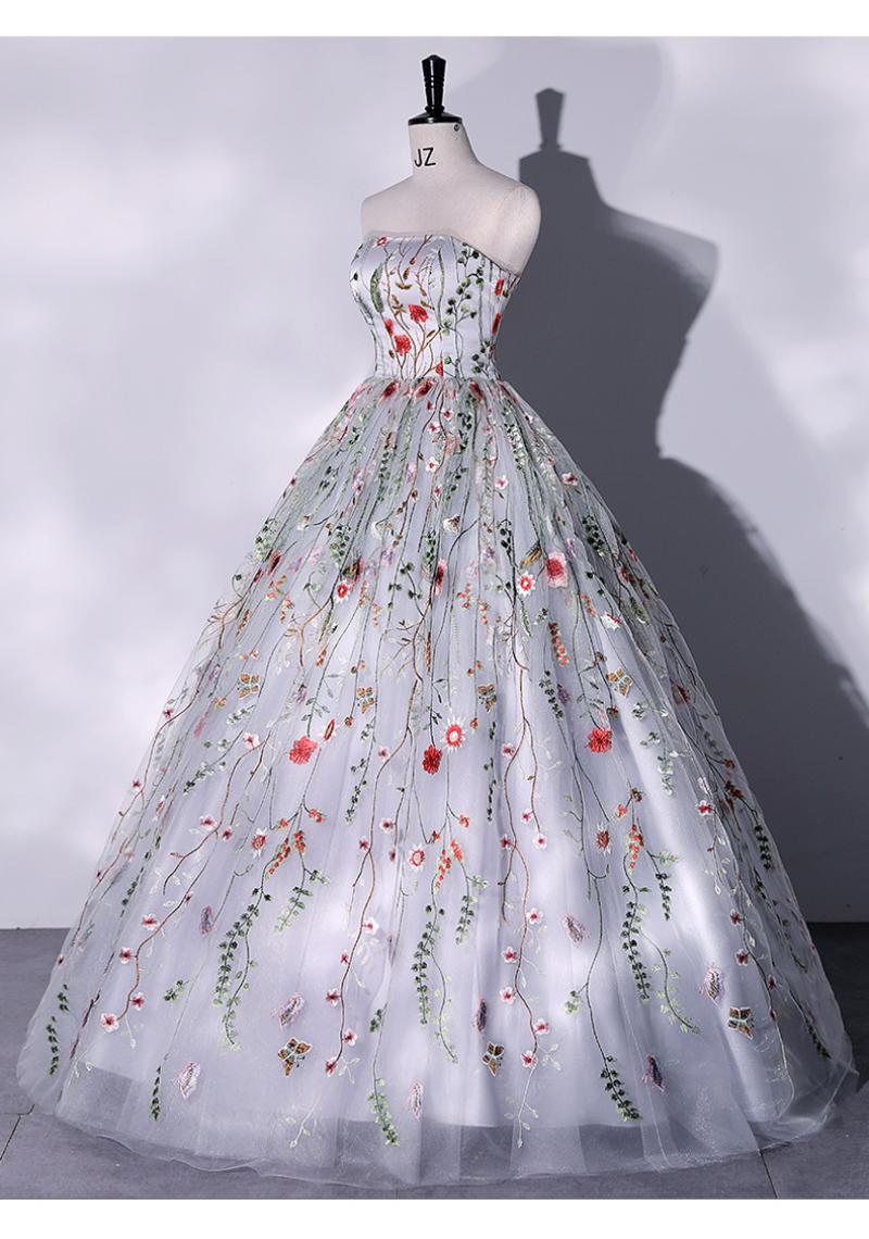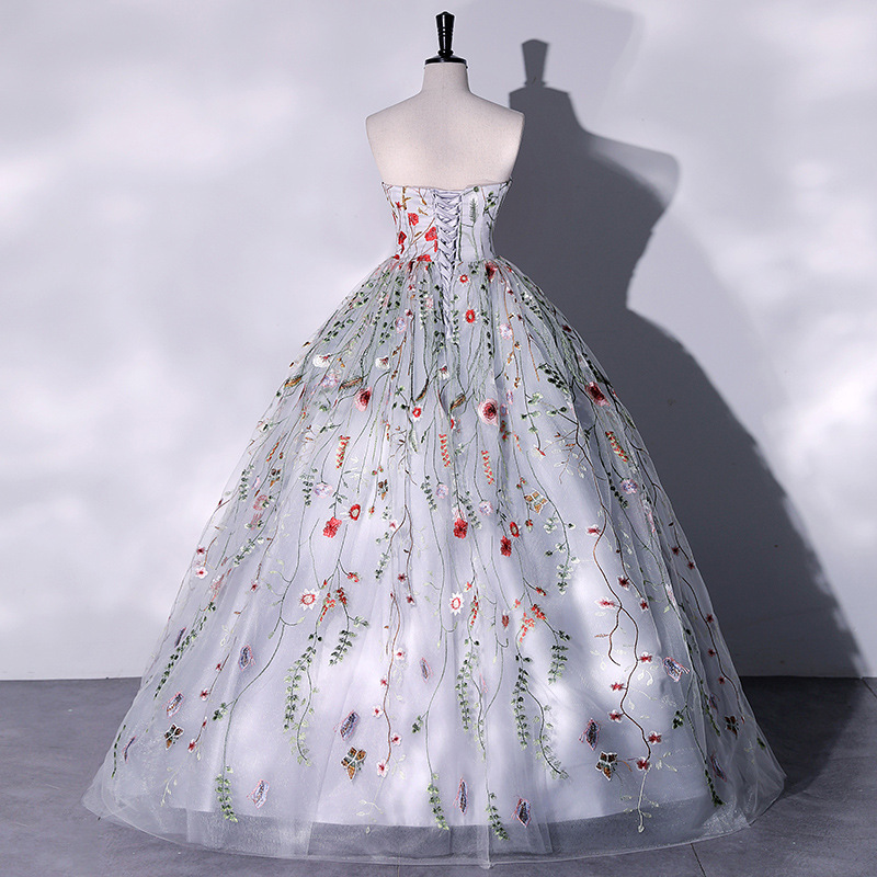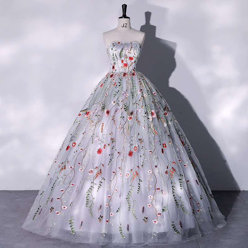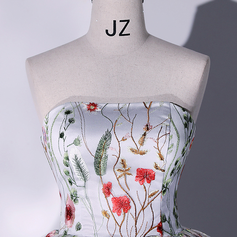 Polyester Robe longue de soirée Brodé Floral gris clair pièce
